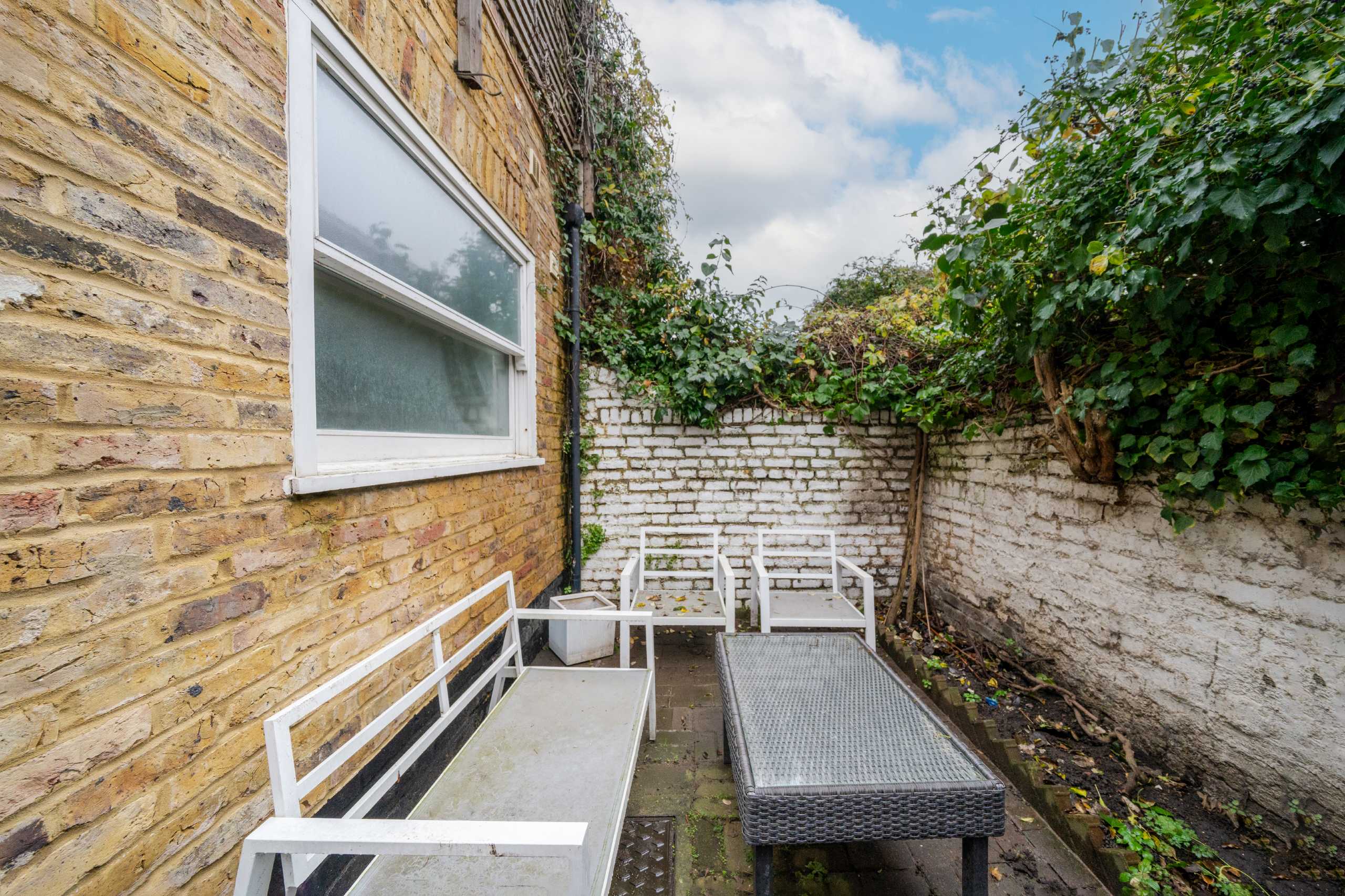 A private garden provides valuable outdoor space, suitable for relaxing or dining during warmer months.