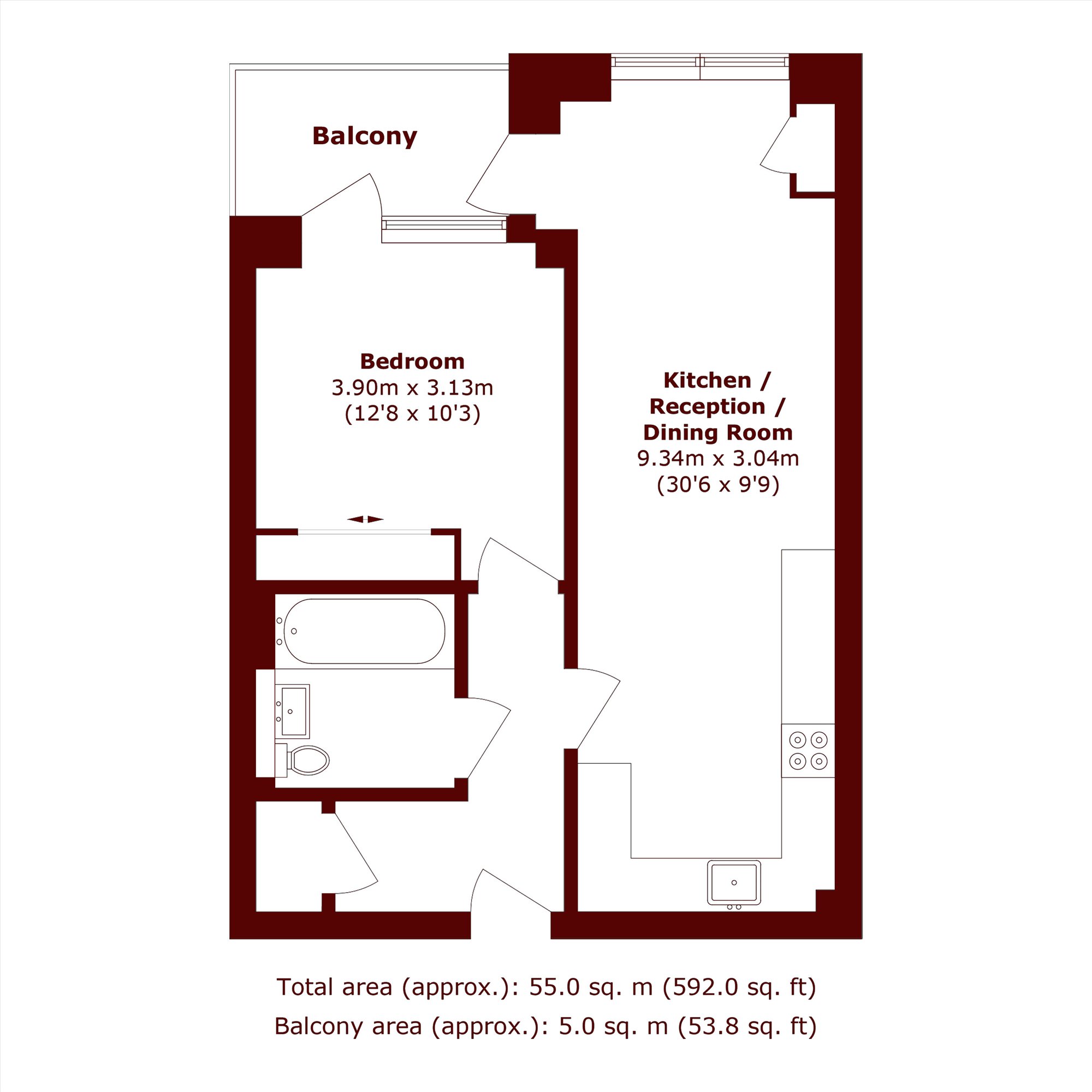 An immaculately presented first floor, one bedroom flat with a private balcony that is the perfect purchase for first time buyers. The open plan kitchen/reception area spans the whole length of the property and accommodates the fully fitted, modern, L-shaped kitchen. It provides direct access to the private balcony. Access to the balcony can also be gained from the double bedroom, which is spacious and comes with fitted sliding wardrobes. Completing this property is a contemporary family style bathroom with a rainfall shower over the bath.