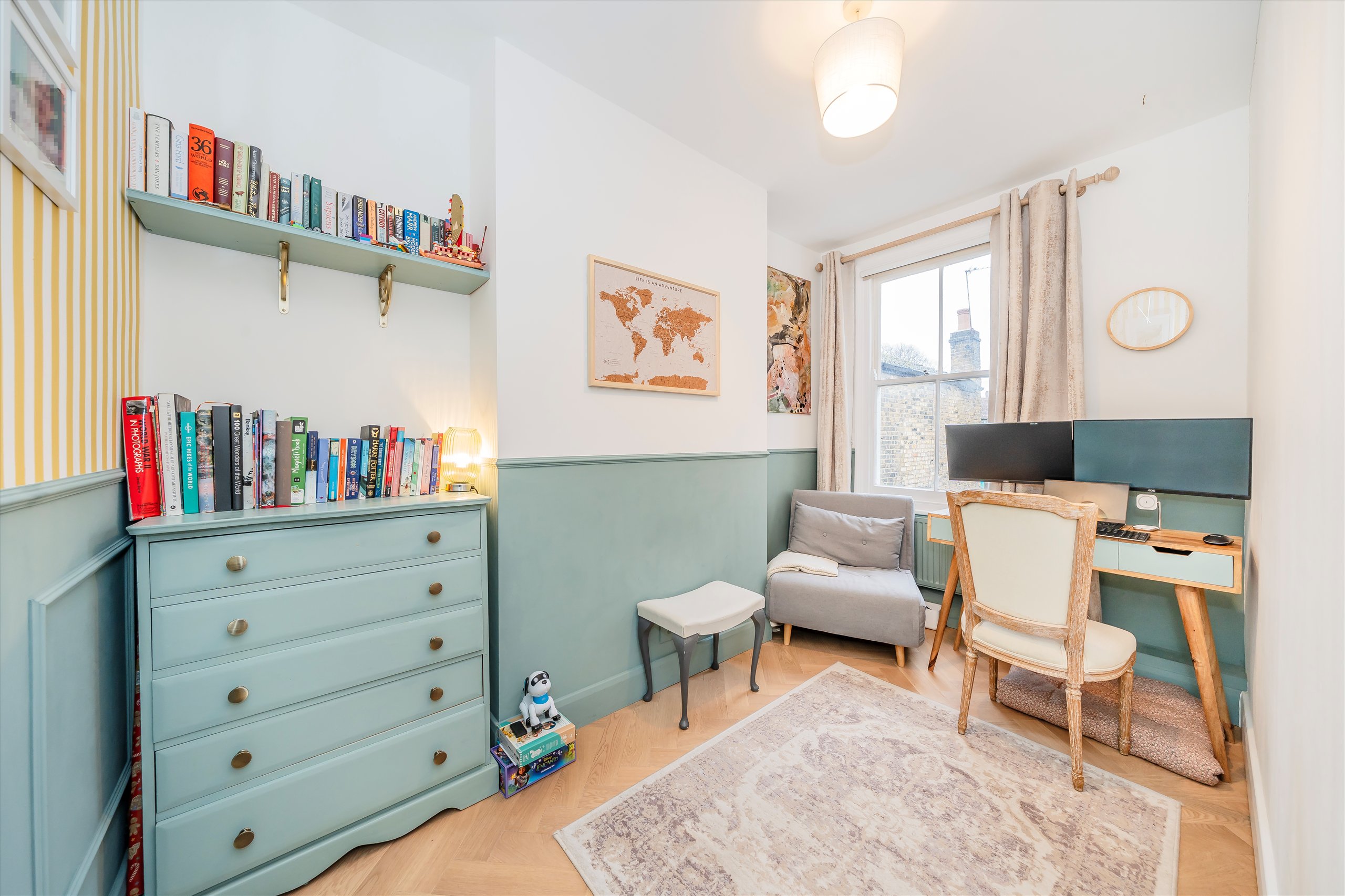 A beautifully presented Victorian three bedroom, two bathroom split-level apartment conveniently located from Bishops Park and the Thames Path, in this favoured location in the Bishops Park conservation area of Fulham. The property is sold with planning to reconfigure a primary suite on the top floor and add a fourth bedroom with en suite bathroom.