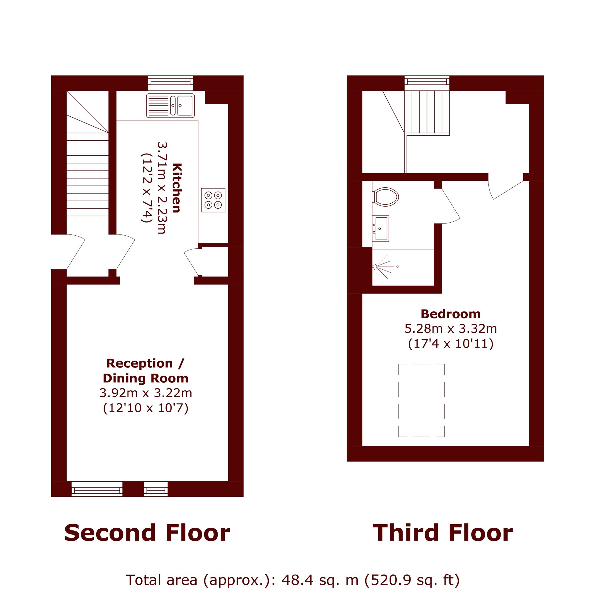 A well-presented one bedroom split-level apartment arranged over the second and third floors, offering bright accommodation and a spacious open plan living area.
