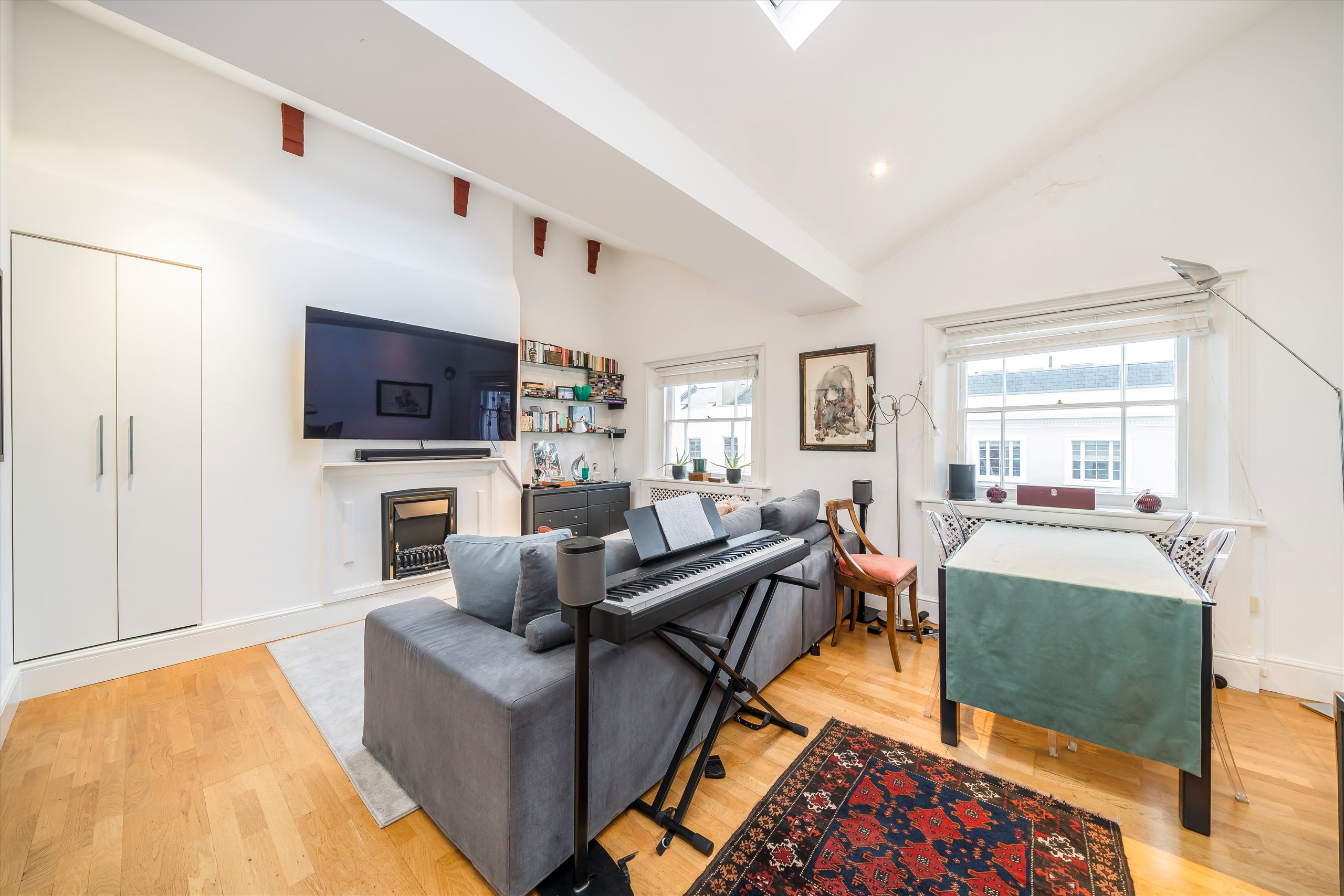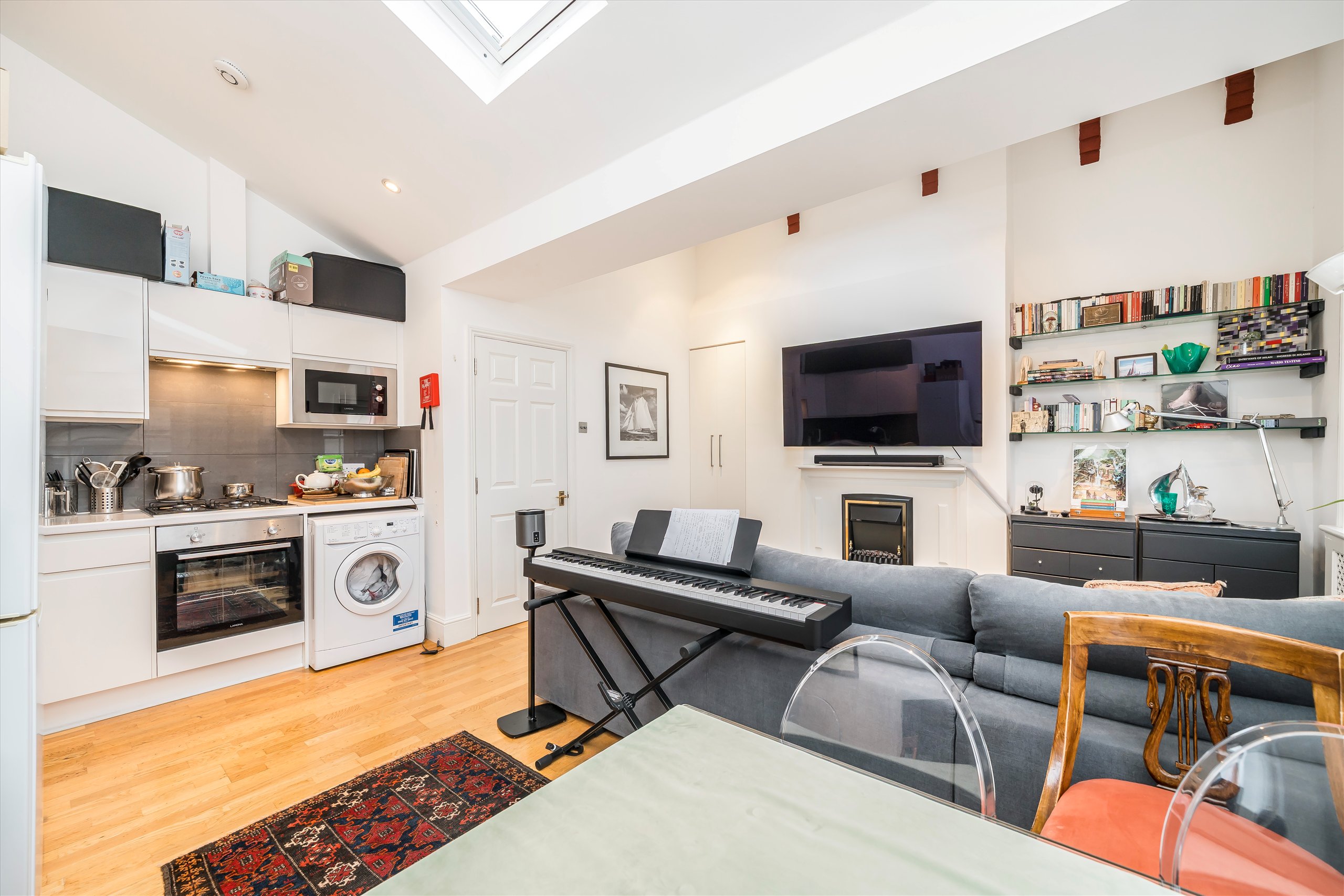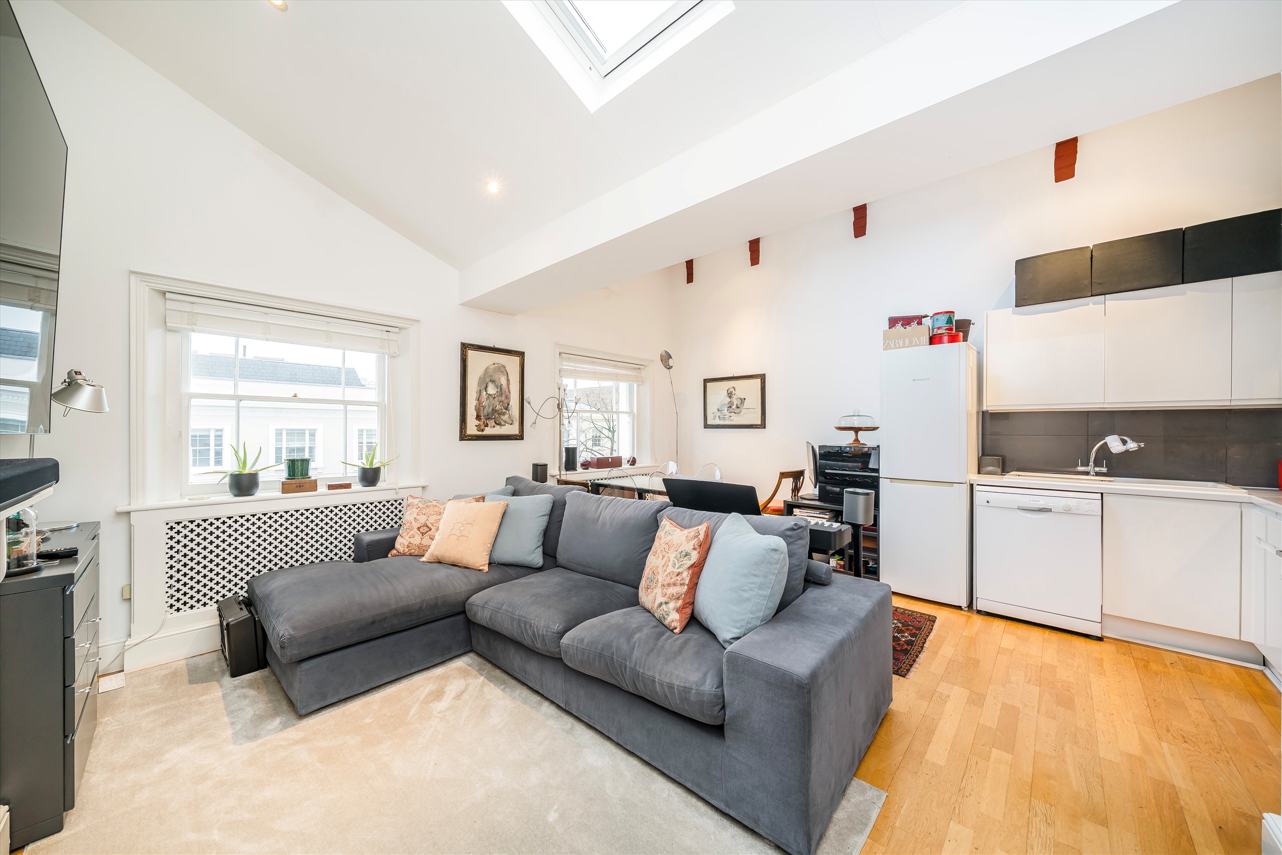 Stylish apartment featuring vaulted ceilings and excellent natural light throughout. Set in the heart of Notting Hill, the property offers wooden flooring, a fitted kitchen, a modern bathroom, a bedroom with fitted wardrobes, and excellent storage space.