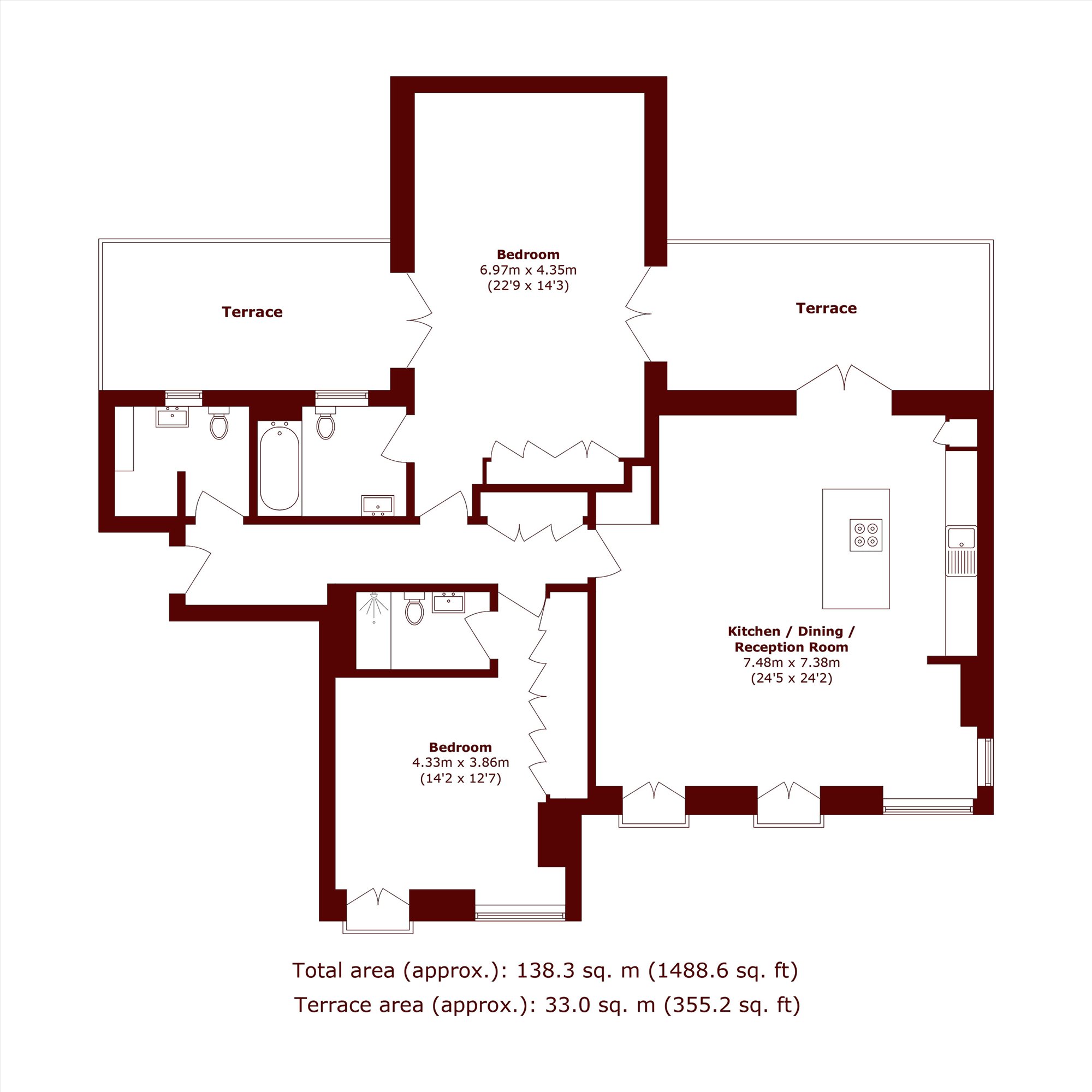 This outstanding modern apartment with a huge floor area of 1488 SQ.FT offers wonderfully light, contemporary and open-plan living spaces with two private roof terraces plus secure under ground parking.