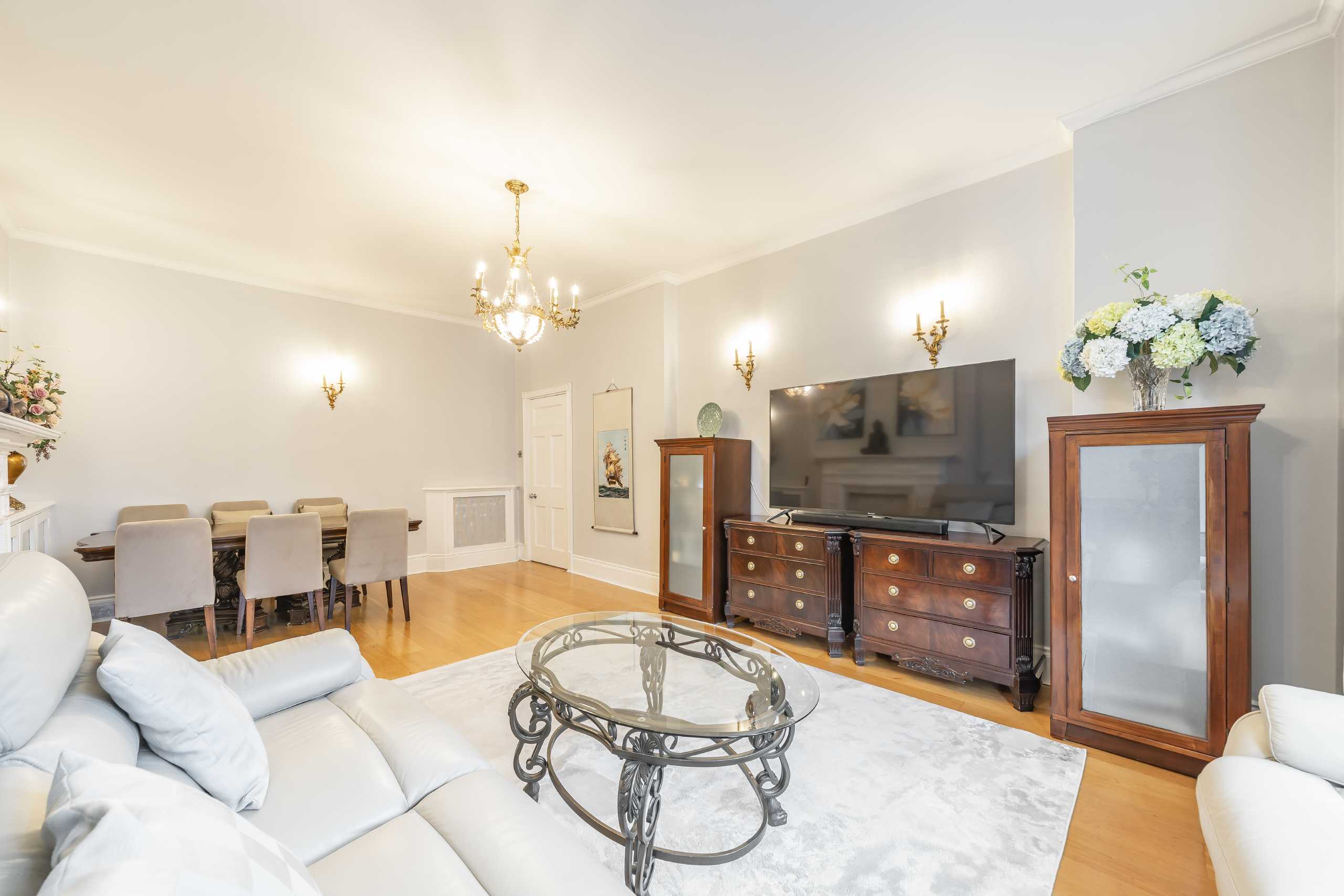 Laterally arranged, this substantial apartment is over 1600sqft in size and boasts beautiful high ceilings and large windows, making it bright and airy throughout. Situated on the third floor (with lift) the apartment comprises a large entrance hall leading through to an expansive double reception room with high ceilings and a beautiful bay window. There is a separate modern and fully fitted eat in kitchen and three large double bedrooms, one of which has an en-suite and all built in storage to the master bedroom. The additional bathroom is meticulously finished and has a utility room with washer and dryer. Bickenhall Mansions further benefits from 24-hour security.