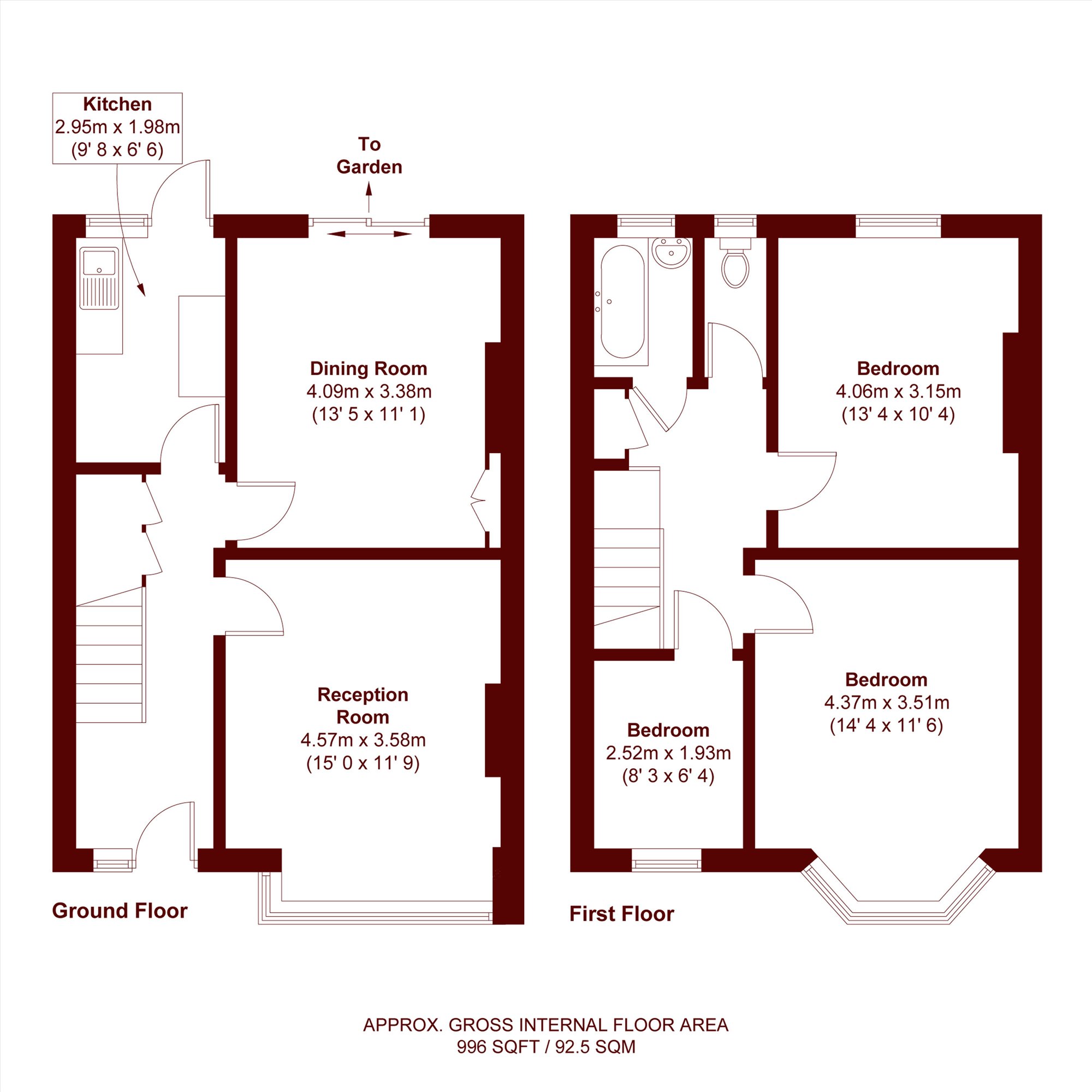 The ground floor comprises a bright front reception room featuring a wide bay window, a galley style kitchen, and a rear reception with sliding doors opening onto the garden. Subject to the usual planning consents, there is excellent potential to extend the kitchen/breakfast room to the rear, creating a generous open plan living and entertaining space.