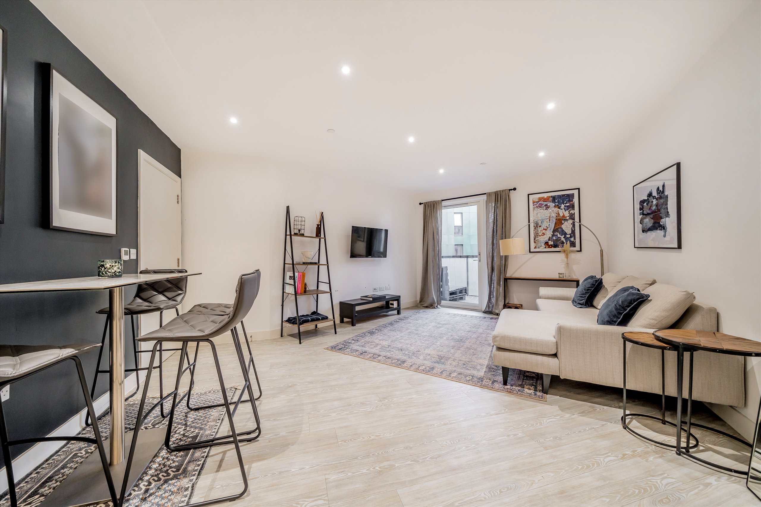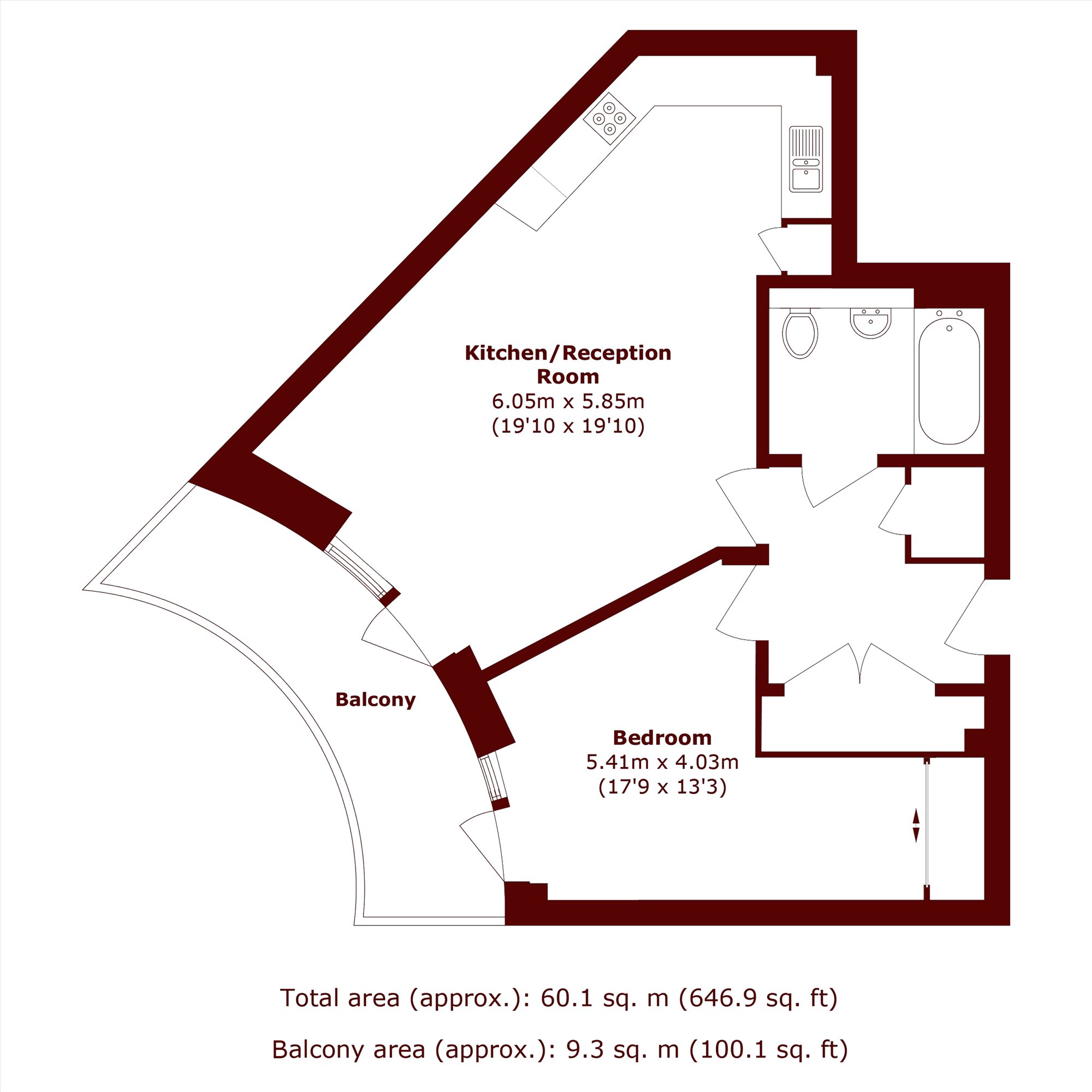 This superb, one-bedroom apartment is arranged over 646sqft, comprising an open plan kitchen/living room with direct access to a large south-facing balcony, a spacious double bedroom also with access to the balcony, a three-piece family bathroom and ample storage space.