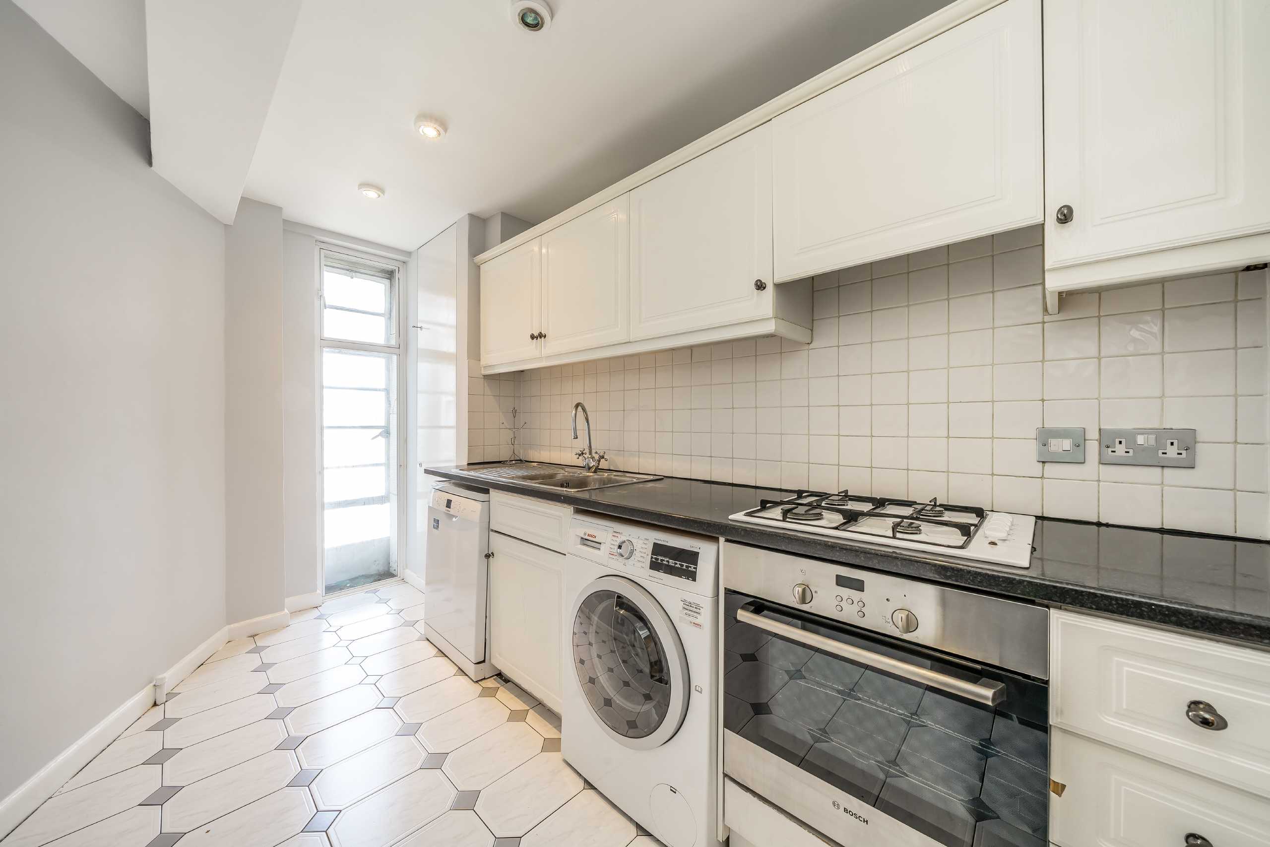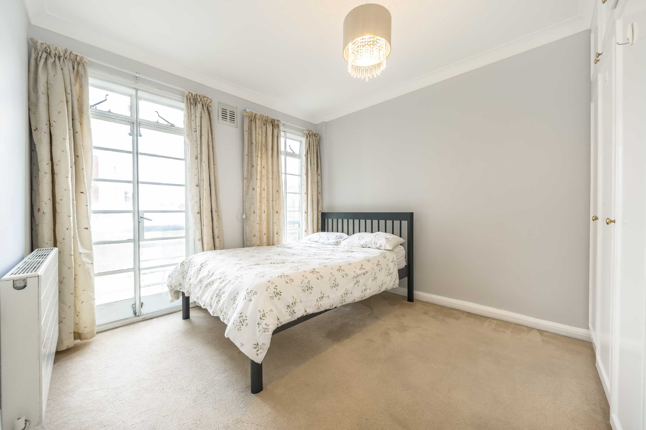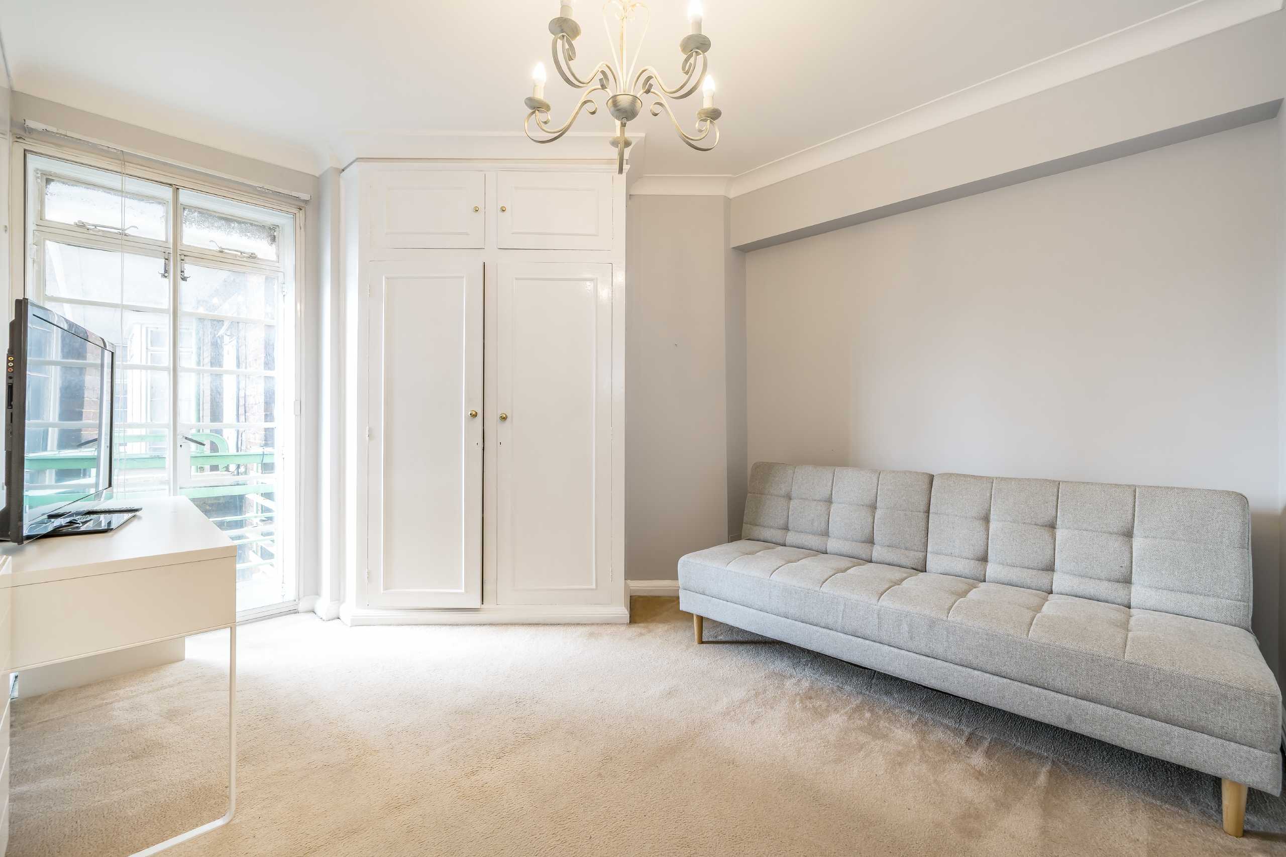 This two-bedroom apartment boasts ample space and light throughout. It further benefits from a large study, which could also be used as a guest bedroom, as well as a 24-hour porter. The property comprises a large entrance hall with wood floors leading to the reception room which is bright and airy with floor-to-ceiling windows and two Juliette balconies. Also off the entrance hall are a separate kitchen with built-in appliances, two large double bedrooms with ample storage and two contemporary bathrooms.