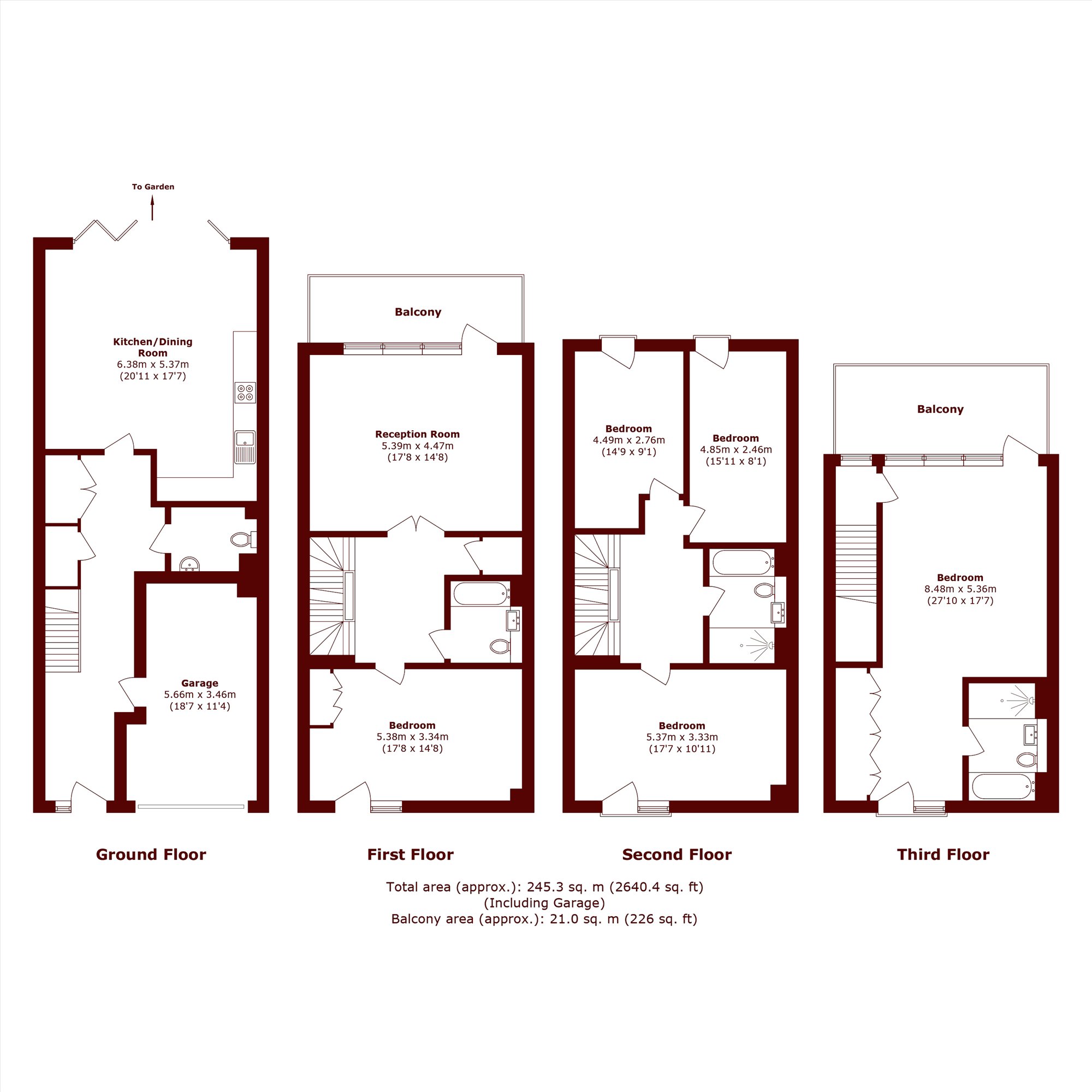 A brilliant five bedroom, three bathroom family home with two reception rooms. This property offers a versatile layout with flexible living space throughout as well as the bonus of a garage. The property is conveniently located for access to Putney, Wimbledon, Wandsworth and Southfields. On the first floor, there is a large balcony/terrace off from the living space, and on the third floor, there is also a large terrace off of the principal bedroom suite.