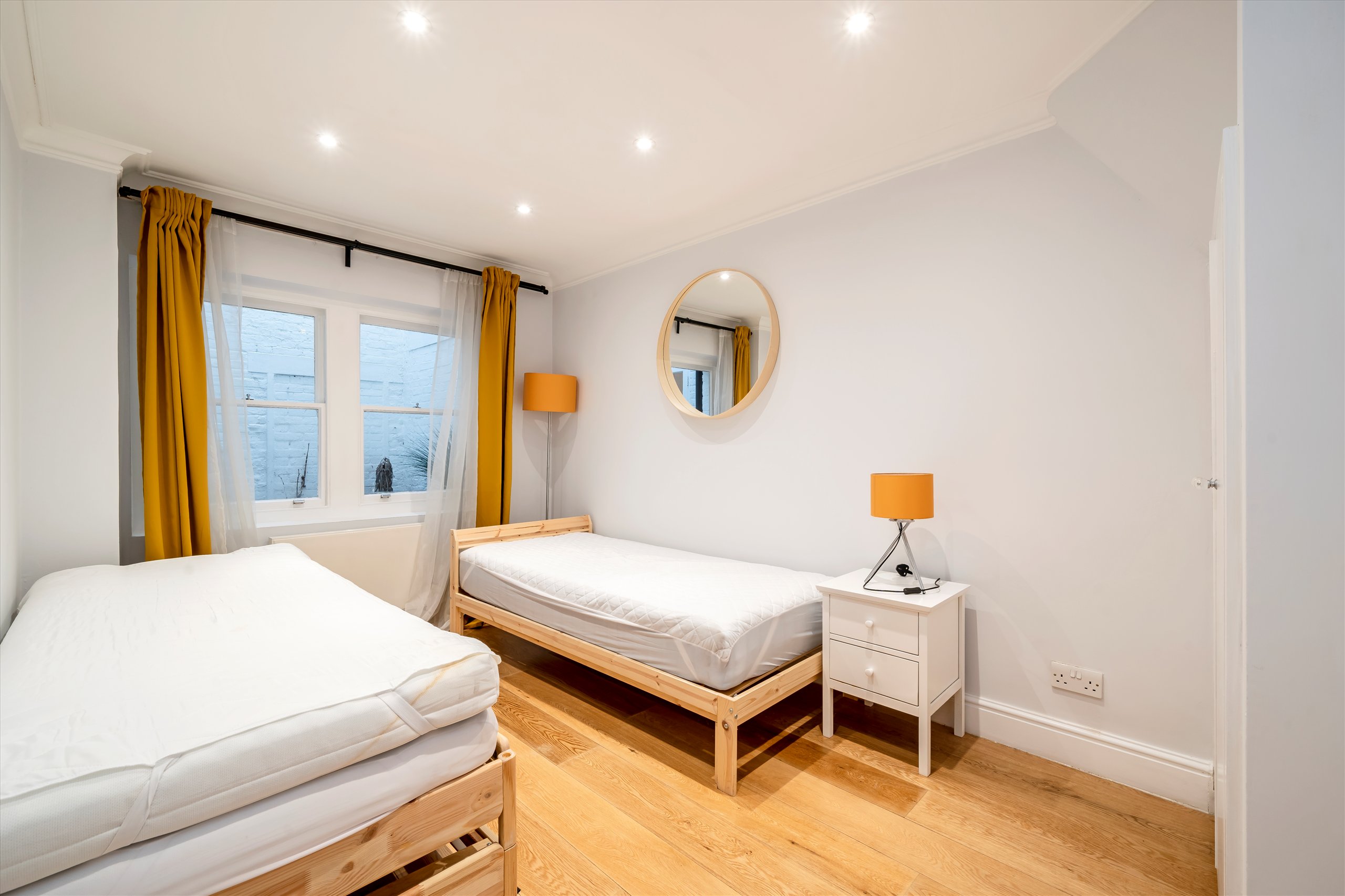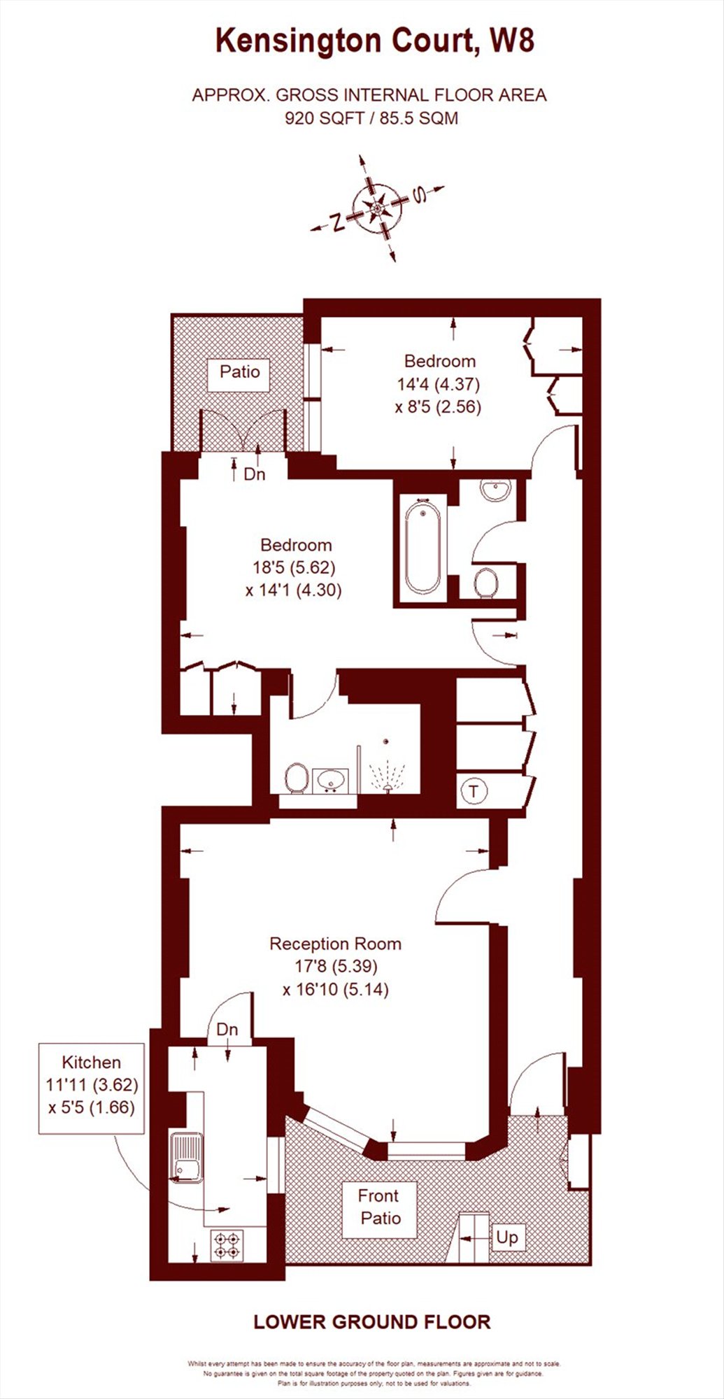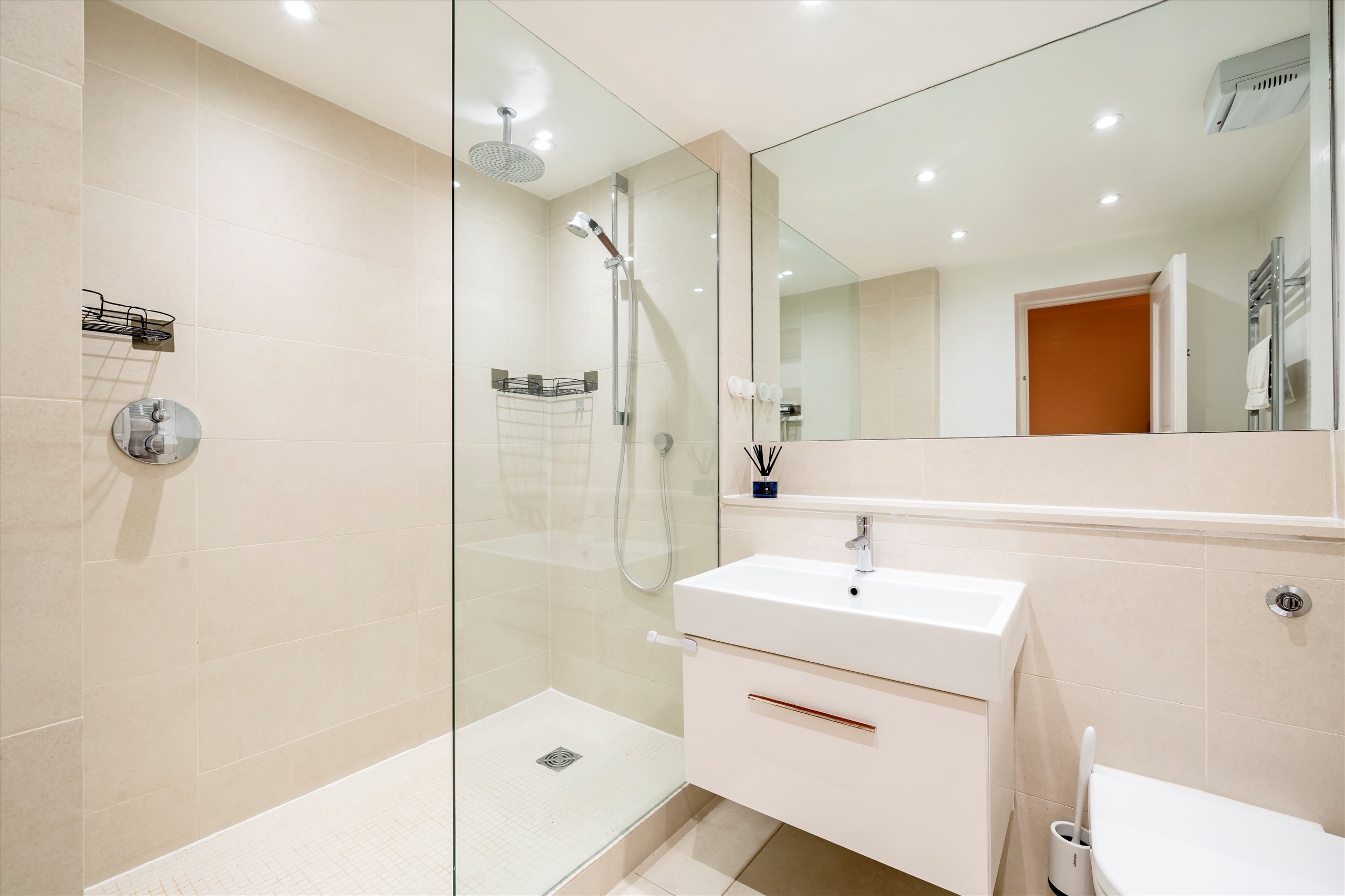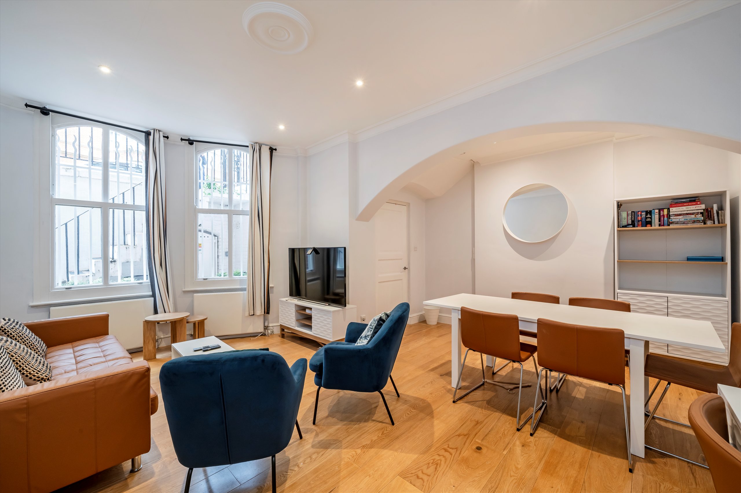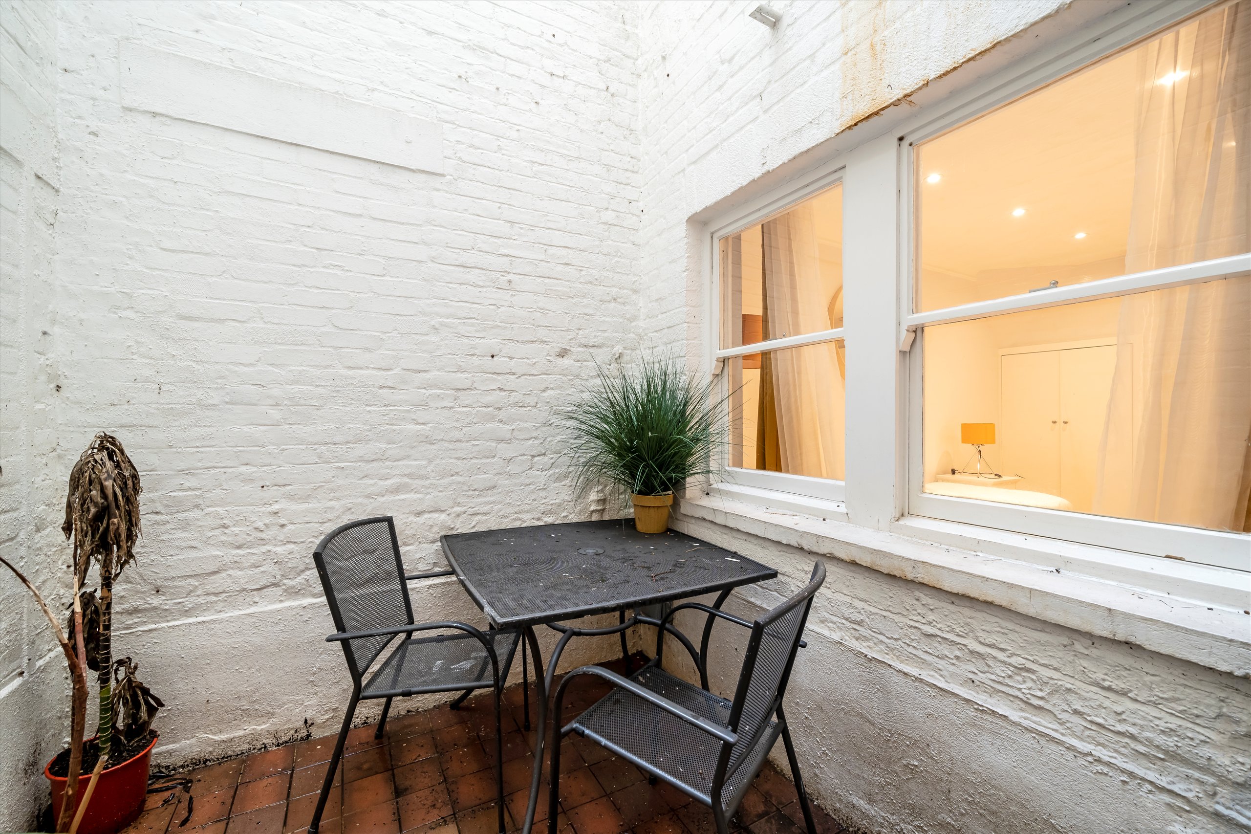 A spacious two bedroom, two bathroom lower ground floor apartment with a private patio in a prime Kensington location.