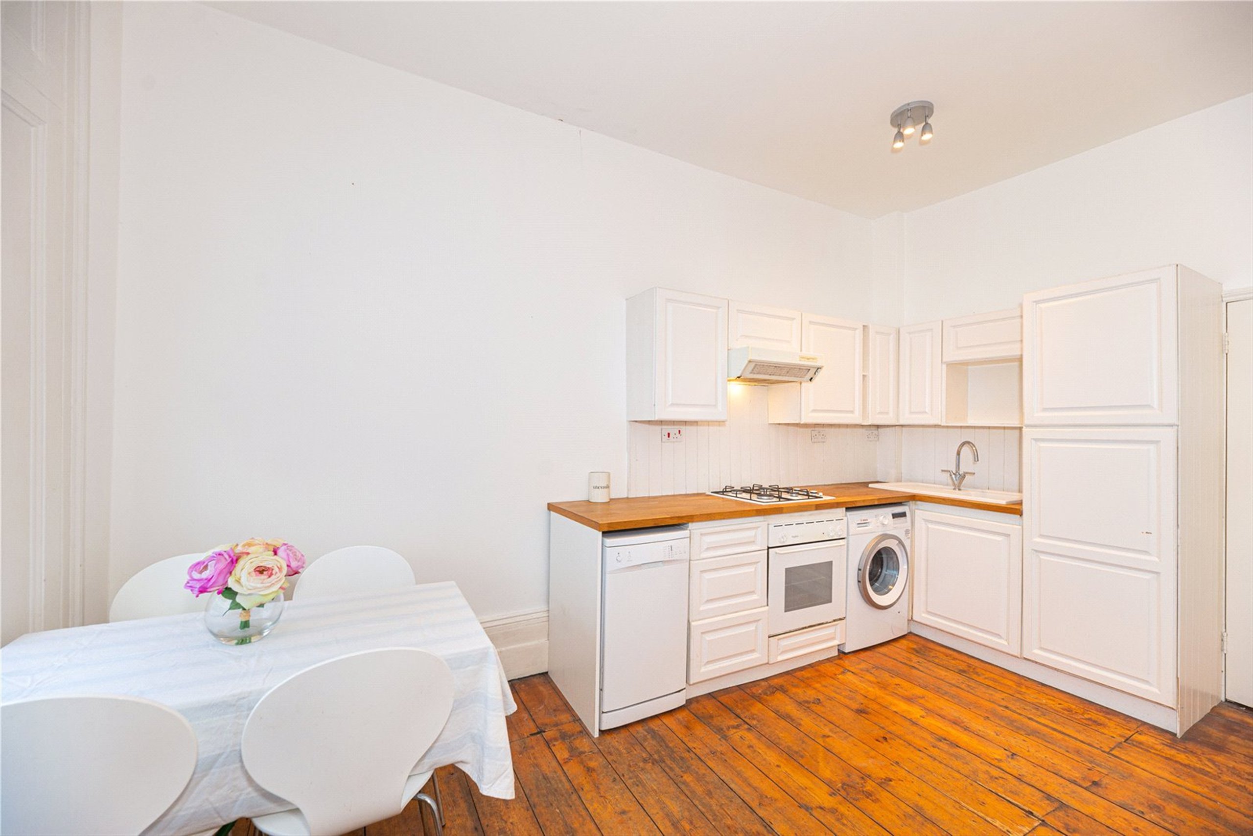 This impressive, first floor property is well-presented throughout. Comprising a spacious open plan reception room with large windows, wooden floors and plenty of space for dining, kitchen with integrated appliances, double sized bedrooms with fitted wardrobes, and a bathroom with shower over bath. The property further benefits from an abundance of storage throughout.