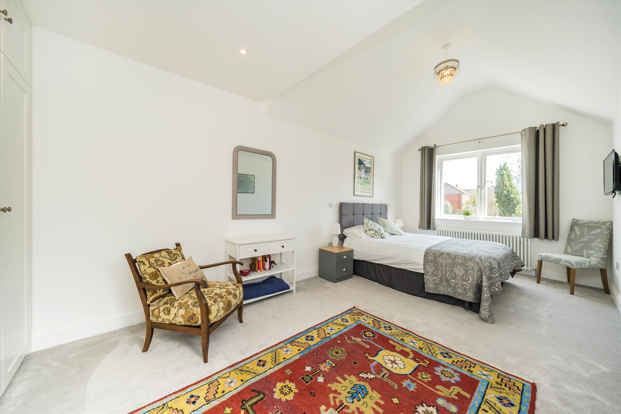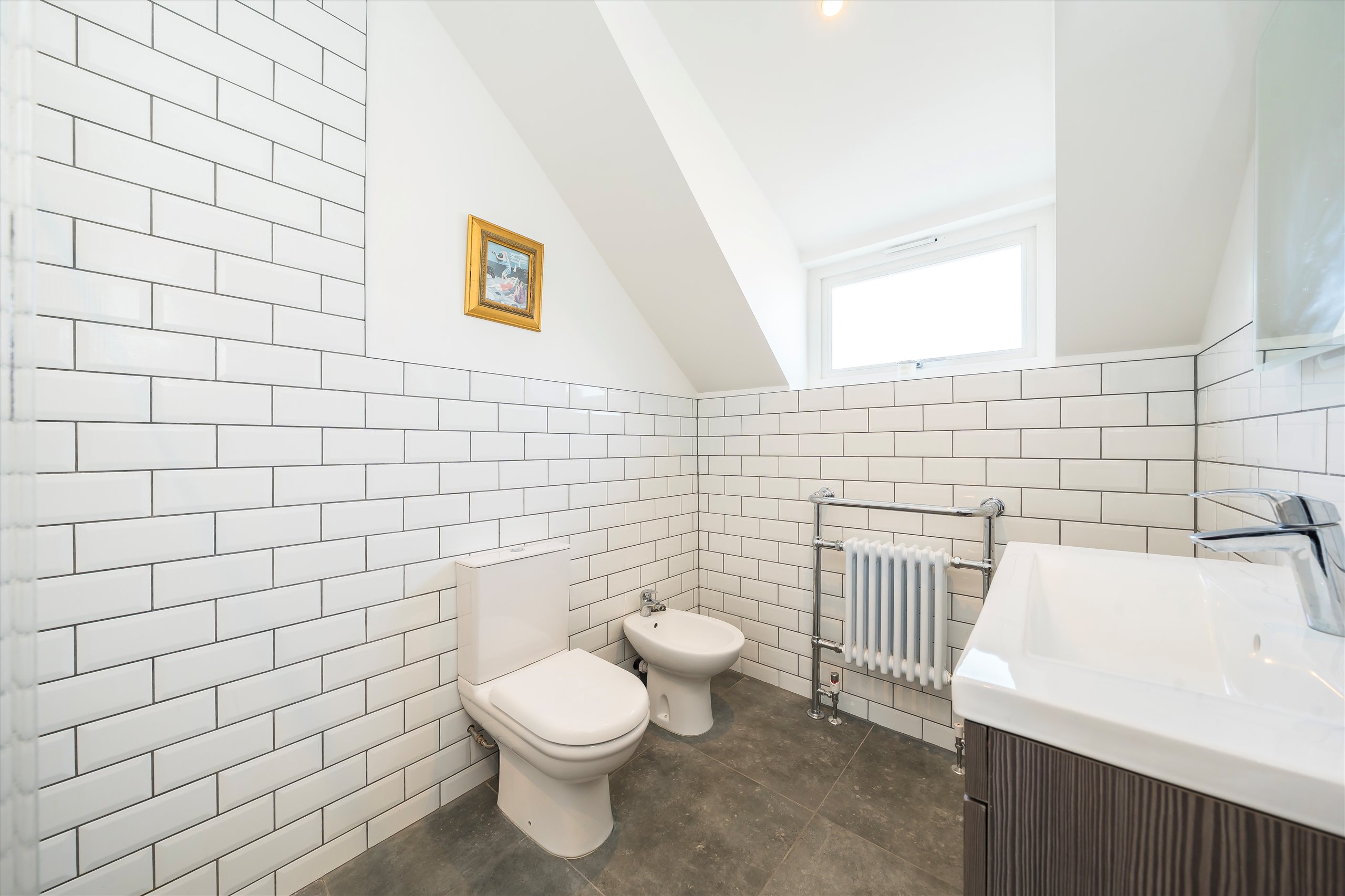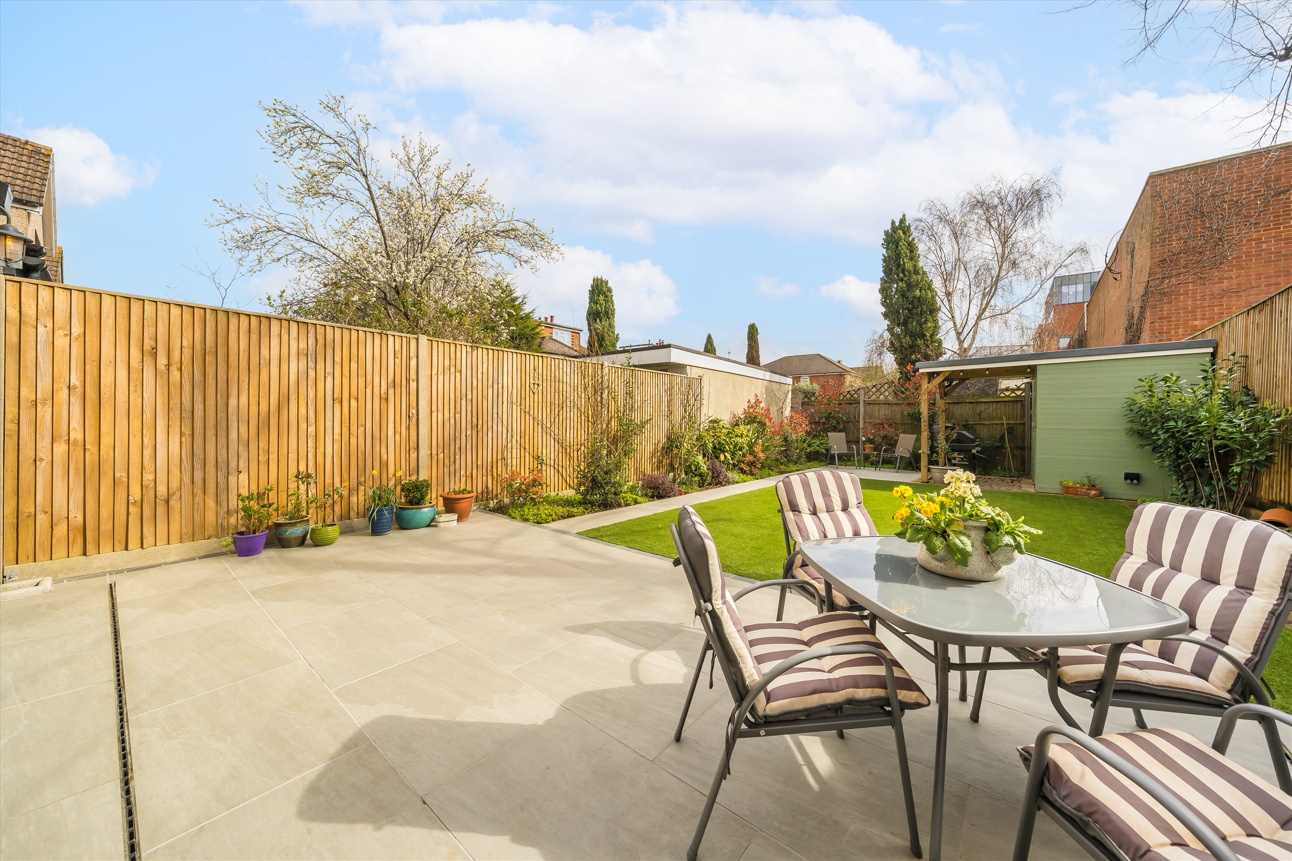 An inviting entrance hall greets you, with beautiful wood flooring running through into the generous double reception room, with 3m high ceilings and a feature fireplace. To the rear, a vast kitchen/family room offers a generous dining area and open-plan TV area. The kitchen itself is sleek and modern and features a central island, high quality worktops and integrated appliances. The entire ground floor has under floor heating. There is also a cloakroom/WC on the ground floor, useful cellar and handy side access to the house. The garden is attractively planted, has two separate porcelain patios and an area for outdoor dining. It has a powered out building and receives excellent natural light. The first floor has three double bedrooms, with fitted wardrobes served by two bathrooms. The second floor has a substantial, double aspect, principal bedroom with vaulted ceiling, en-suite bathroom and a fifth bedroom.