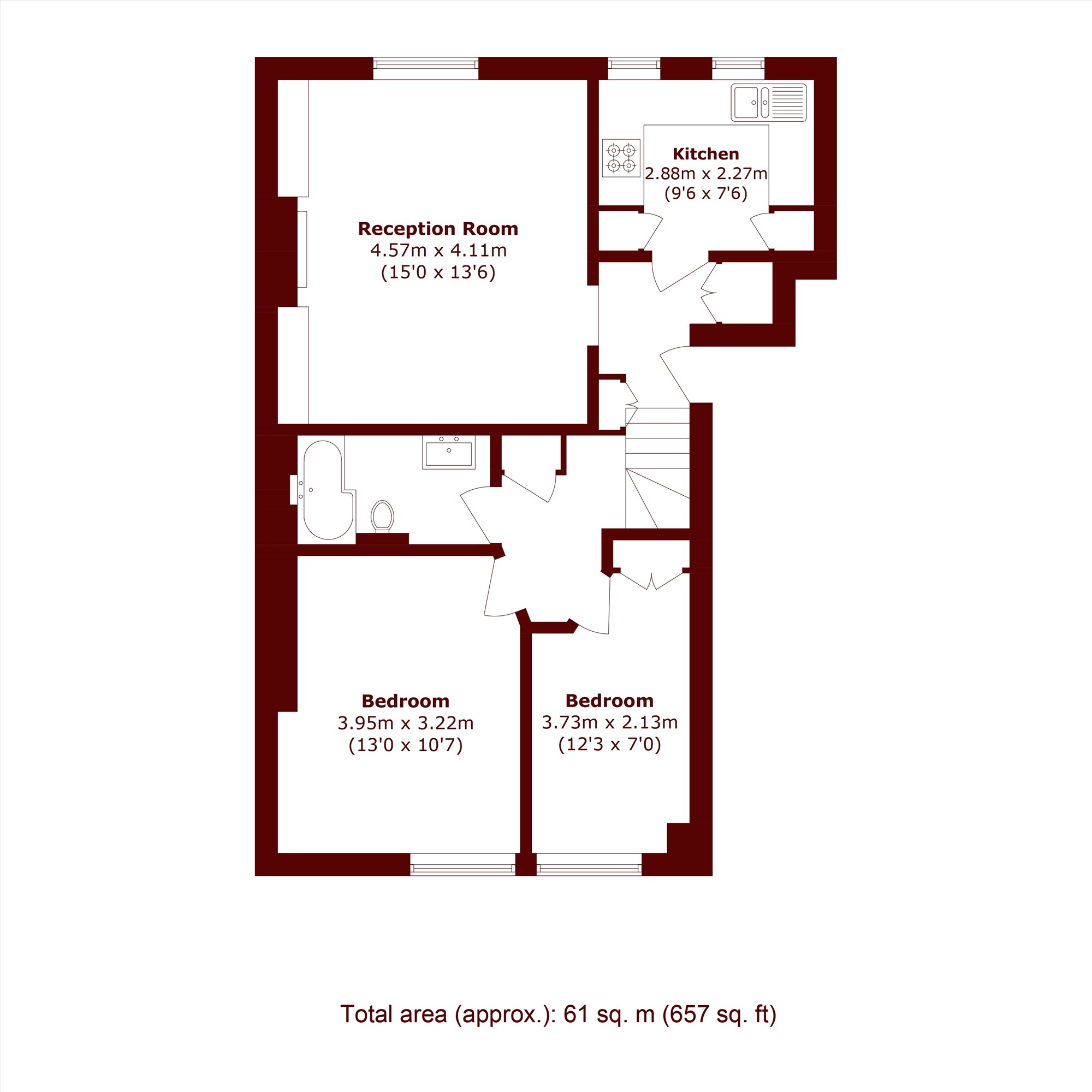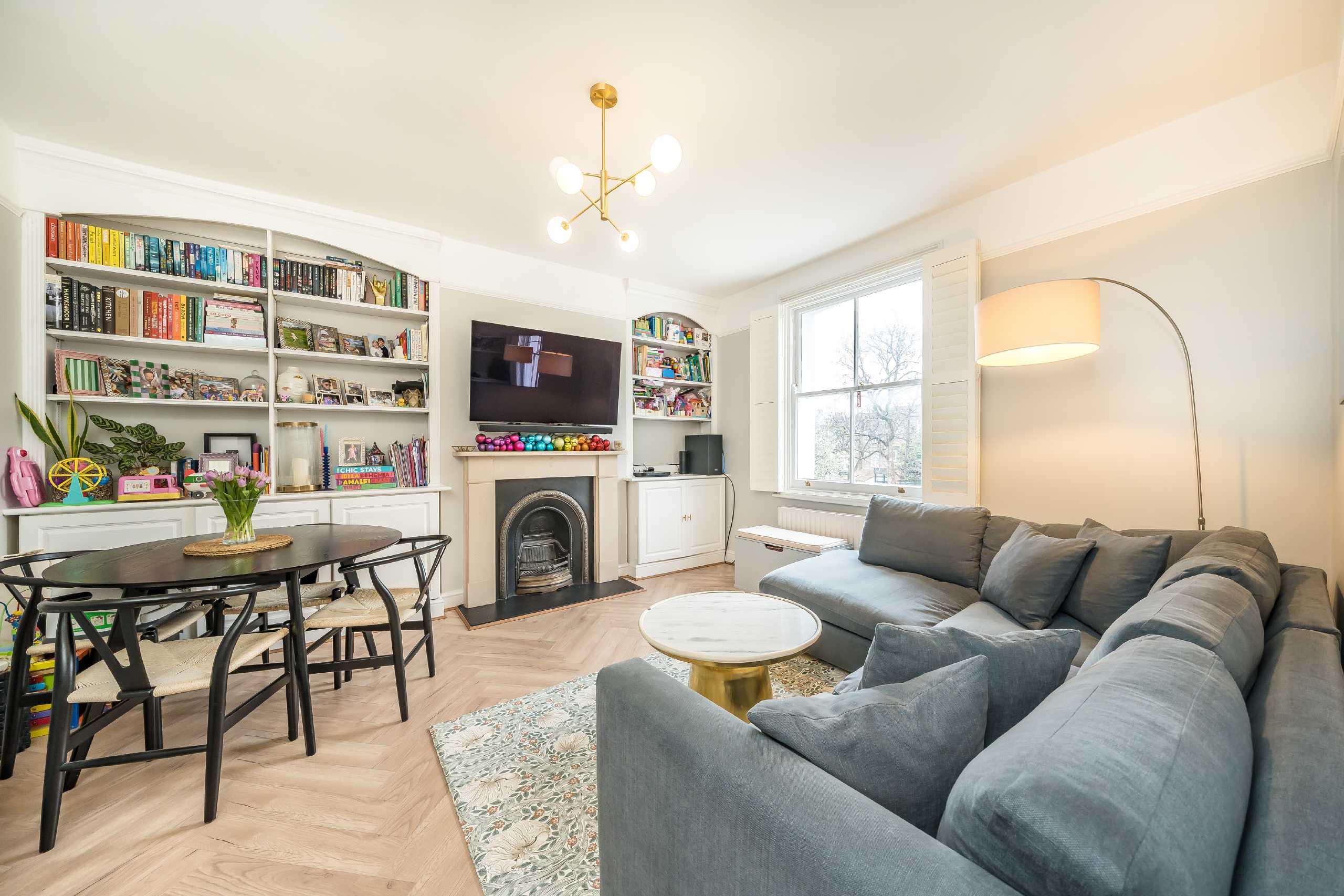This flat comes to the market with a large reception room, two double bedrooms - both with built-in wardrobes, a bathroom and fitted kitchen spaced over the first floor of a beautiful red brick period property. The spacious reception room is perfect as both a living and dining area and has herringbone flooring fitted. It has plenty of natural light due to the large sash window and it has a built-in fireplace. The modern kitchen comes fully fitted and has views over the gardens. The flat also benefits from plenty of storage throughout and has been finished to a high standard.
