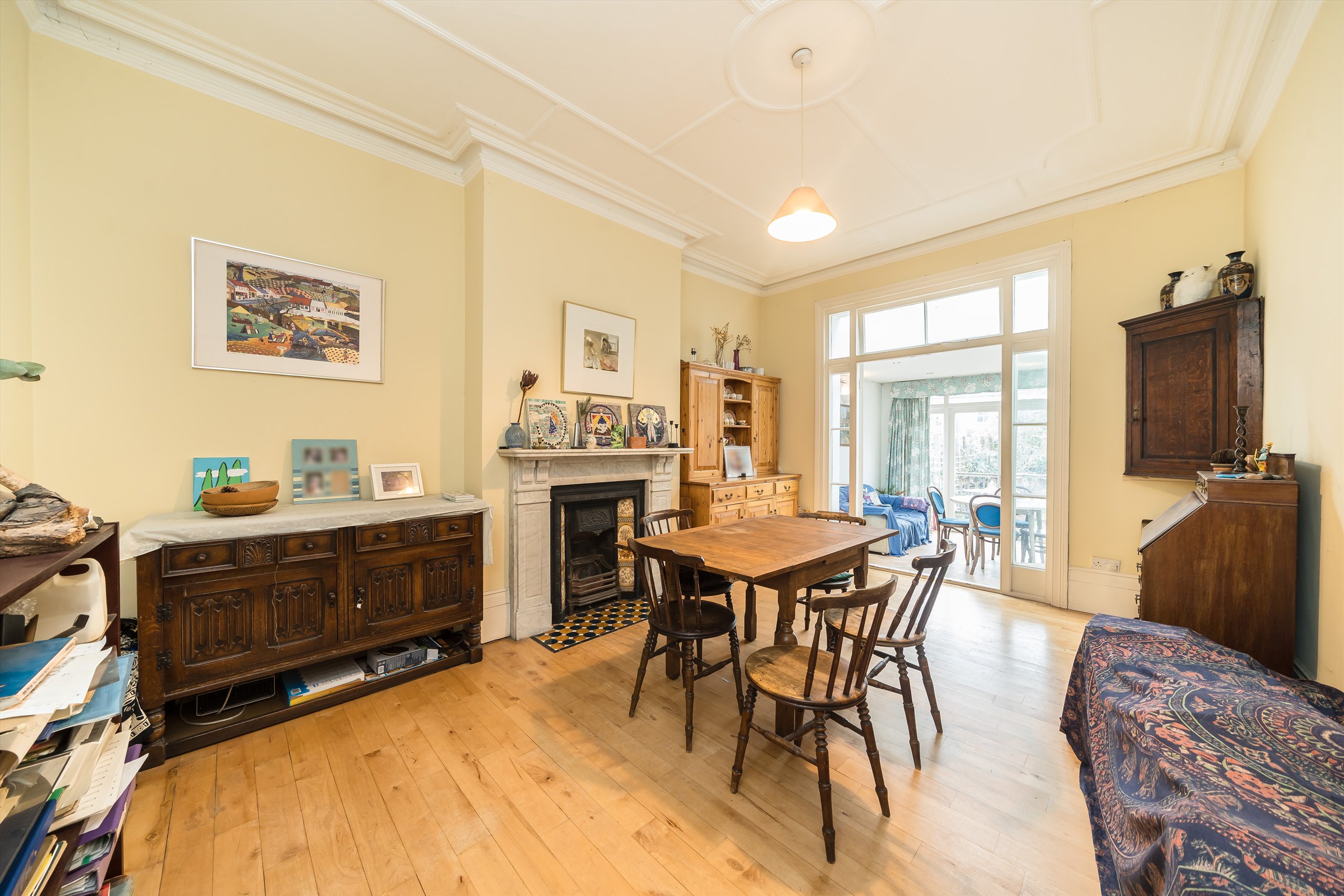 The accommodation is arranged over three floors and offers superb proportions throughout. On the ground floor you arrive into a large entrance hall with original Edwardian tiles, a large reception room is to the front of the property boasting wooden panelling on the ceiling and a beautiful fireplace. A separate dining room is adjacent before entering into a large extended kitchen/breakfast room with views over the private rear garden. A shower room is off the entrance hall and access into the basement can be found under the stairs.