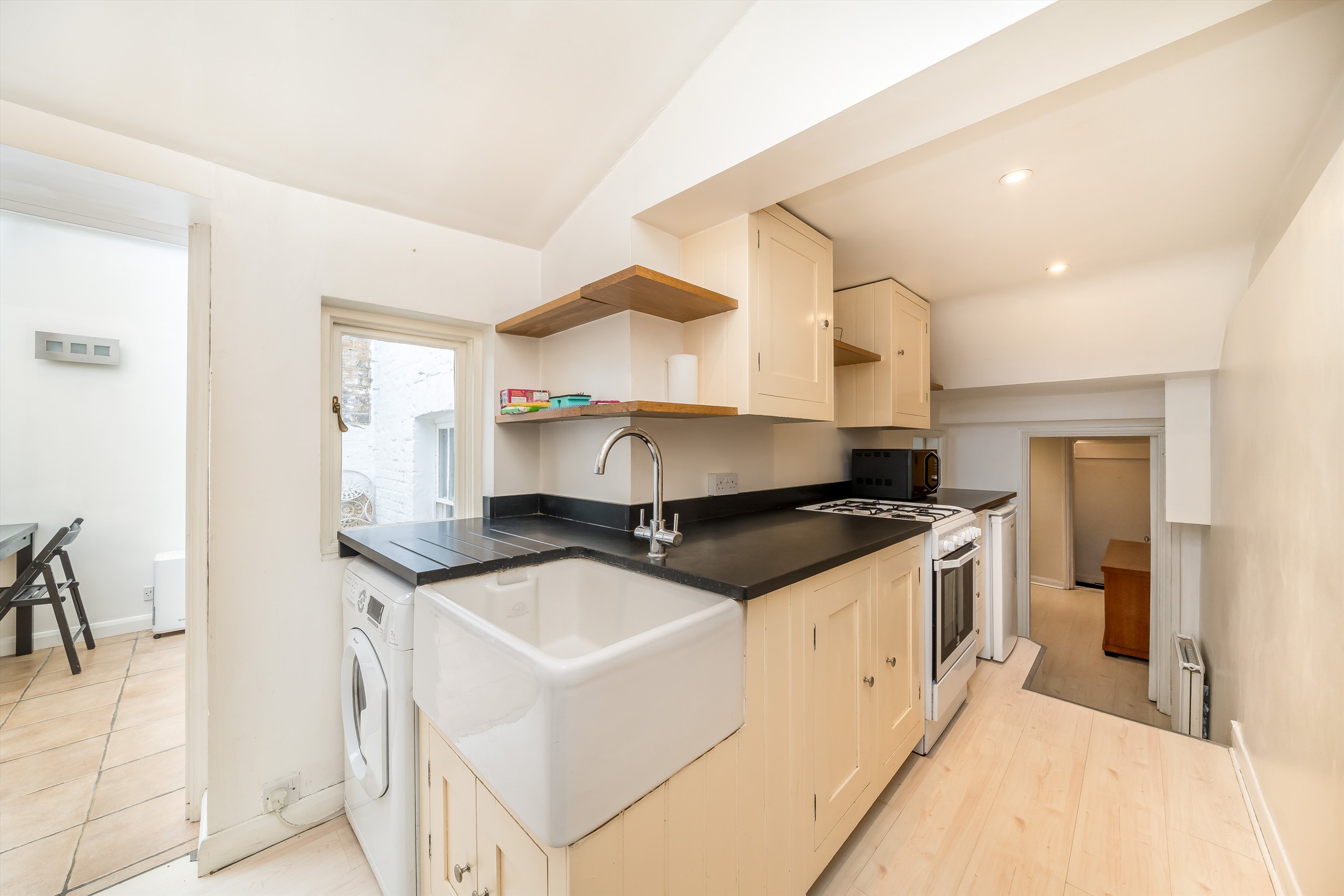 Flooded with natural light, this charming garden apartment offers its own private entrance and generous proportions throughout. It features a spacious reception room and a separate, well appointed kitchen.