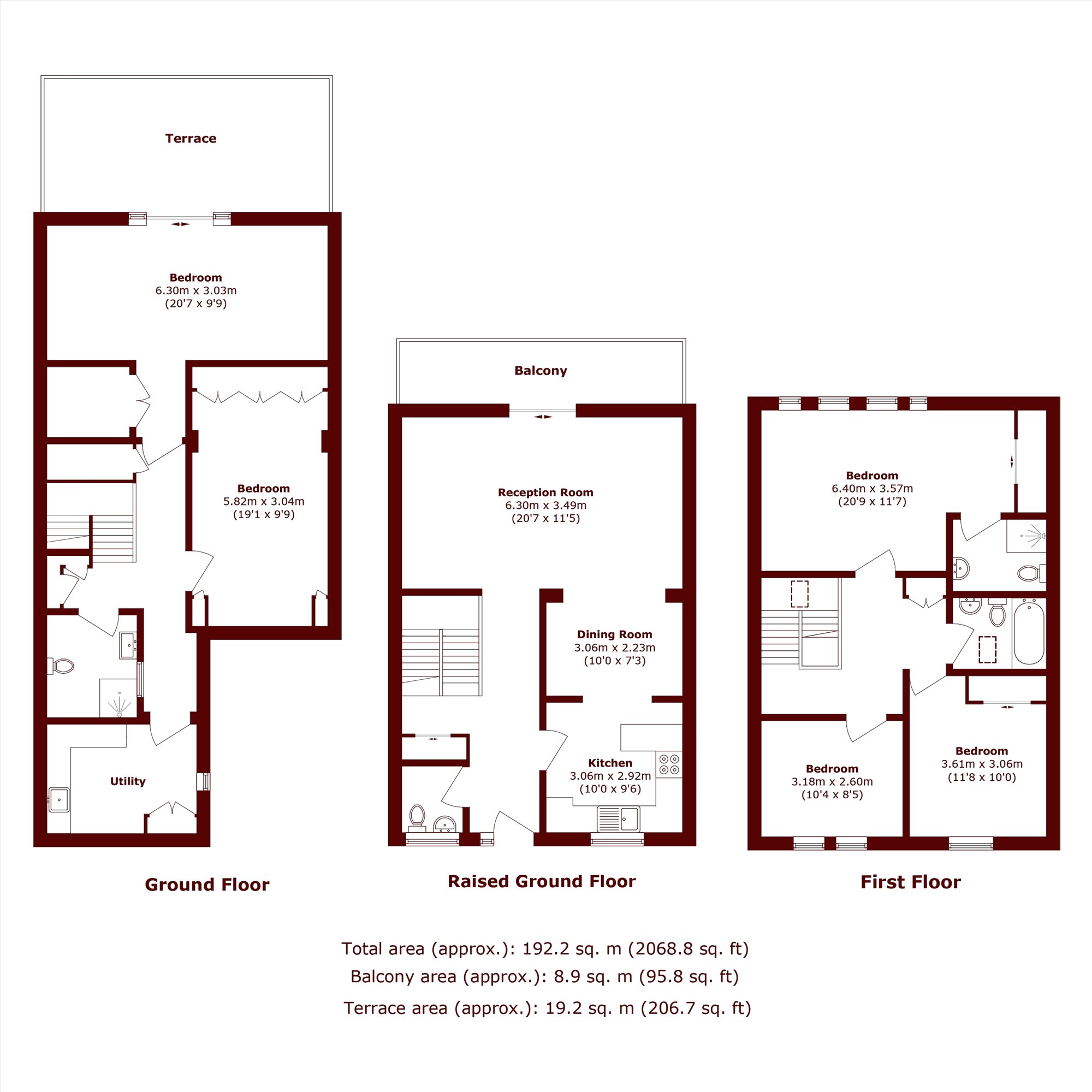 The first floor reception interconnects through to the dining room and kitchen creating a lovely bright and spacious open-plan feel. The balcony is an excellent size and with virtually no-one overlooking from the rear it is extremely secluded and particularly sunny. There is an additional WC on this floor. Upstairs, the top floor principal bedroom benefits further unspoilt views of Surrey and has an ensuite. Alongside are two further bedrooms and a family bathroom/WC.