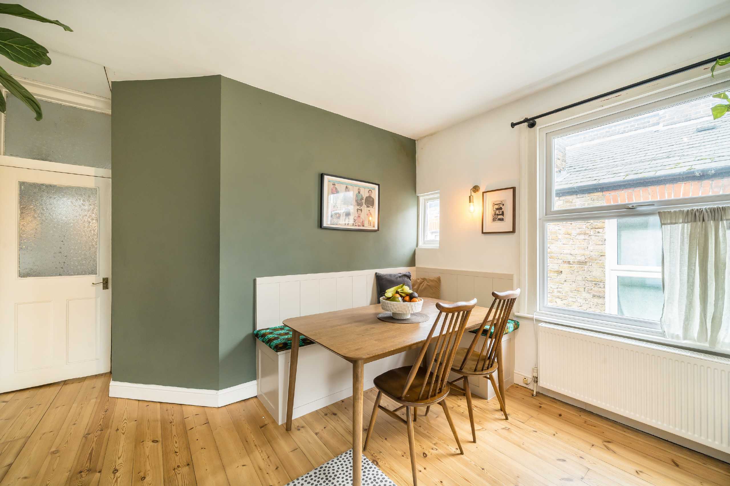 A fantastic example of an upper maisonette set over the first floor of an attractive period property comprising two bedrooms, a spacious reception room, a family bathroom and a superb kitchen-dining room boasting solid wooden floors, ample wall and base units and bespoke banquette seating. The property further benefits from direct access to private garden and is offered to the market chain free.