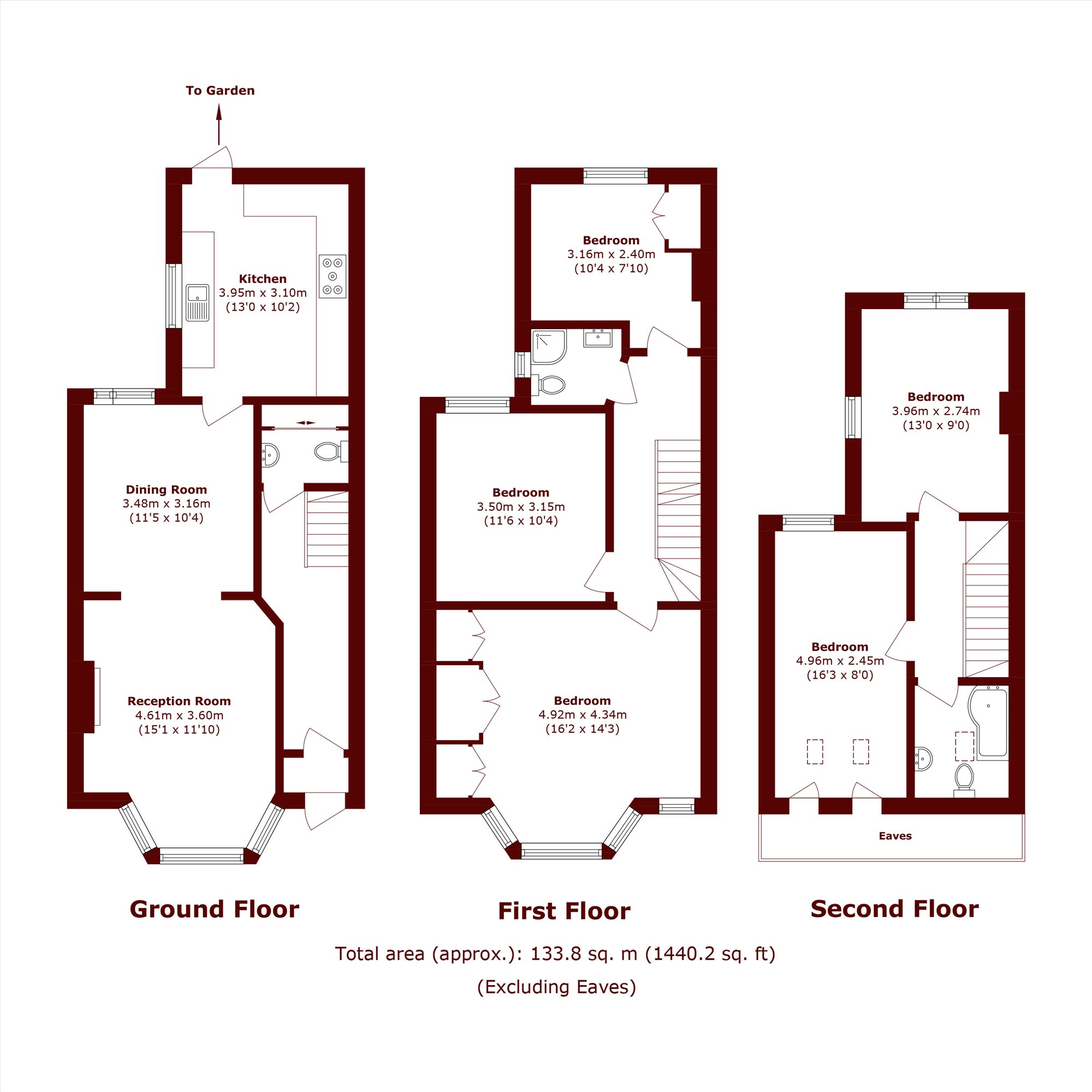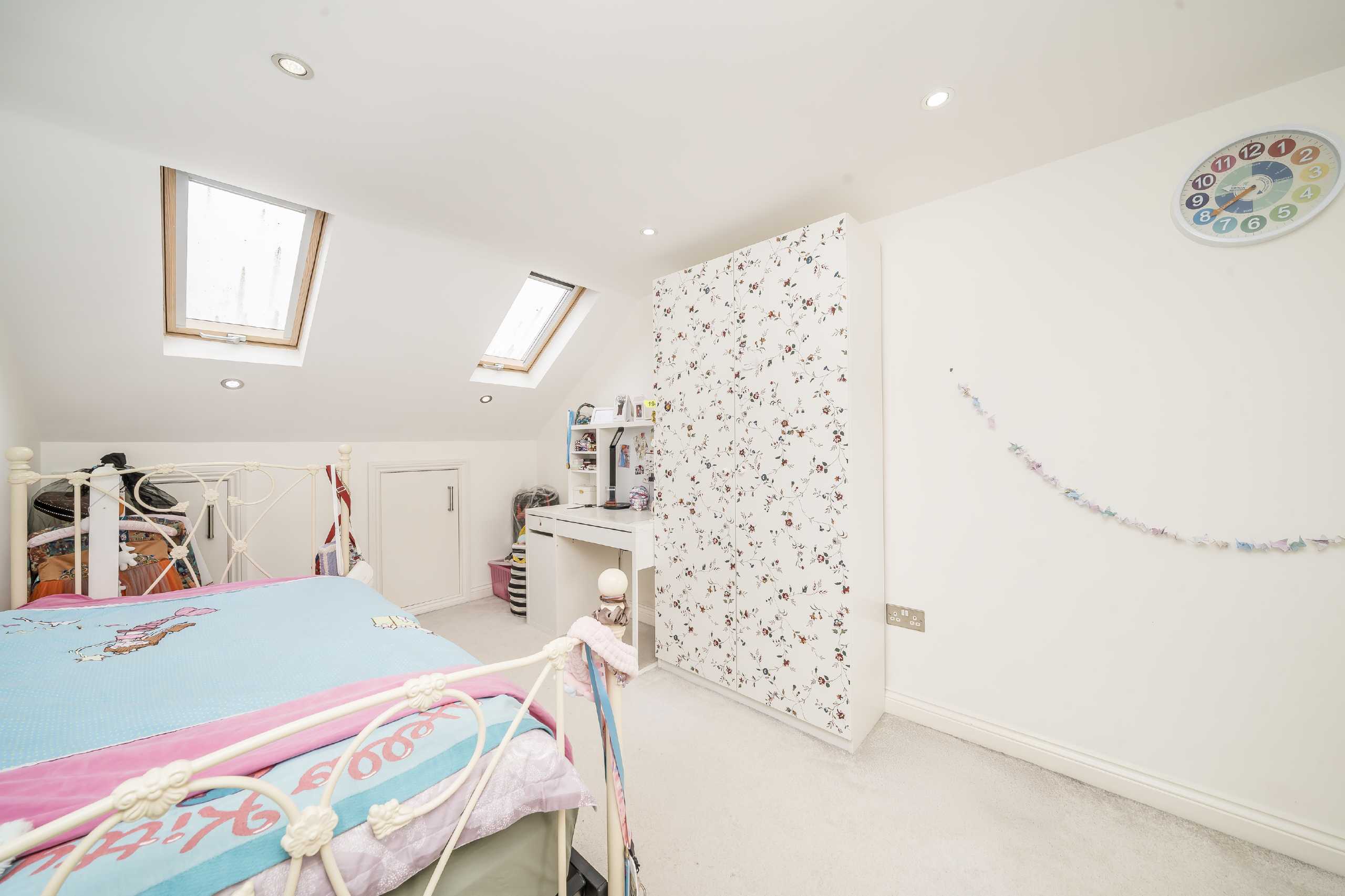 The first floor comprises two well-proportioned bedrooms, a spacious principal bedroom with fitted wardrobes, and a family bathroom. The top floor provides two further double bedrooms, an additional bathroom, and ample eaves storage. Ideal for growing families seeking space and convenience. The property has underfloor heating through the entire house.