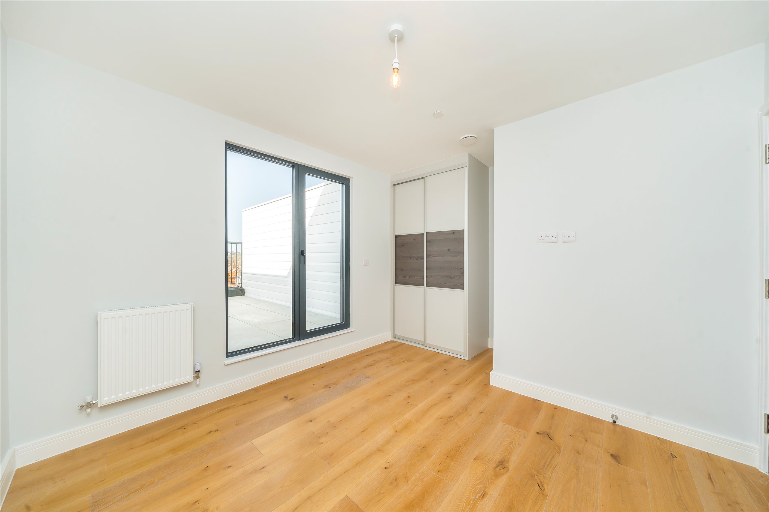 A one double bedroom penthouse apartment with two dual aspect roof terraces. One faces South-East, and the other North-West meaning the apartment benefits from sunlight throughout the entire day.
