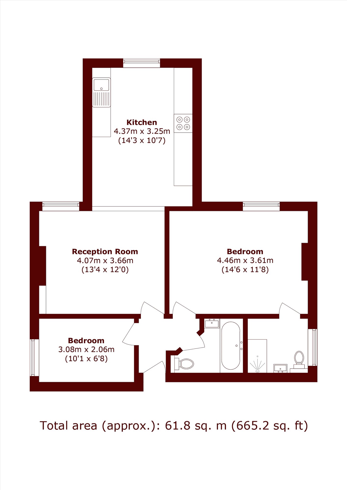 This charming, two-bedroom apartment is situated on the first floor of a detached period building, comprising a bright reception room, large eat-in kitchen with integrated appliances, two bedrooms, two bathrooms, one of which is ensuite and ample storage space above the kitchen.