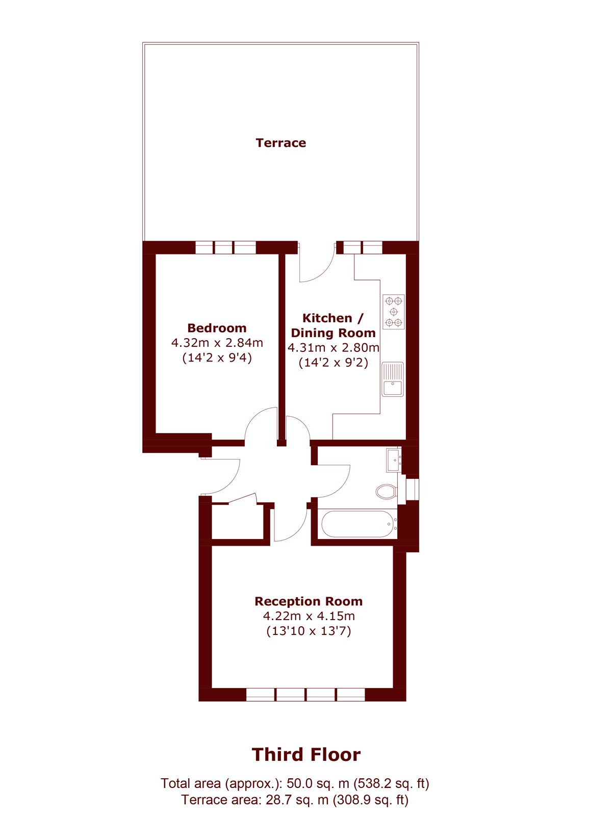 This unique apartment is situated on the top floor of a modern building and comprises a large, bright reception room, separate fully fitted eat-in kitchen, spacious double bedroom and a three-piece family bathroom finished to a high standard.