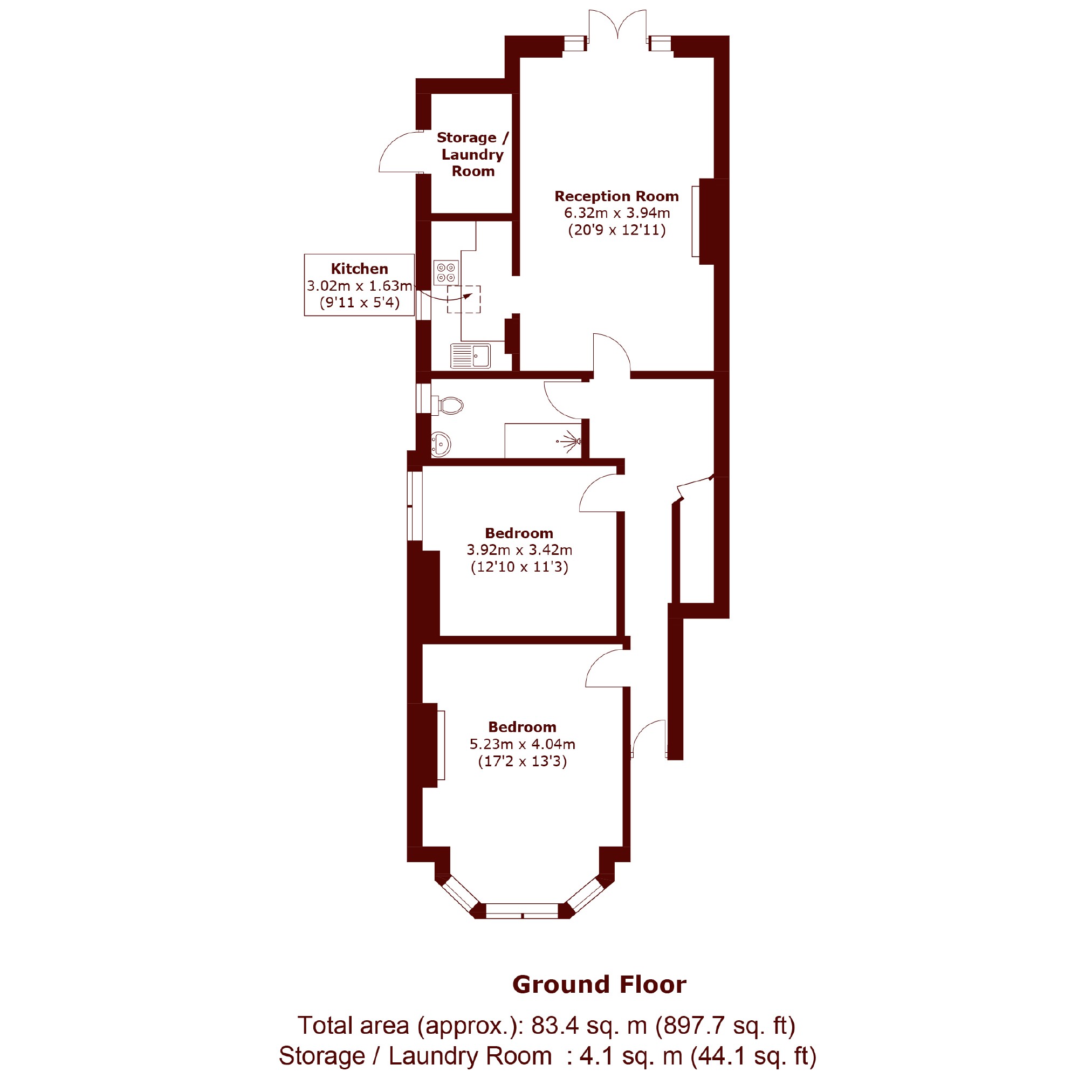 This charming, two-bedroom ground floor garden flat is arranged over 897sqft and comprises a spacious reception room with french doors leading out to a private, west-facing garden, separate kitchen, two double bedrooms, a three-piece family bathroom with walk-in shower and a utility room.