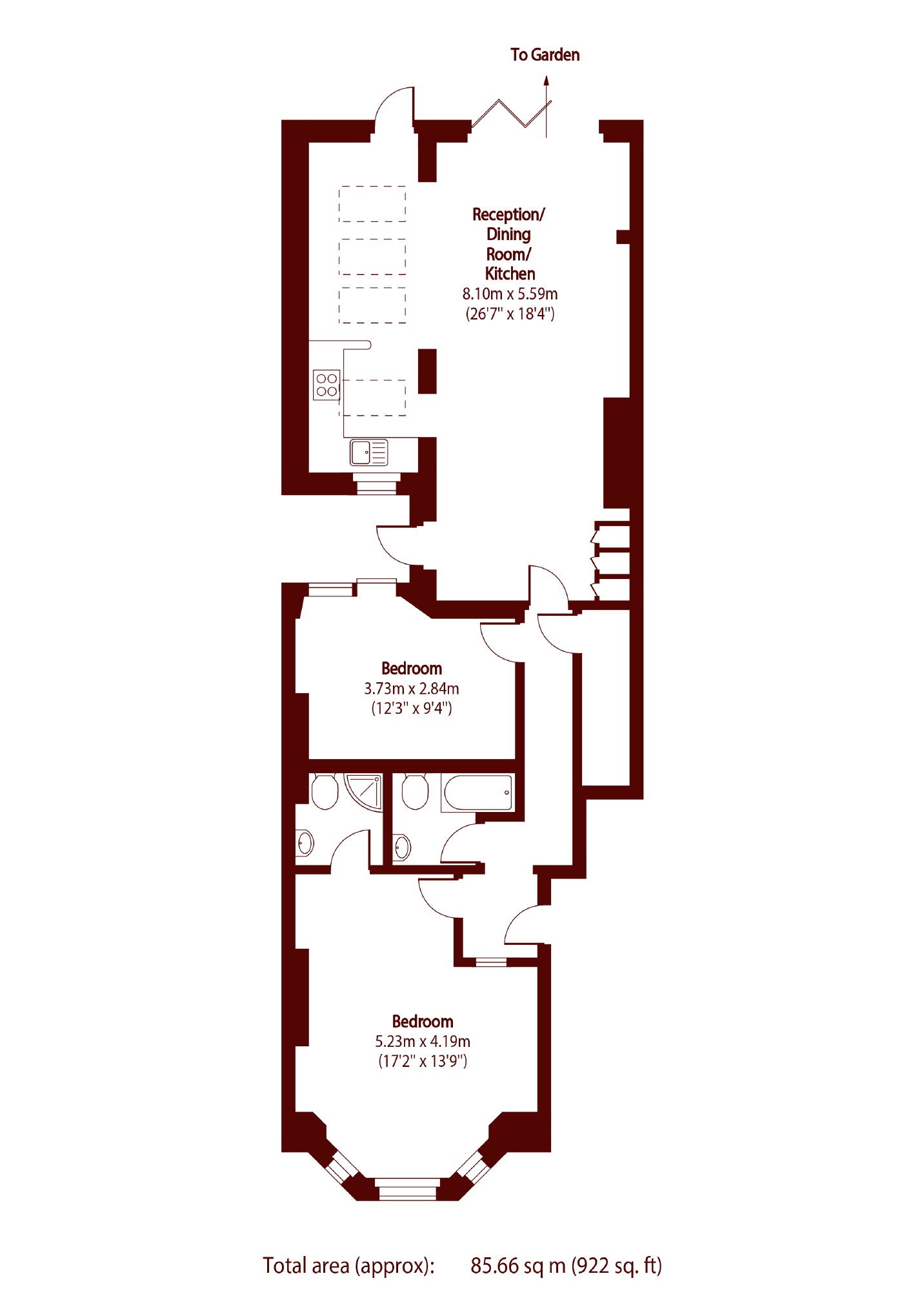 This superb, two-bedroom, two-bathroom garden flat is situated within a charming period conversion, comprising a bright, open plan kitchen/reception room complete with integrated appliances and bifold doors which open up into the lovely private garden, two bedrooms, ample storage space and two bathrooms, one of which is ensuite.
