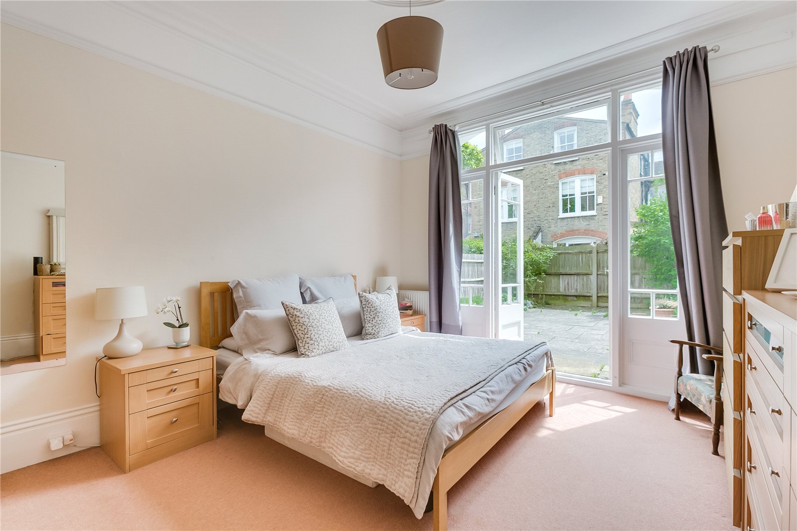 This larger than average one-bedroom ground floor apartment is neutrally decorated and boasts high ceilings and period features throughout. Comprising a spacious reception room with bay window and dining area, separate kitchen with breakfast bar and French doors leading out to a large paved garden, good sized double bedroom, also with access to the garden and a contemporary bathroom with separate shower and bath. The property further benefits from a cellar for extra storage.