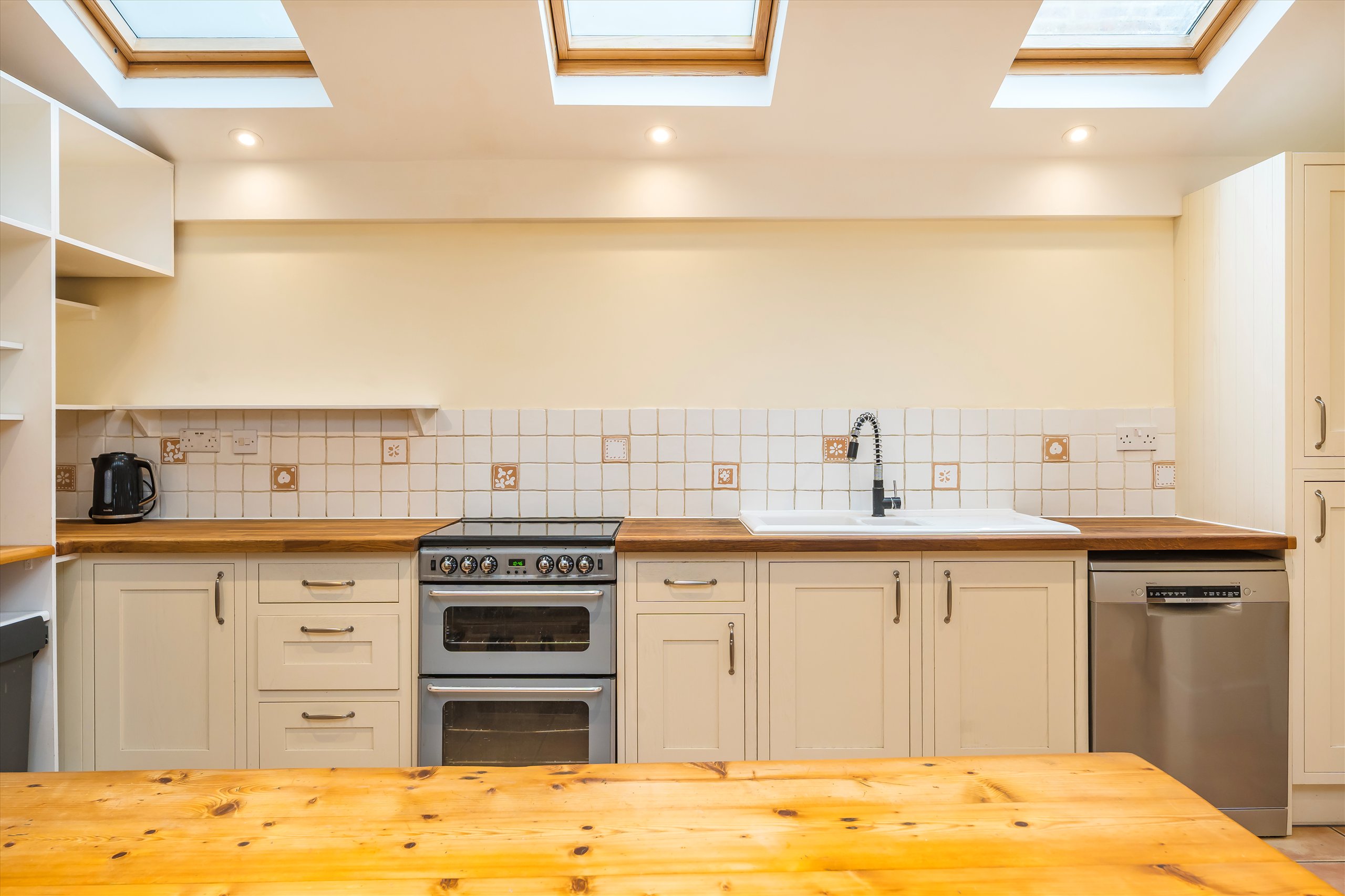 An extremely attractive five bedroom mid-terraced Victorian family house which has been extended and modernised to a very high and tasteful standard. Open to four sharers. The accommodation is arranged over four floors and comprises a double reception room, large kitchen/breakfast room with French doors leading to a south-facing rear garden, cellar, downstairs cloakroom, five bedrooms and two bathrooms. On the ground floor there are two well-proportioned reception rooms with wooden floors and a modern eat in kitchen. This property works perfectly for four professional sharers.