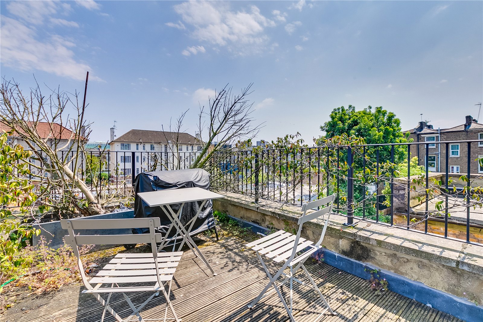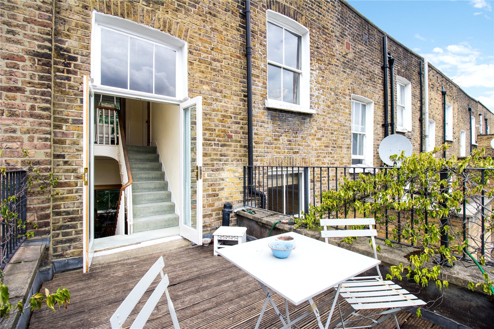 A bright and spacious three bedroom flat of over 1050 square foot, arranged over three floors. The property is well-presented with a decked roof terrace, a bright eat-in kitchen, three well-proportioned double bedrooms and large reception room. The property boasts high ceilings and classic period features.