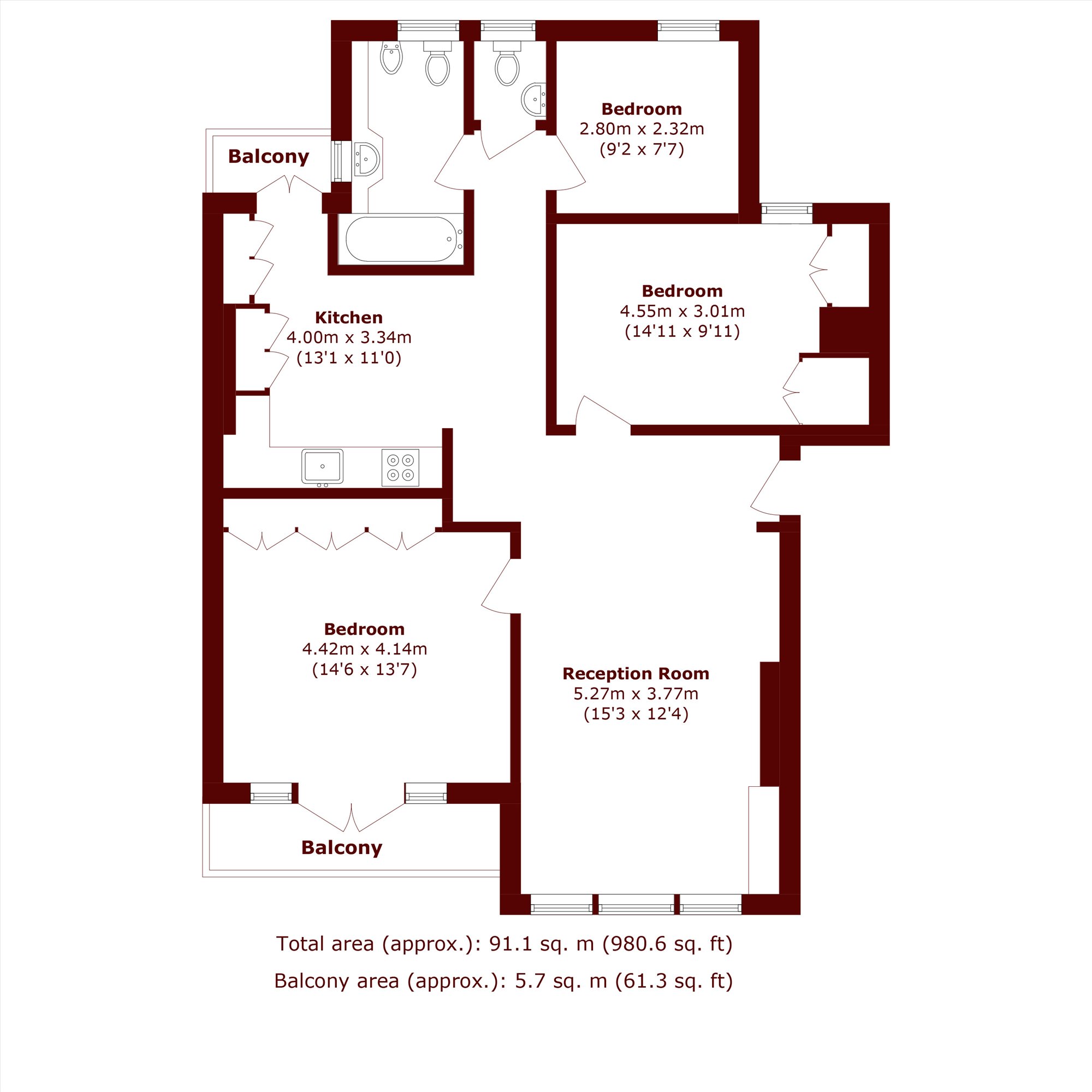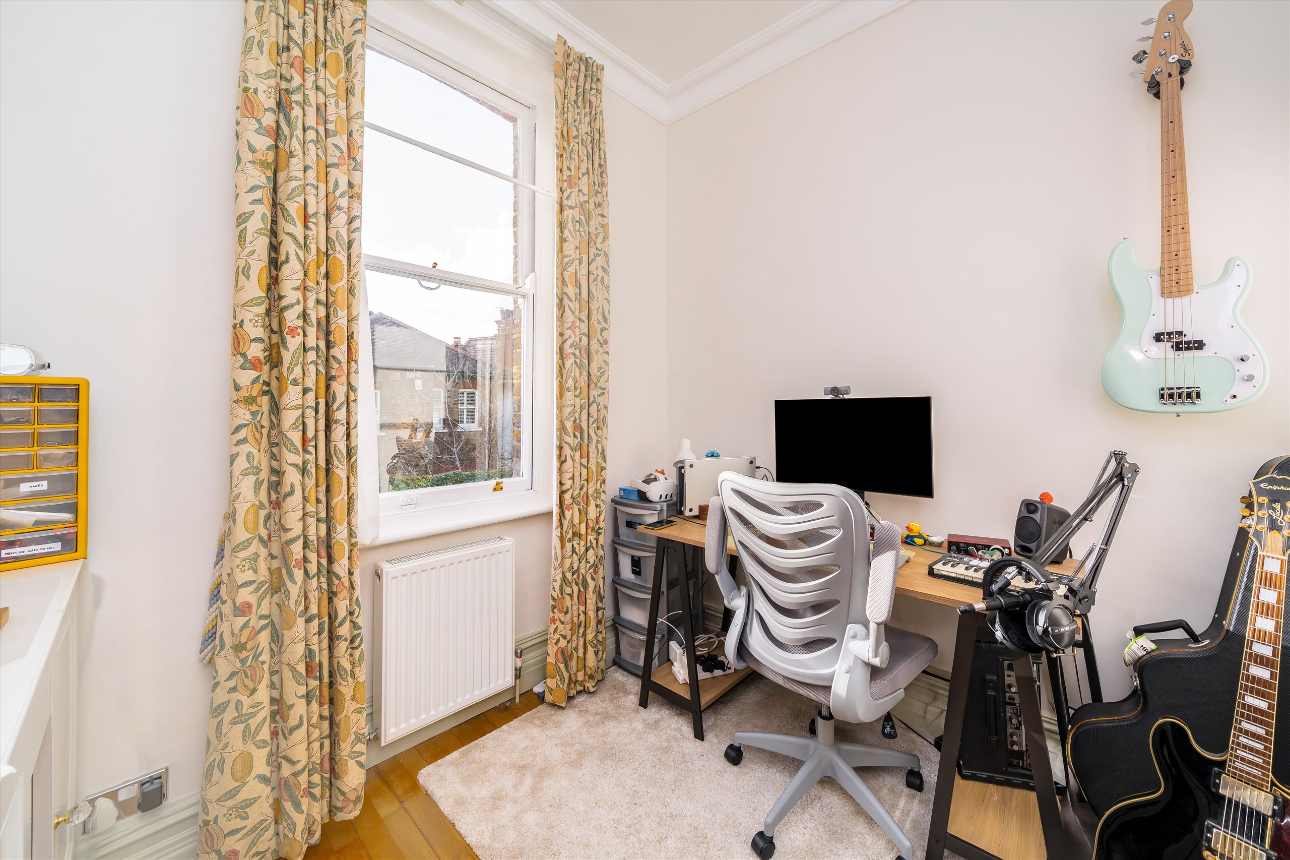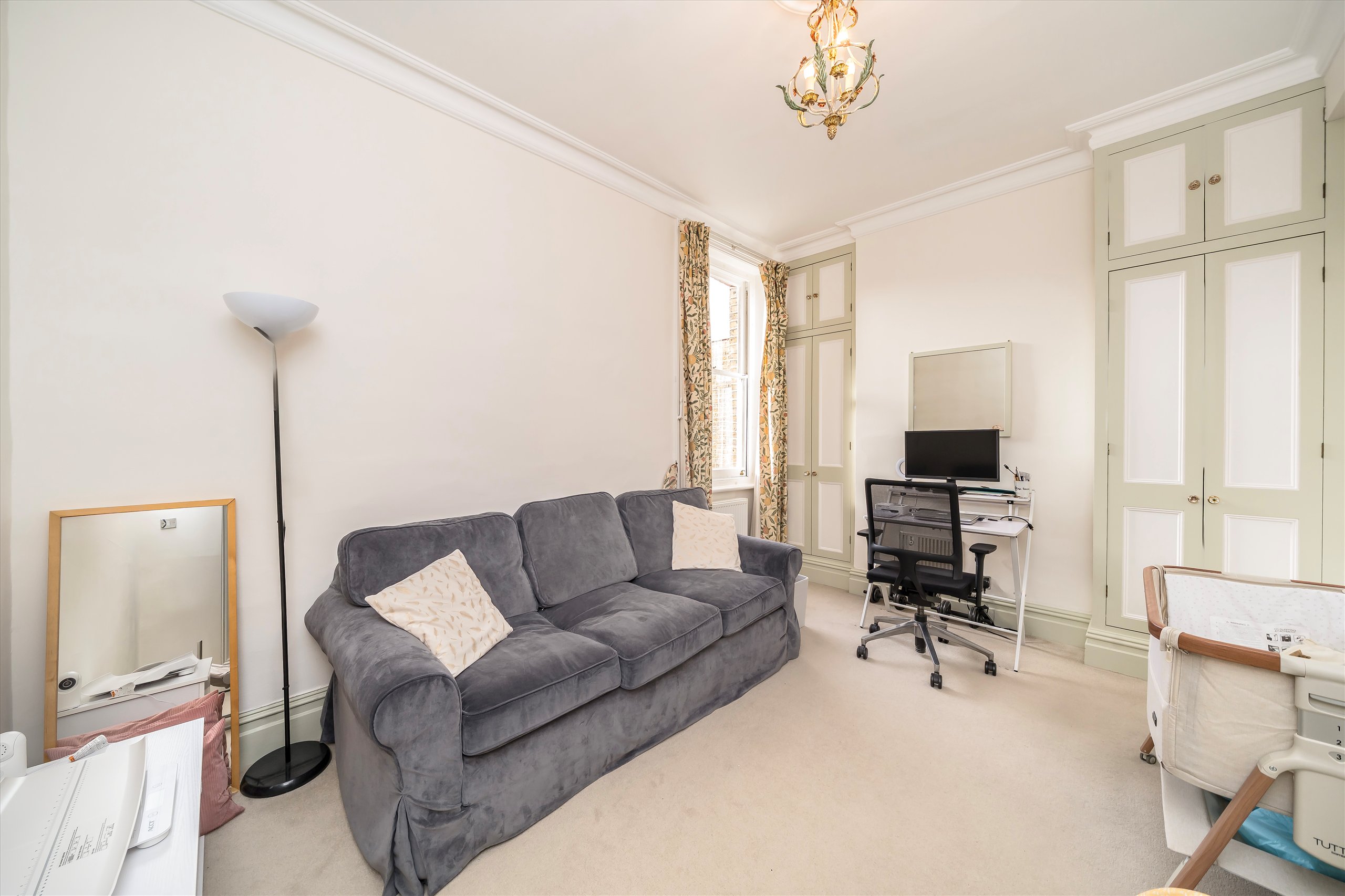 This superb apartment comprises the primary bedroom with fitted in wardrobes with private balcony, double bedroom with fitted in wardrobes, a study/single bedroom, 1 bathroom, large reception room with high ceilings and fully equipped kitchen leading onto a private balcony.
