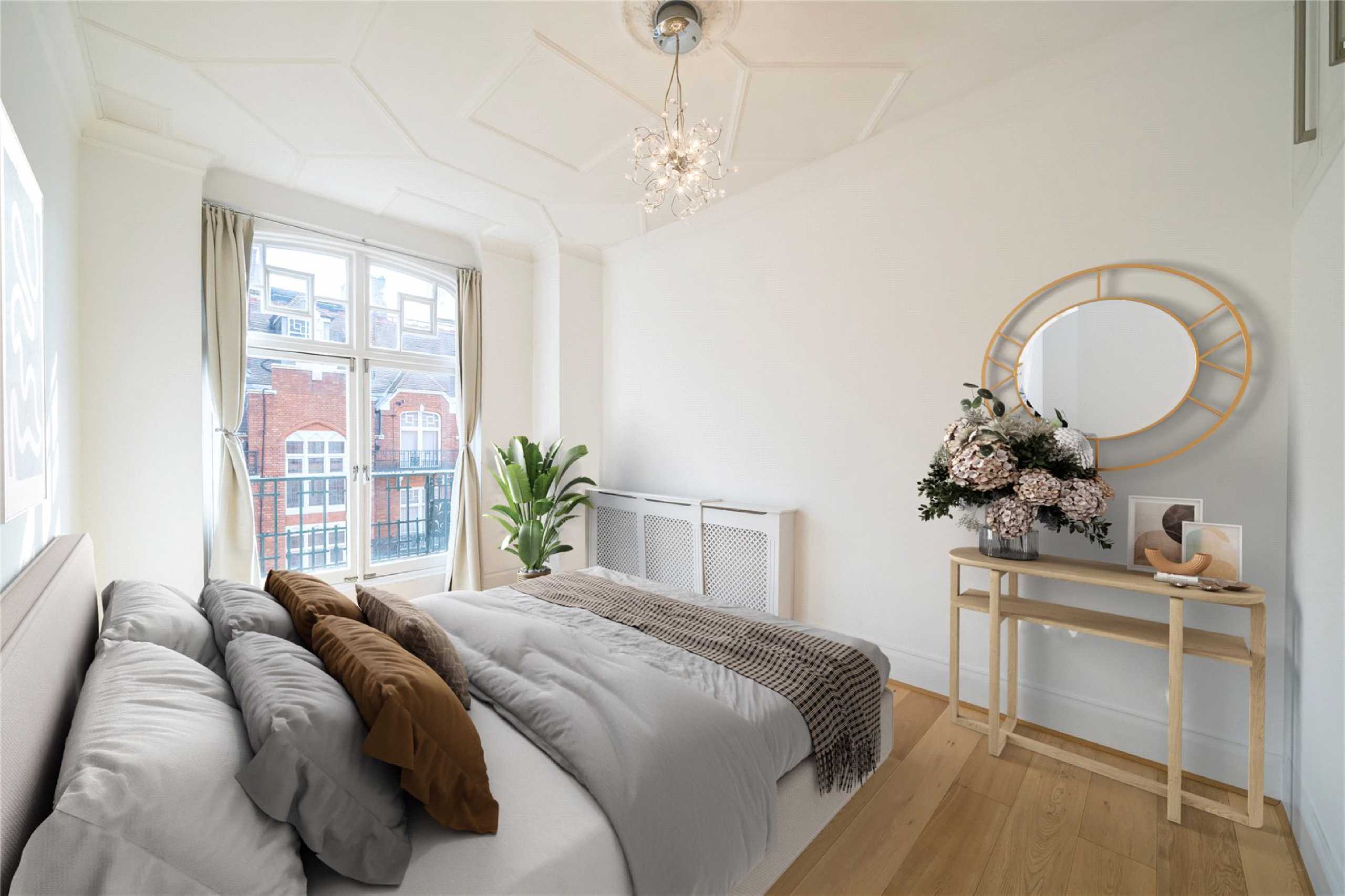 Arranged over nearly 1200 sqft and located on the fourth floor (with lift) of a popular portered building, this exquisite apartment boasts beautiful high ceilings and masses of natural light throughout. The property comprises a large entrance hall which leads through to a modern separate kitchen with built-in appliances and a large reception room with ample dining and entertaining space, Juliette balcony, floor to ceiling windows and feature fireplace. All three bedrooms are large doubles, the master being en suite and there is further contemporary family bathroom.