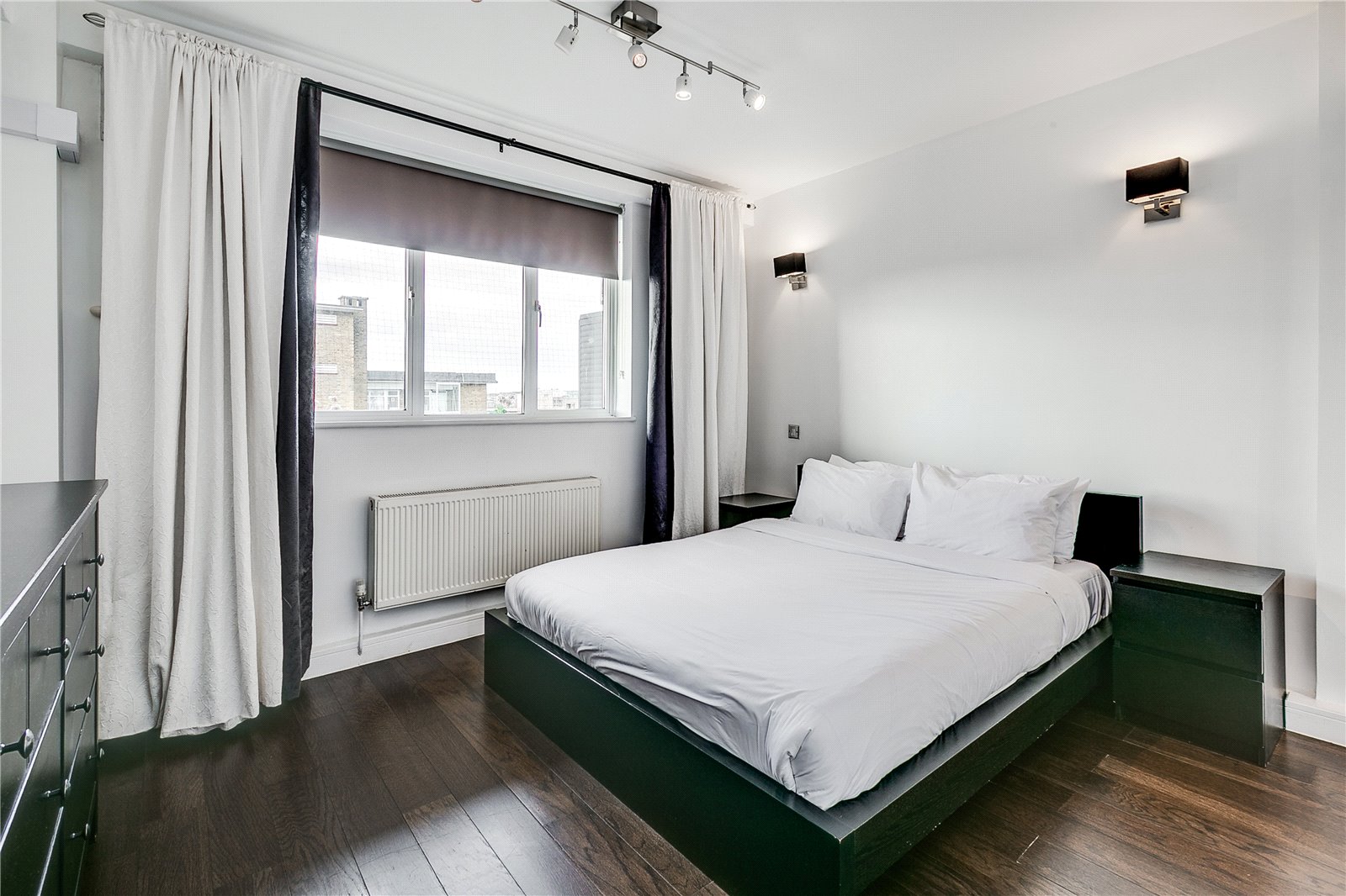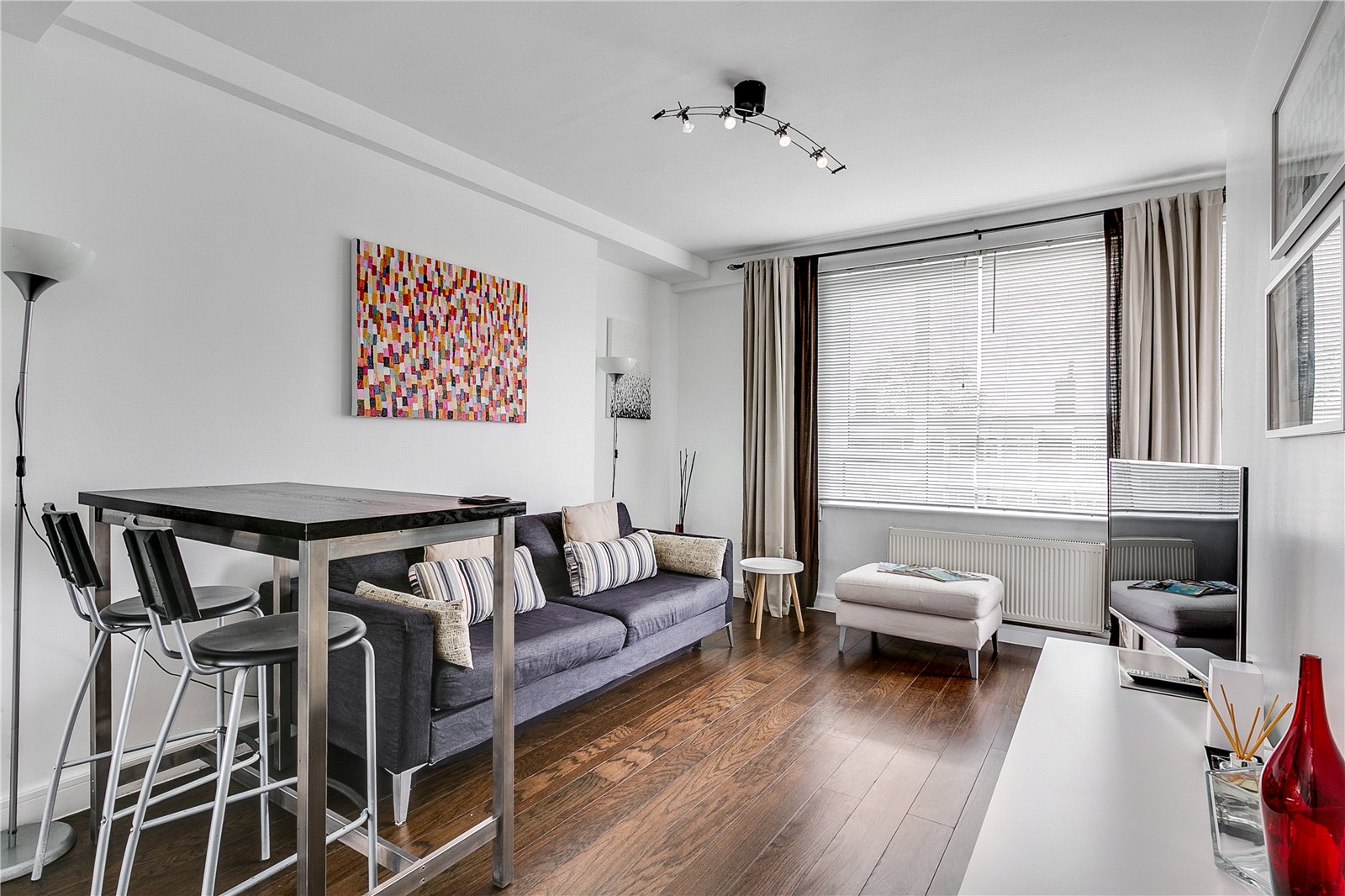 The property has just been refurbished and comprises of; a wonderfully bright double bedroom with ample built in storage, a spacious family bathroom and an open plan kitchen/living area with fully fitted appliances and direct access to the balcony from this living space. The property benefits from original wooden floors, floor to ceiling windows and an air conditioning unit, which is perfect for the summer months.