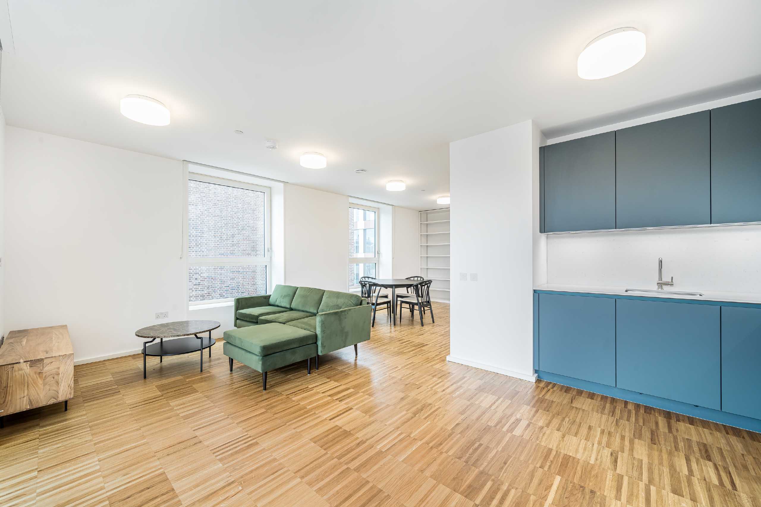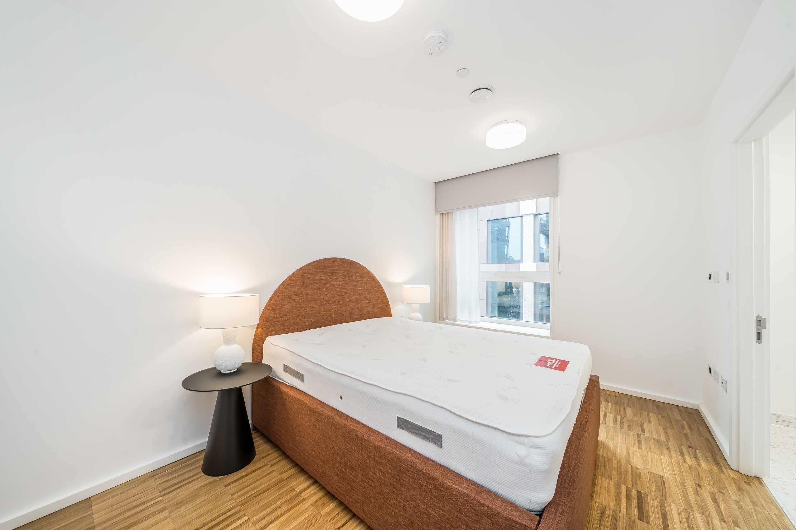 A stunning two bedroom apartment in this contemporary development with a spacious open plan kitchen and living area leading to a big private balcony, allowing plenty of natural light. The kitchen has quartz worktops with a full height splash back and Siemens appliances throughout. The bedrooms are large with plenty of built-in storage.