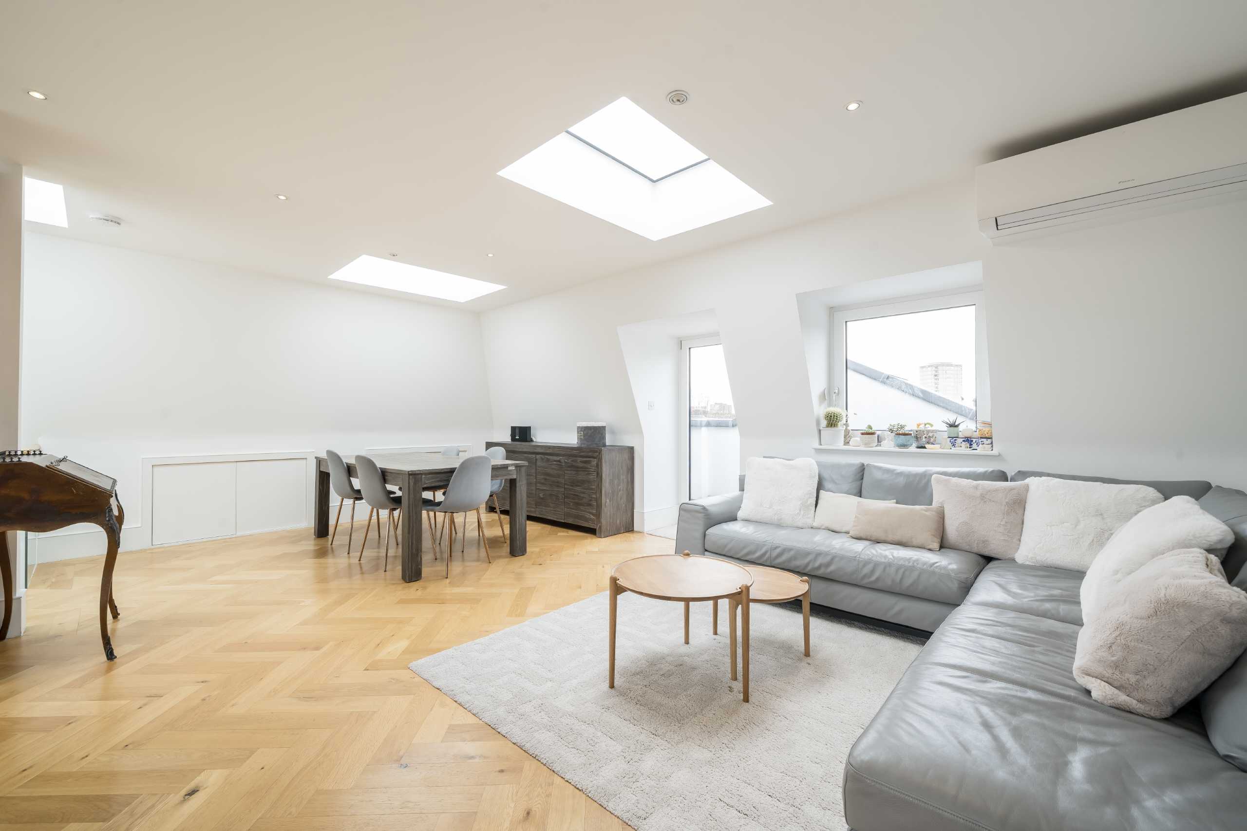 room with ample light leading on to a private south facing terrace, perfect for indoor and outdoor entertainment. This flat has been cleverly designed and tastefully finished; it would make an incredible home.