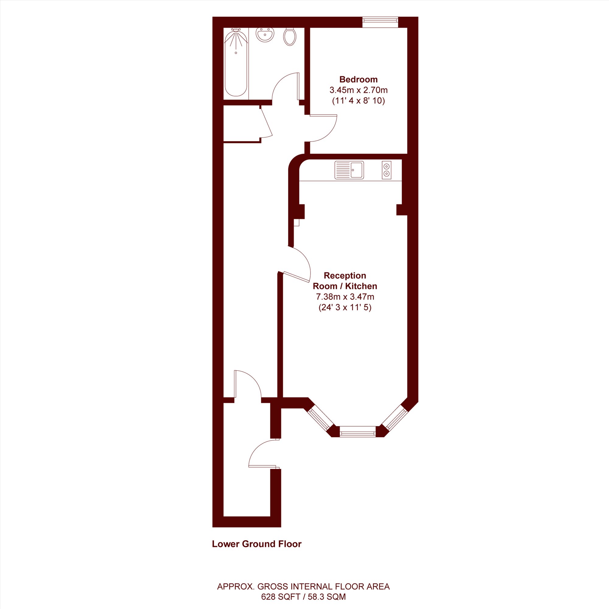 This attractive property features stylish wood flooring throughout and comprises a bright and inviting reception room, a modern open-plan kitchen fitted with essential appliances, a generously sized double bedroom with built-in wardrobes, and a contemporary bathroom with an overhead shower.