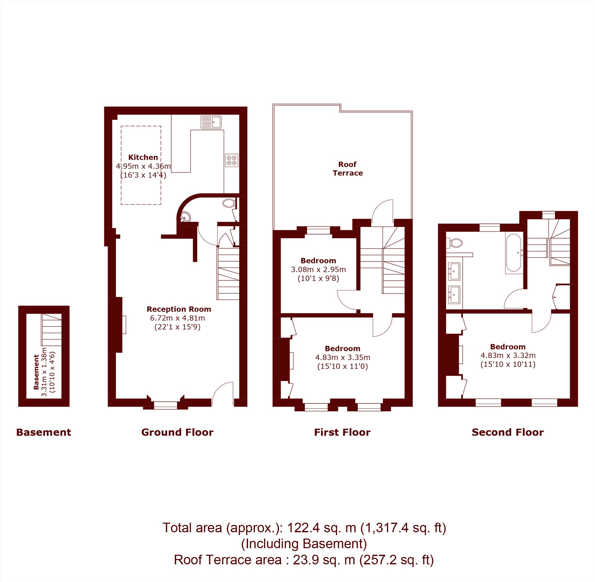An impressive Georgian house just off King Street. Offering accommodation over three floors, this spacious three bedroom house offers flexible living space and ample storage. Comprising of a separate reception area at the front of the house and an open plan kitchen, dining reception area to the rear. Upstairs there is access to a spacious private roof terrace, three spacious double bedrooms and the main bathroom.