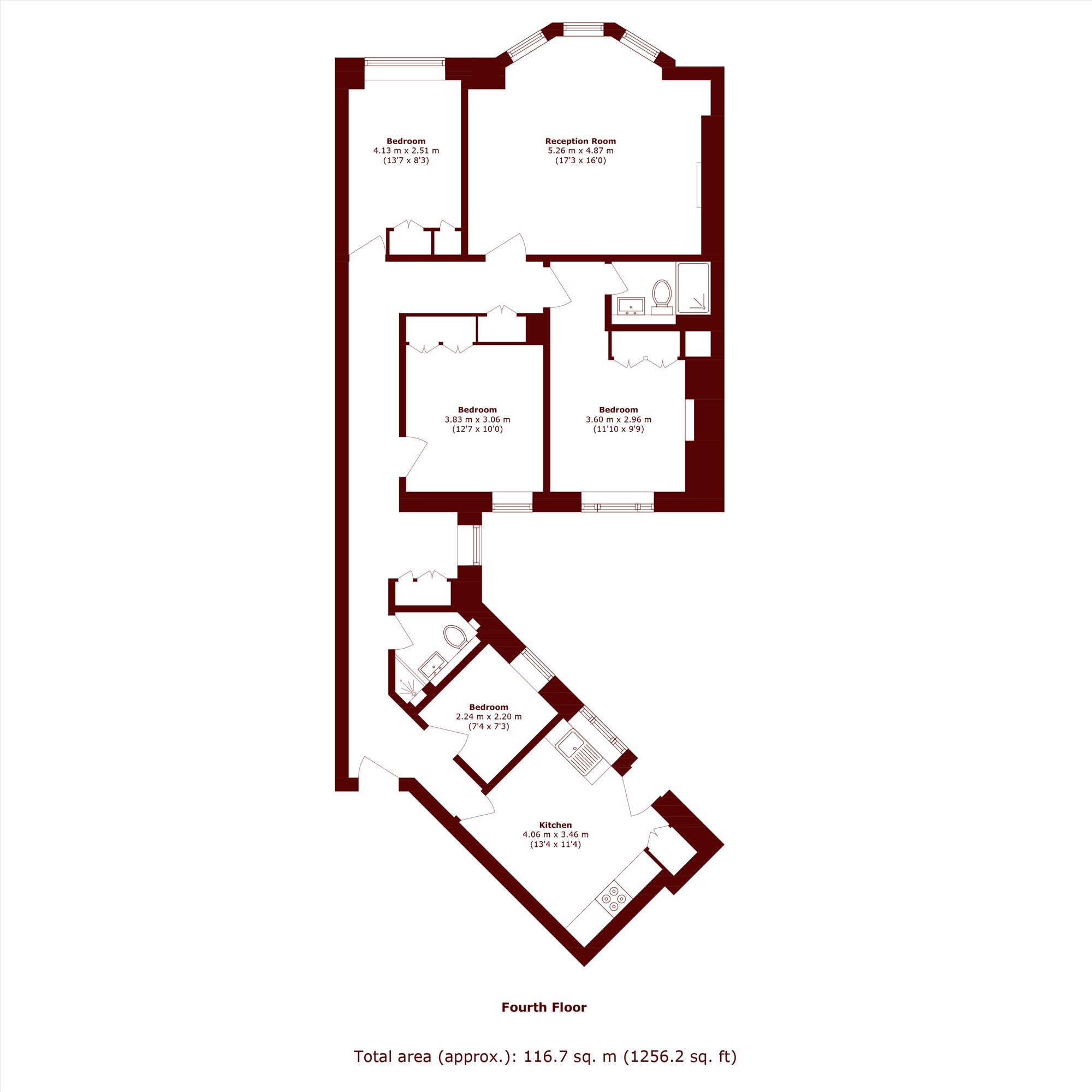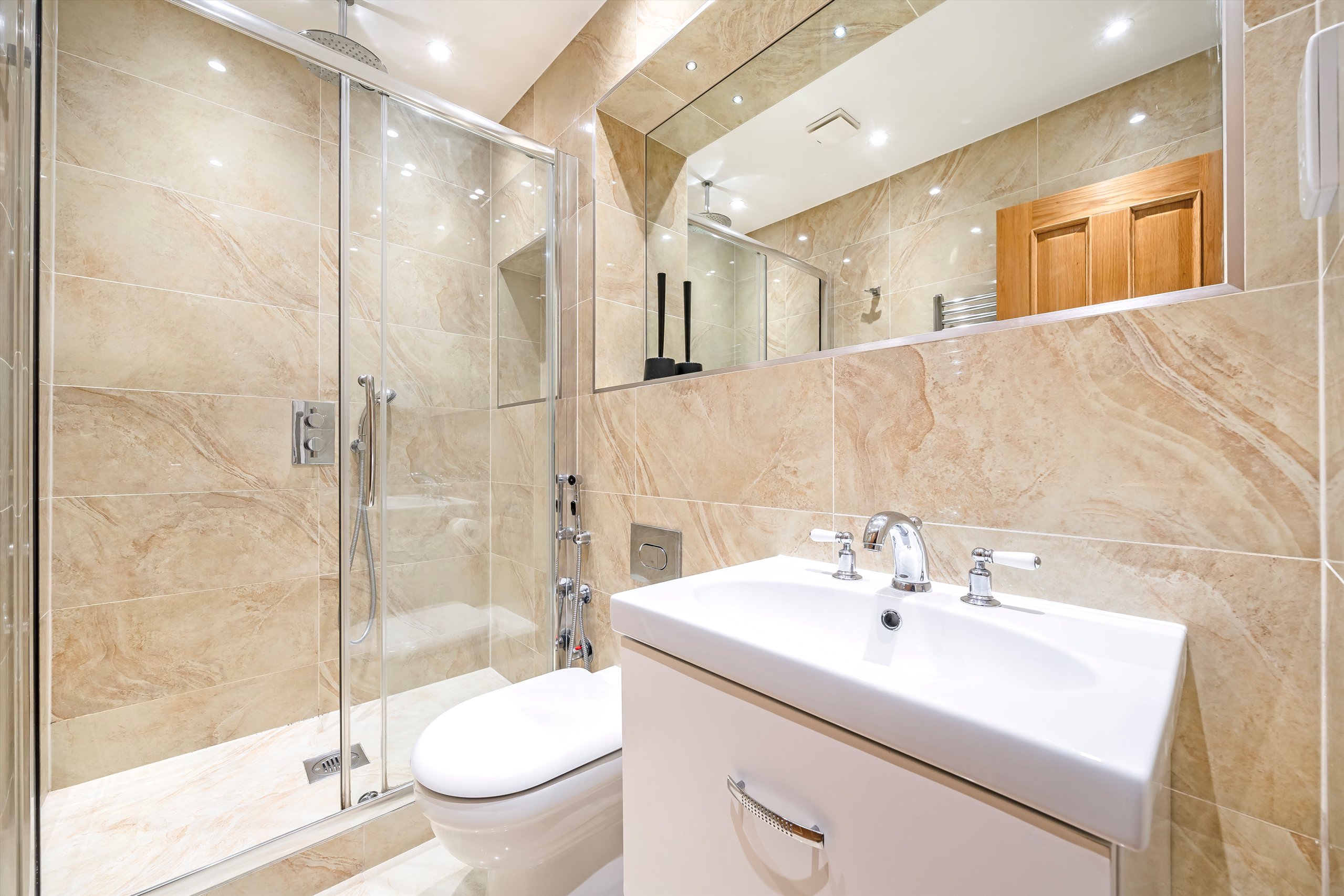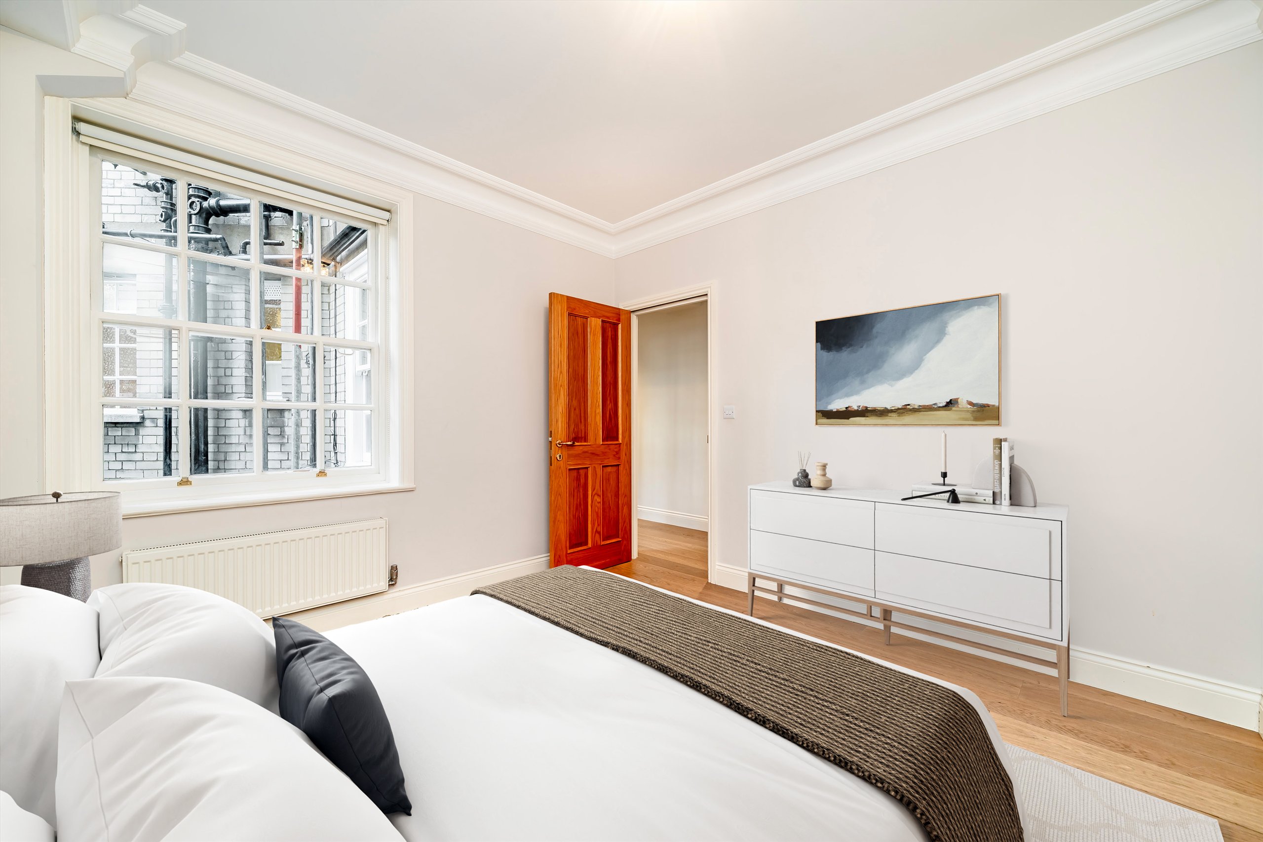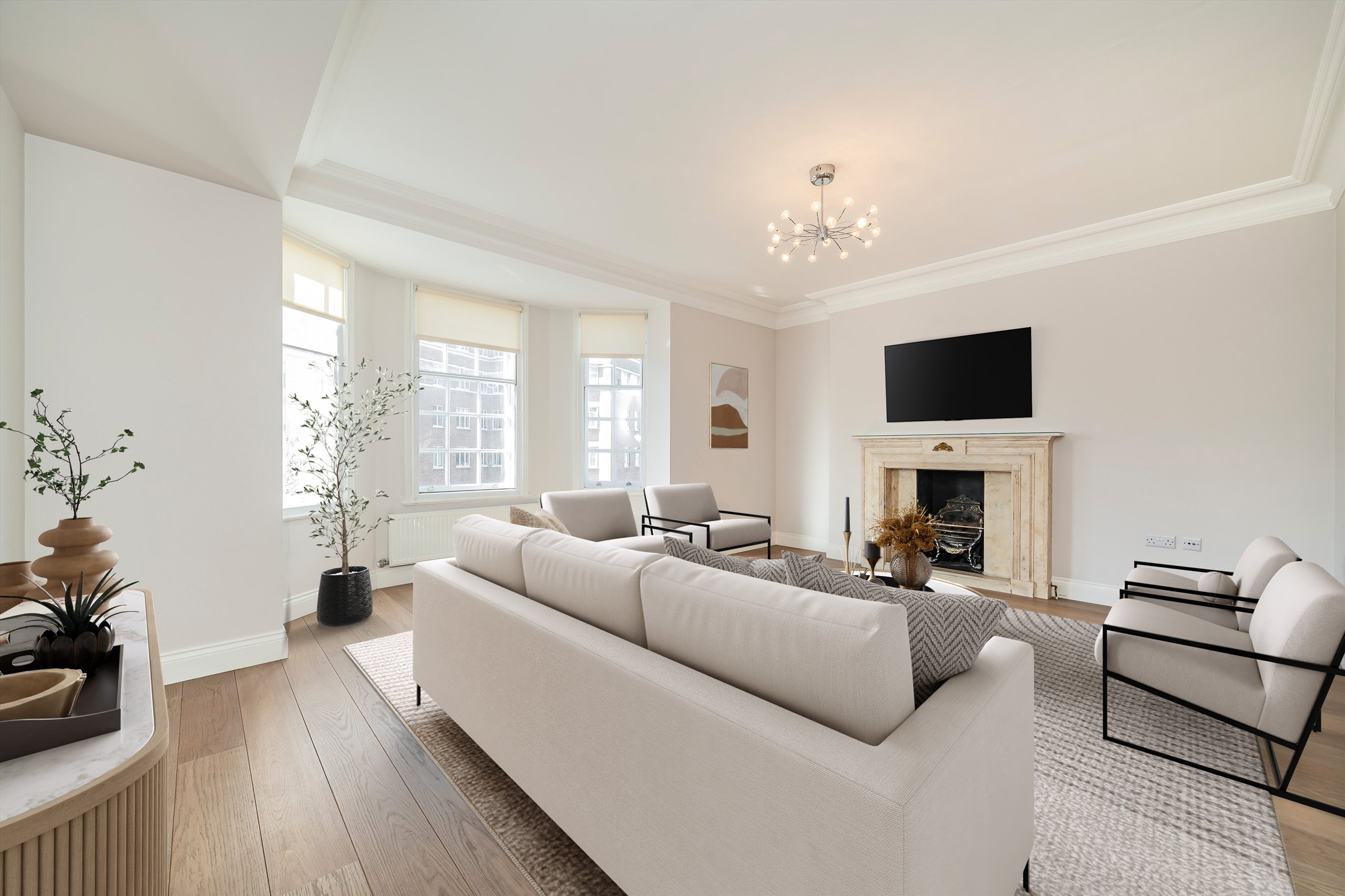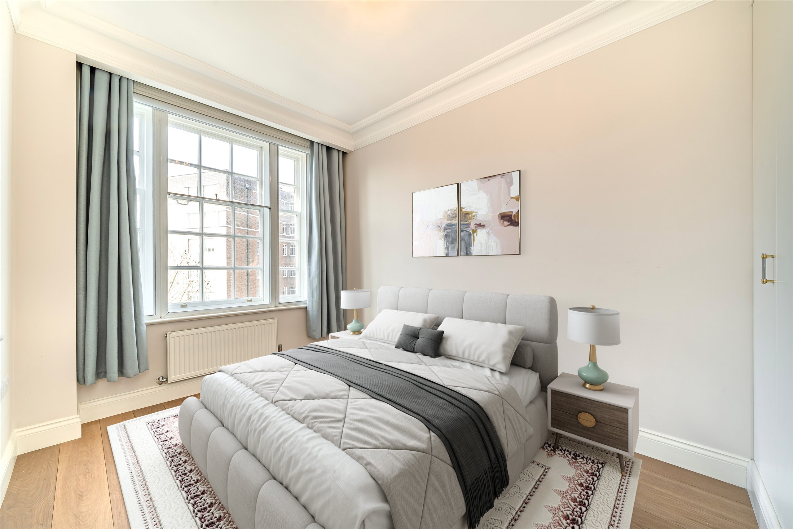Located on the fifth floor (with lift) of a lovely and recently refurbished portered building, the property is modern and bright. There is a large eat-in kitchen, a spacious reception room and four bedrooms. The master bedroom has an en suite bathroom and there is a further family bathroom. The property has been recently refurbished and has wooden floors throughout.