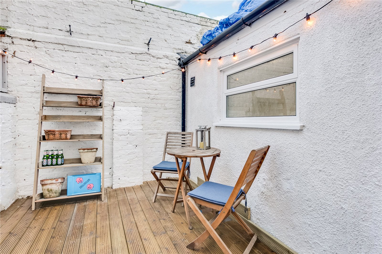 This stylish mid-terrace cottage features wooden floors throughout and boasts masses of light and space, perfect for families or professional sharers alike. On the ground floor there is a well-equipped and fully integrated, open plan kitchen/living room with doors leading out to a private patio garden and a modern bathroom. Upstairs the property further comprises two good double bedrooms, both with built-in storage.