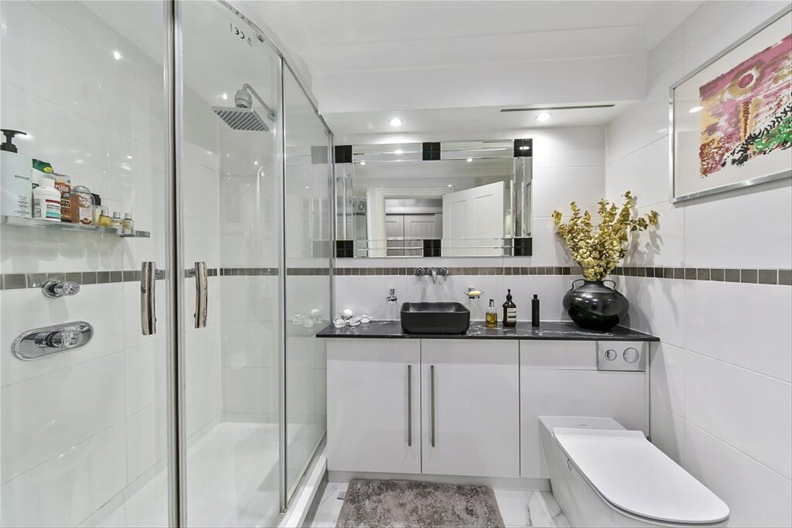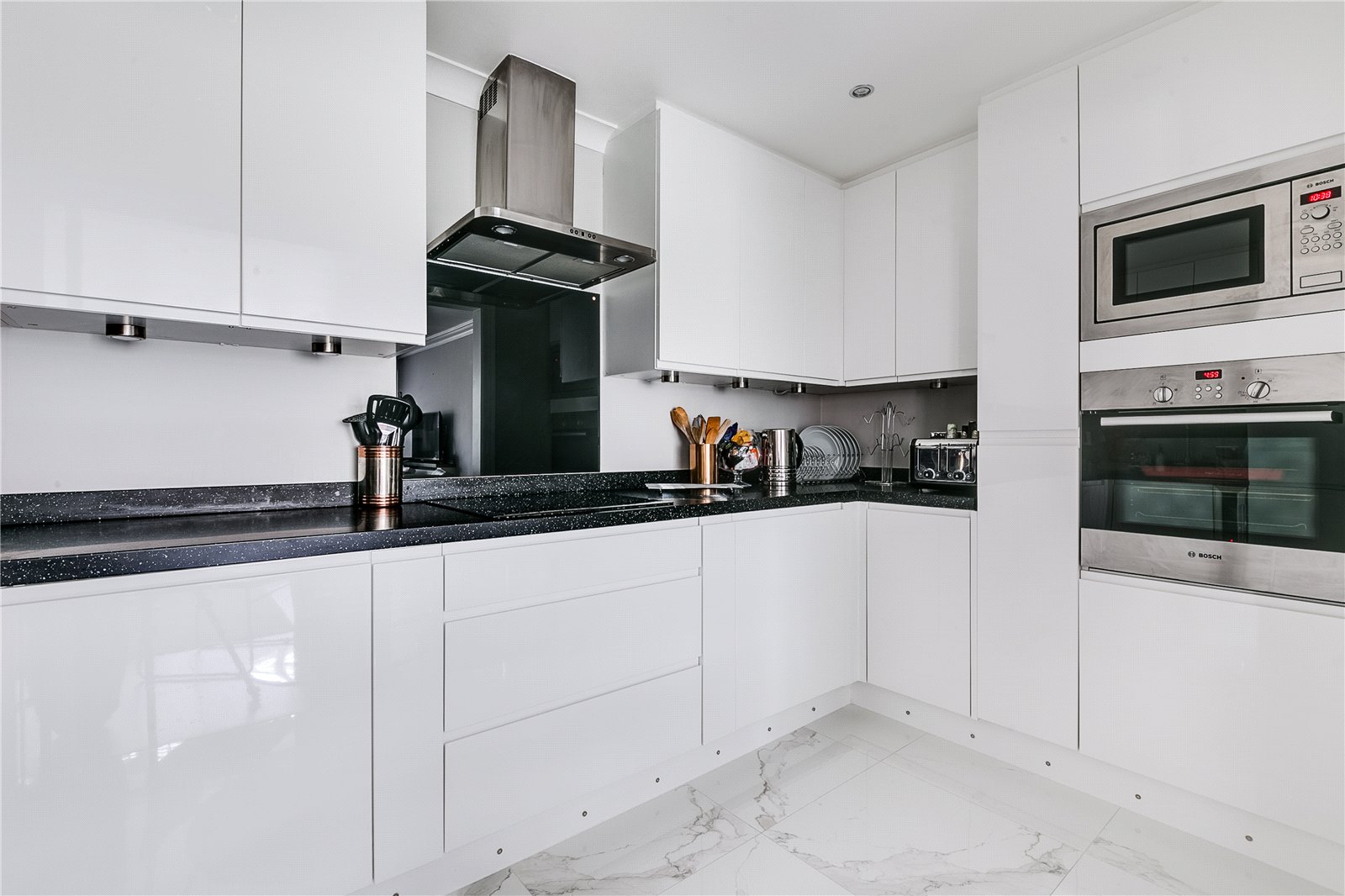 There is allocated off-street parking, 24-hour concierge and full access to the Harrods Village leisure facilities, including gym and swimming pool.