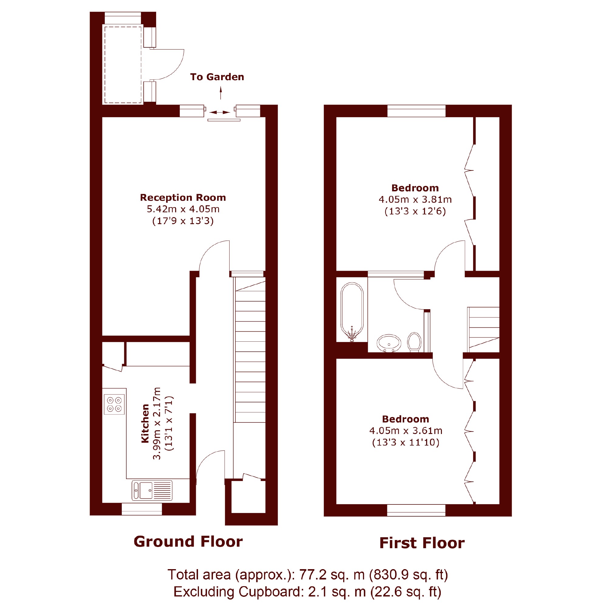 This lovely two-bedroom house is neutrally decorated and presented in fantastic condition throughout. Boasting a large kitchen, stunning reception room with wooden floors leading onto a private patio garden. Upstairs has a master bedroom with fitted wardrobes and second double bedroom with ample space.