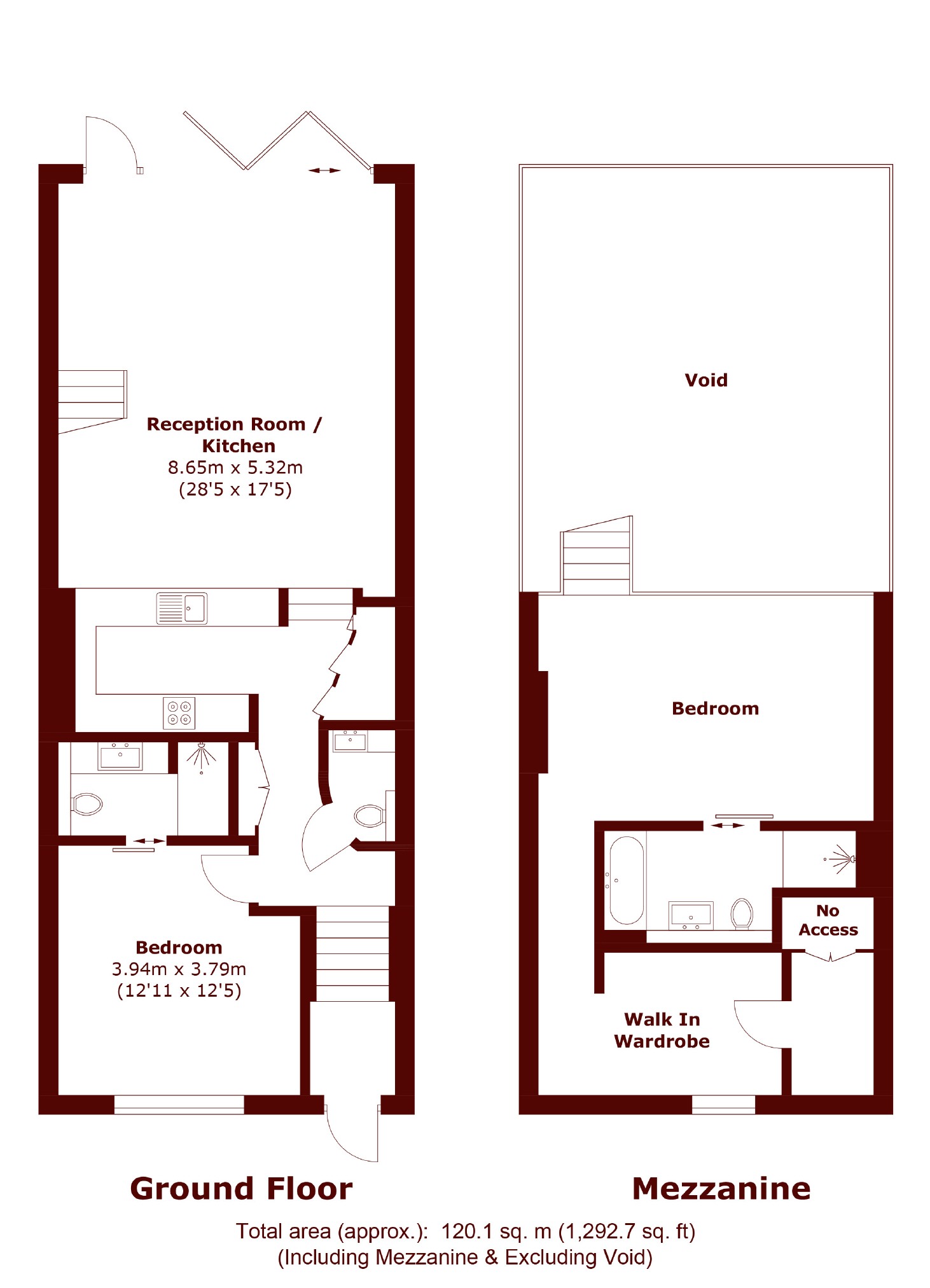 A fantastic split level, two-bedroom New York Style loft apartment including two bathrooms, a mezzanine master bedroom, open plan kitchen/living area and a private patio garden.
