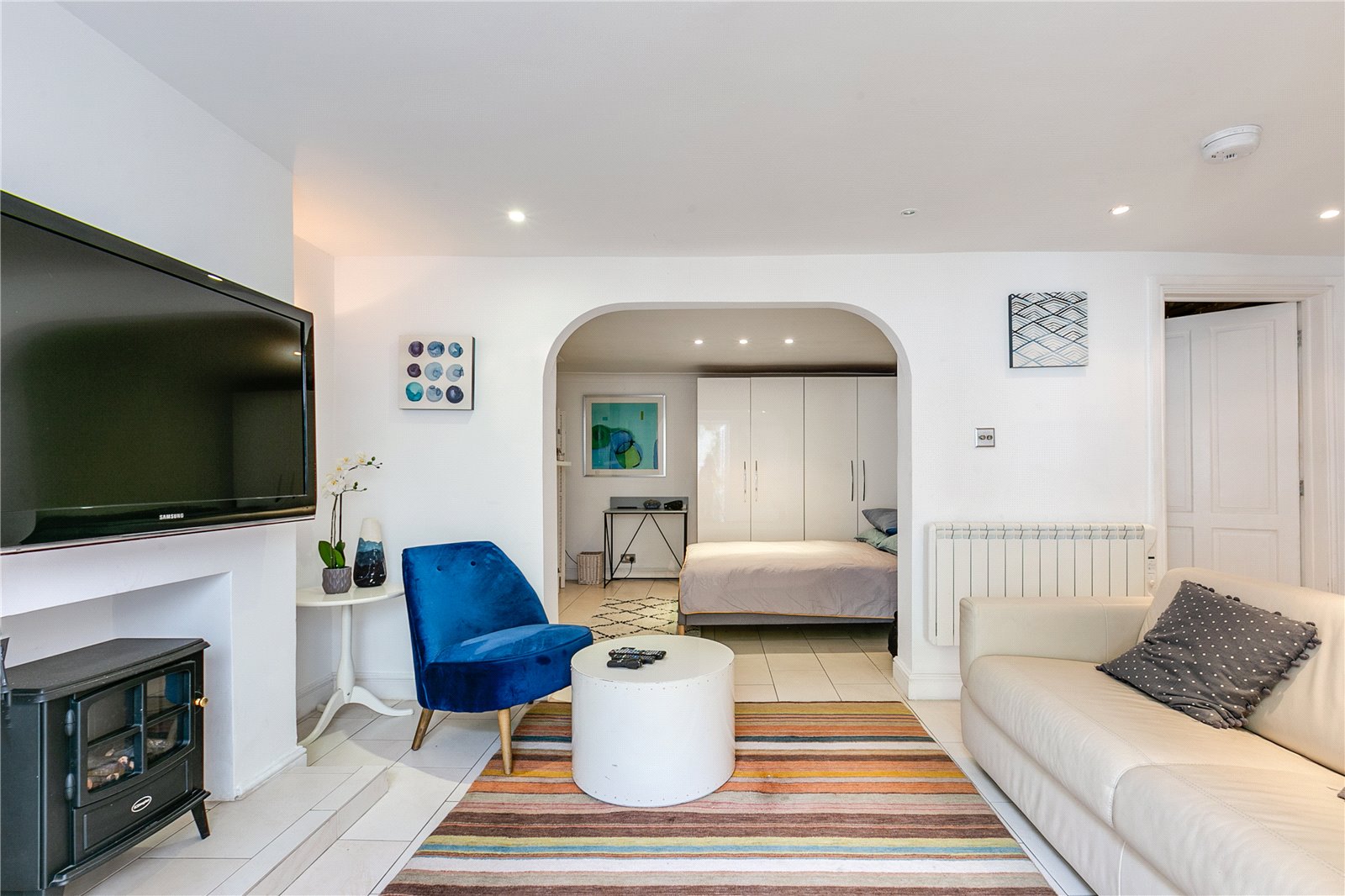 This fantastic one bedroom apartment is presented in immaculate condition throughout and comprises a generous living room, leading out to a west facing private patio garden, a large kitchen with integrated appliances, a good-sized bedroom with ample storage and a contemporary bathroom. The property further benefits from wooden flooring and all bills (excluding council tax) are included in the rent.