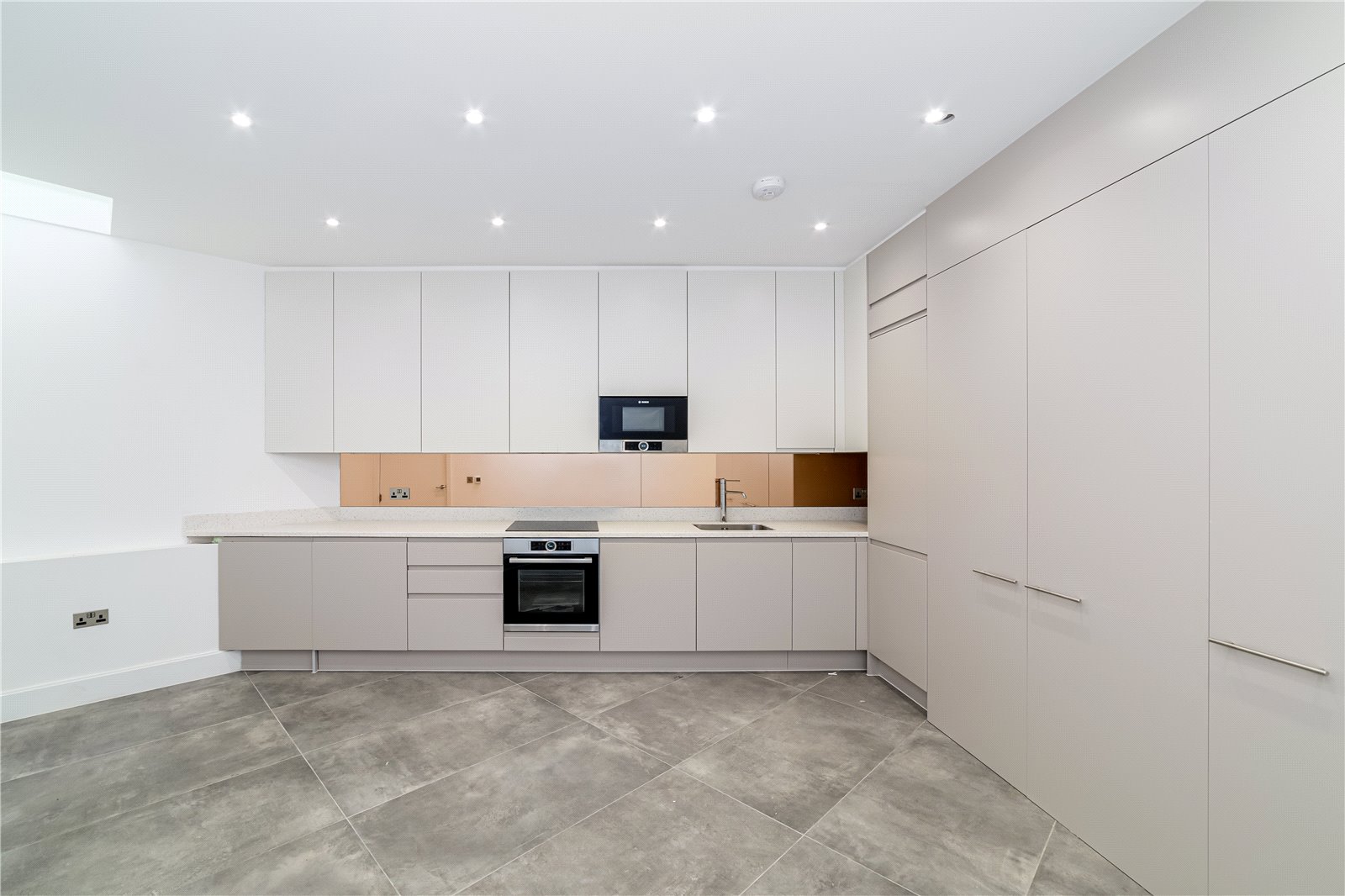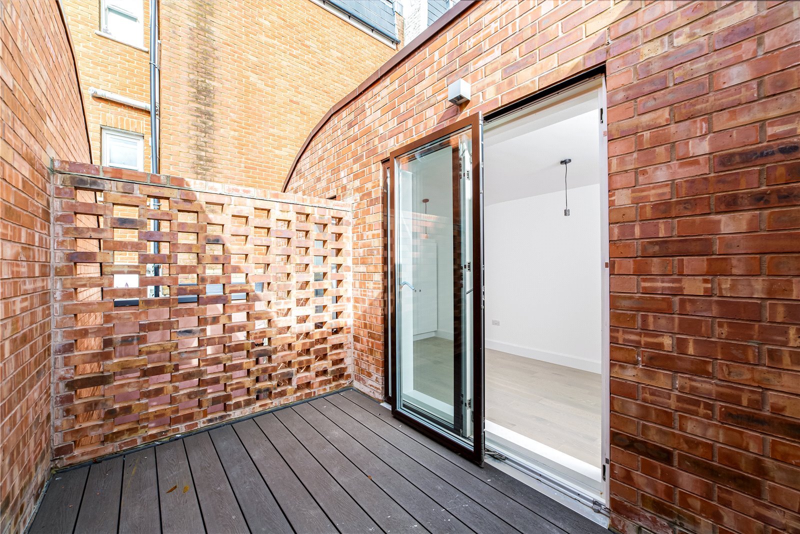 Boasting two double bedrooms and a master bedroom that leads out to a sunny roof terrace and two modern bathrooms. The dine-in kitchen, fitted with new integrated appliances, and private patio are separated by an enormous living room which is the perfect entertaining space for families and professional sharers alike.