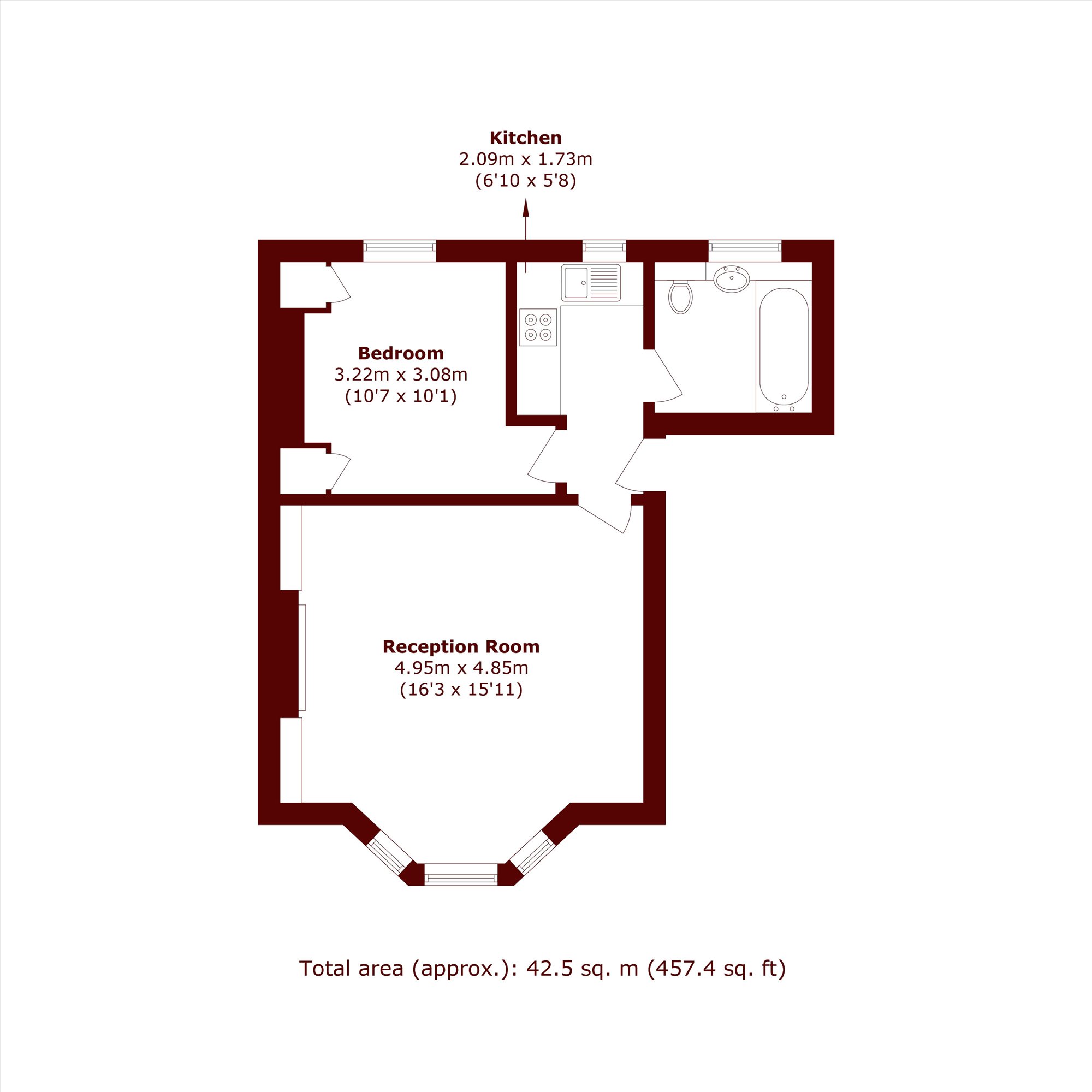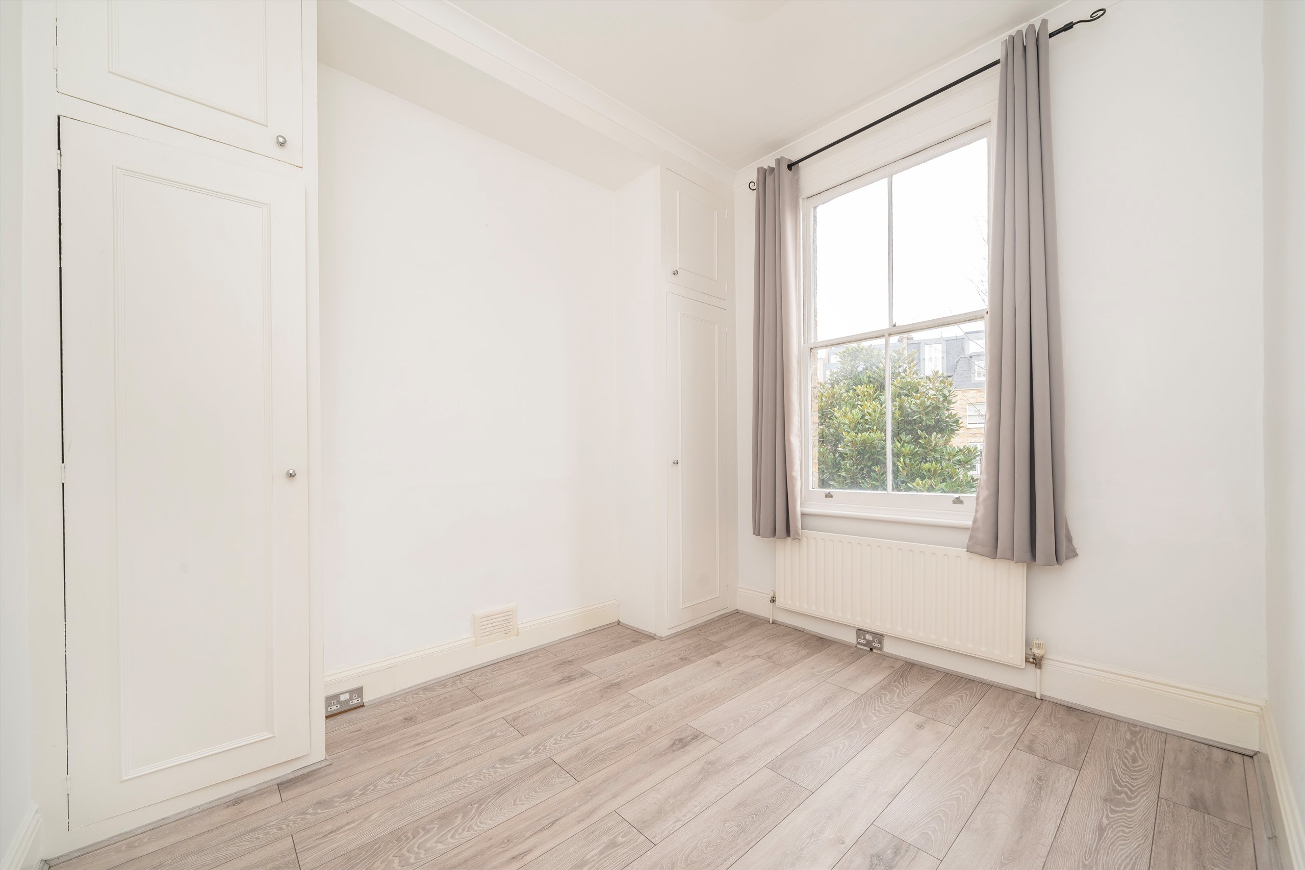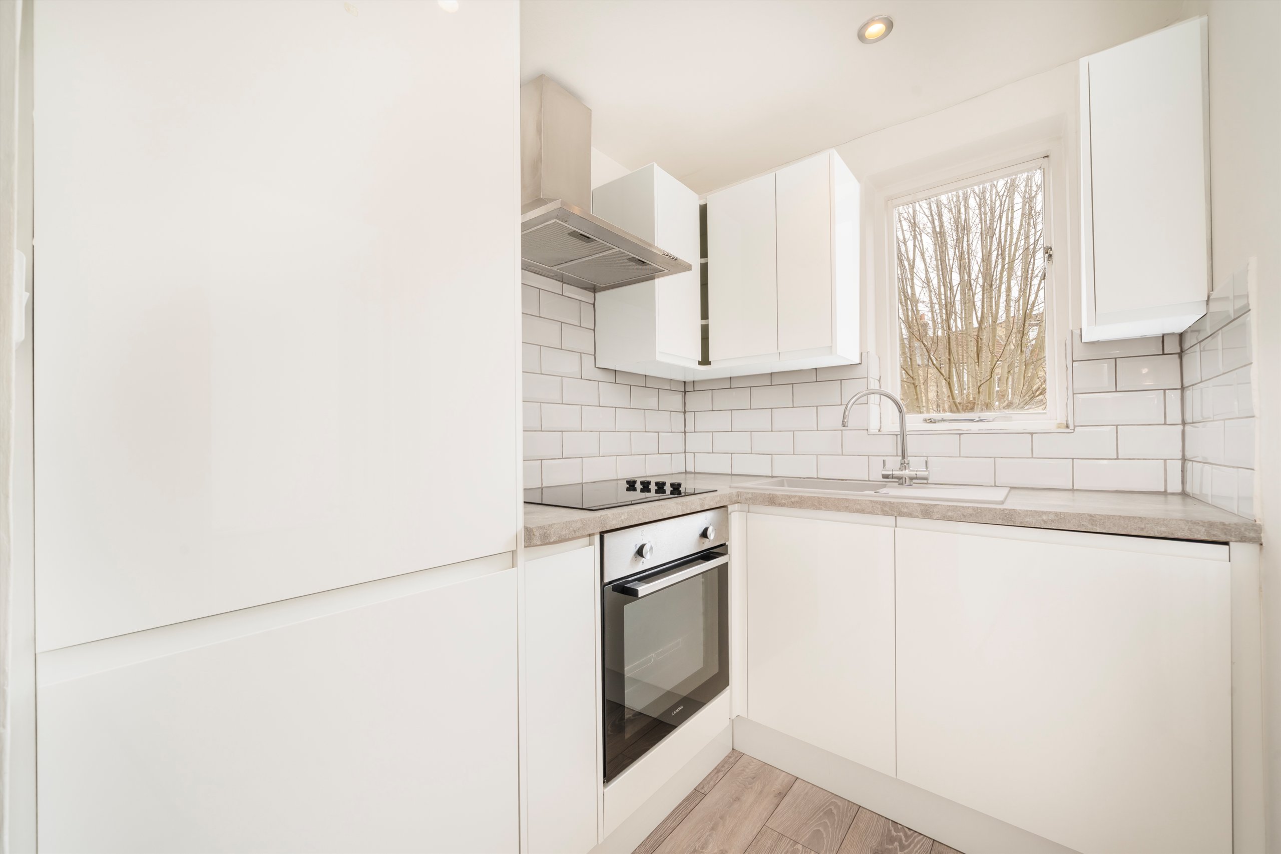 Offering approximately 478 sq ft of living space, the property features a spacious reception room with a bay window, a double bedroom positioned at the rear overlooking the gardens, a separate kitchen, and a bathroom with a shower over the bath.