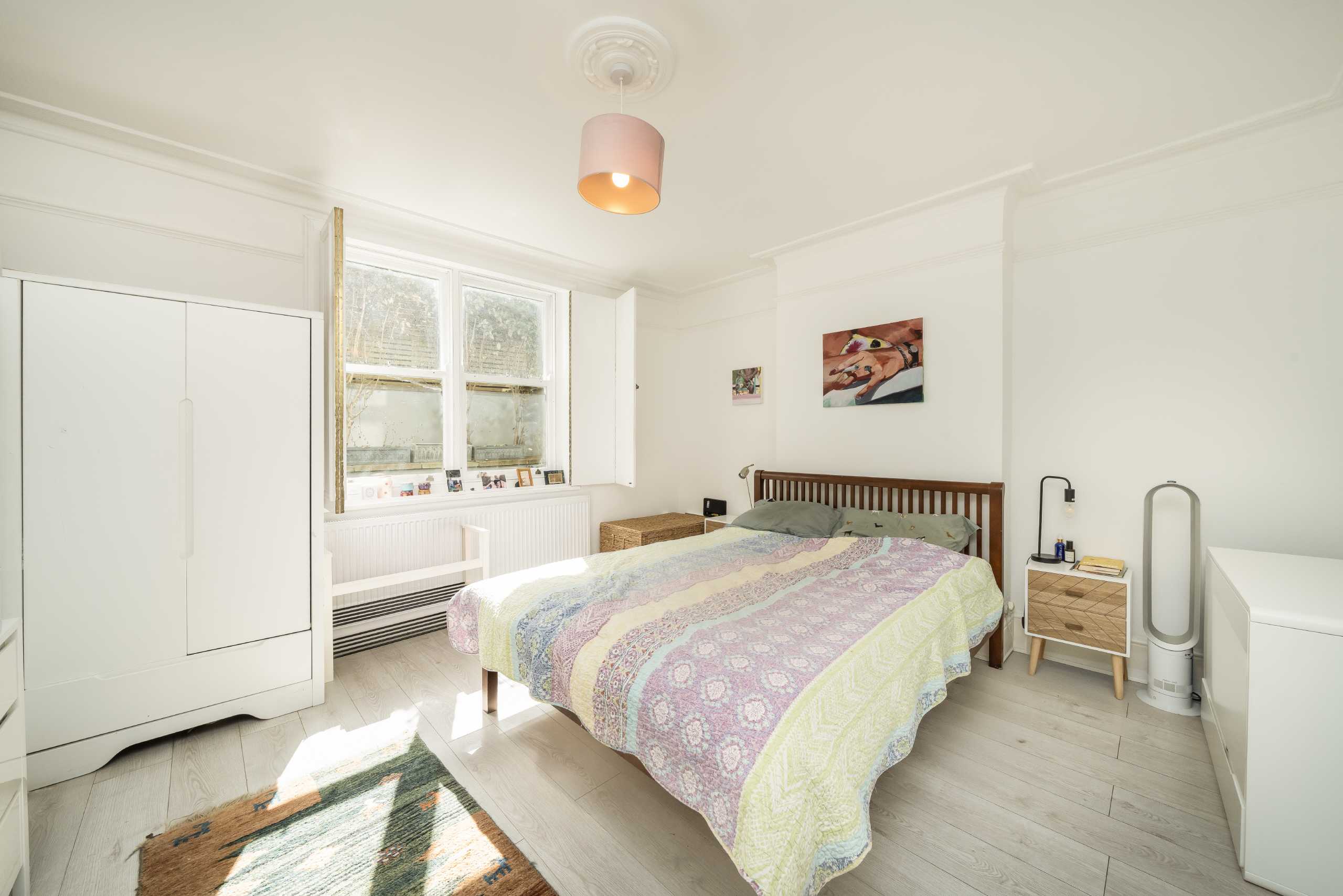 A gorgeous two bedroom apartment with a private entrance in a period building with direct access to a huge shared garden. It comprises of two double bedrooms, the master with built in storage, a family bathroom, spacious storage cupboard, and to the rear of the property is the kitchen and separate reception room, both of which overlook the garden.