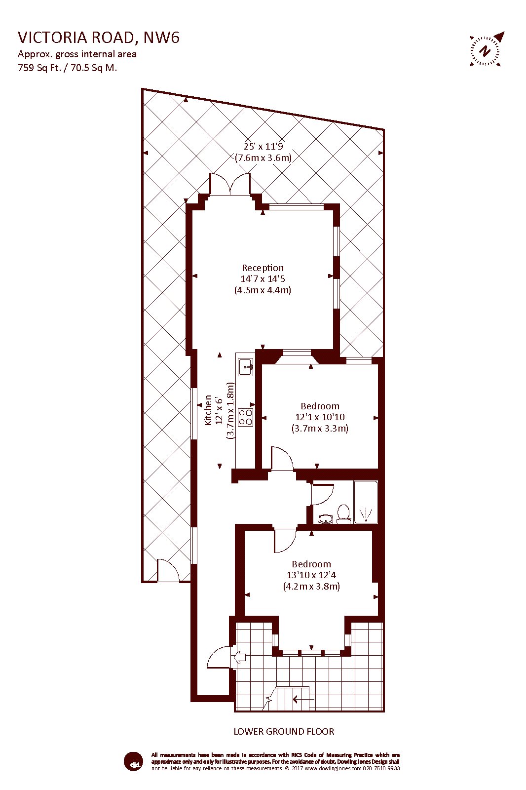 A modern two double bedroom flat with a spacious open plan reception which has direct access onto a private garden. Layout also includes a modern family bathroom and fully fitted kitchen.