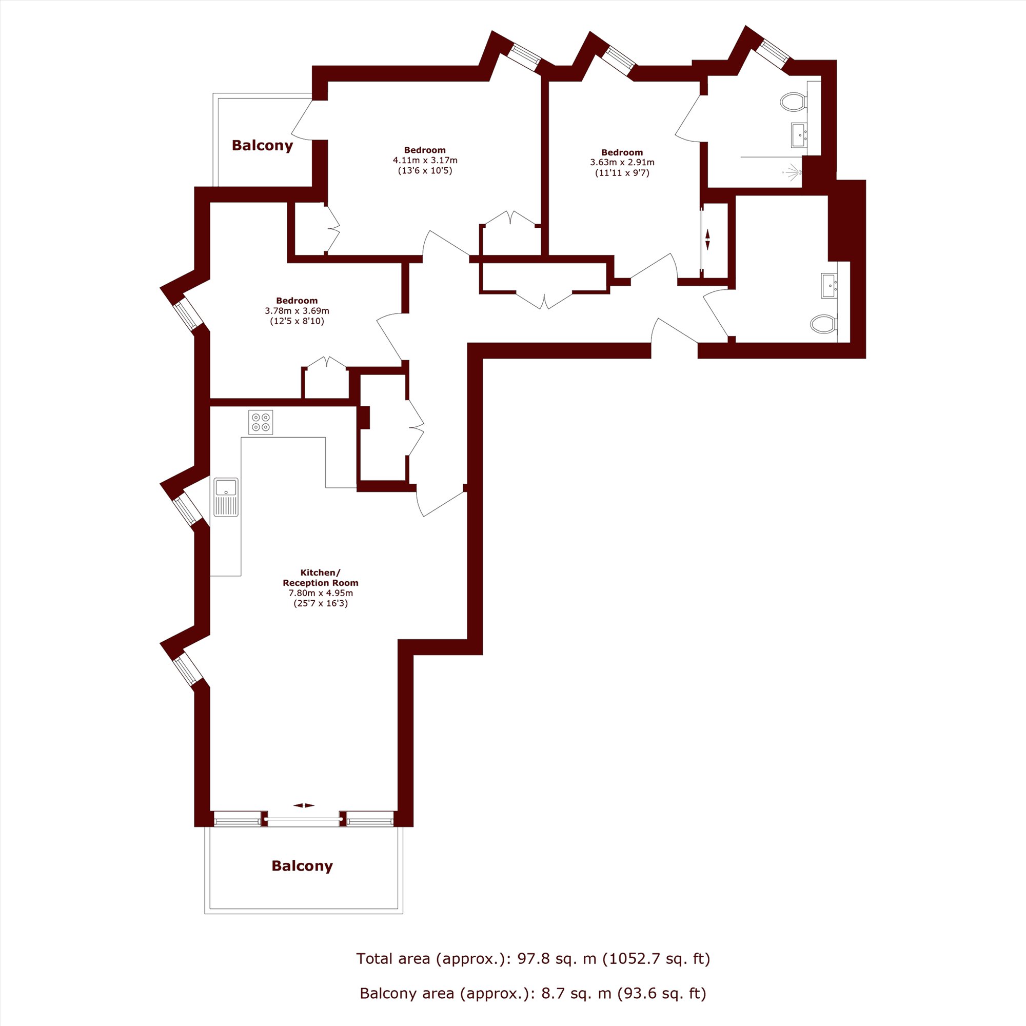 Upon entering, you're greeted by spacious and light-filled living areas, including three generous double bedrooms and two modern bathrooms ideal for families or professionals seeking extra space. The property also benefits from two private balconies, perfect for outdoor relaxation.