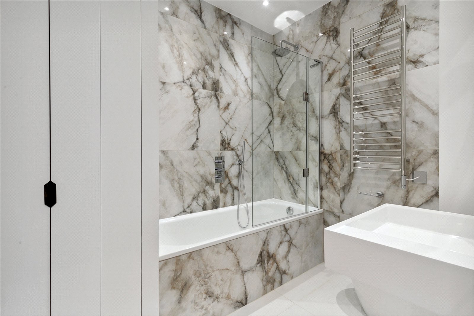 This stunning property comes to the market having recently undergone refurbishment. It boasts underfloor heating and state of the art Miele appliances in the kitchen. There are two large double bedrooms with built in storage and a modern bathroom with a shower over the bath. The flat also enjoys a balcony which joins onto the reception and master bedroom.
