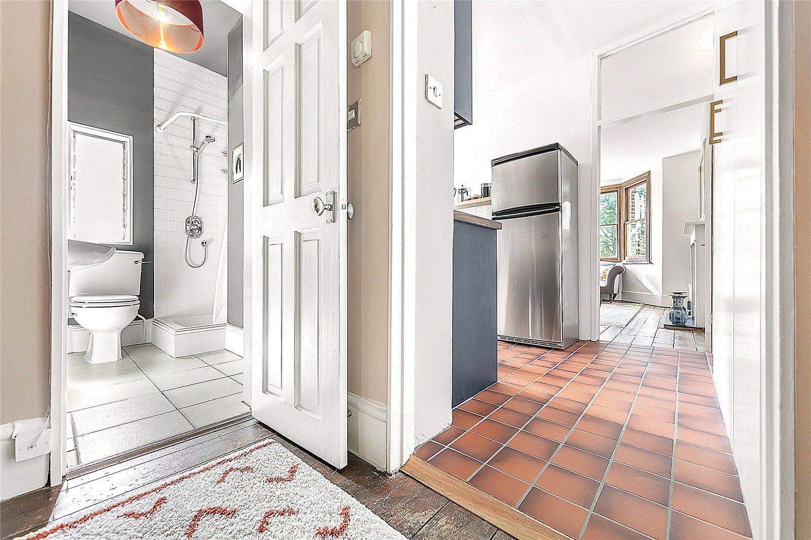 This beautiful two-bedroom top floor flat comprises a separate kitchen / living space, second bedroom and two good sized bathrooms (one en suite). The Property is split level with stairs leading to the two large double bedrooms and further benefits from an off-street parking space and shared rear garden.