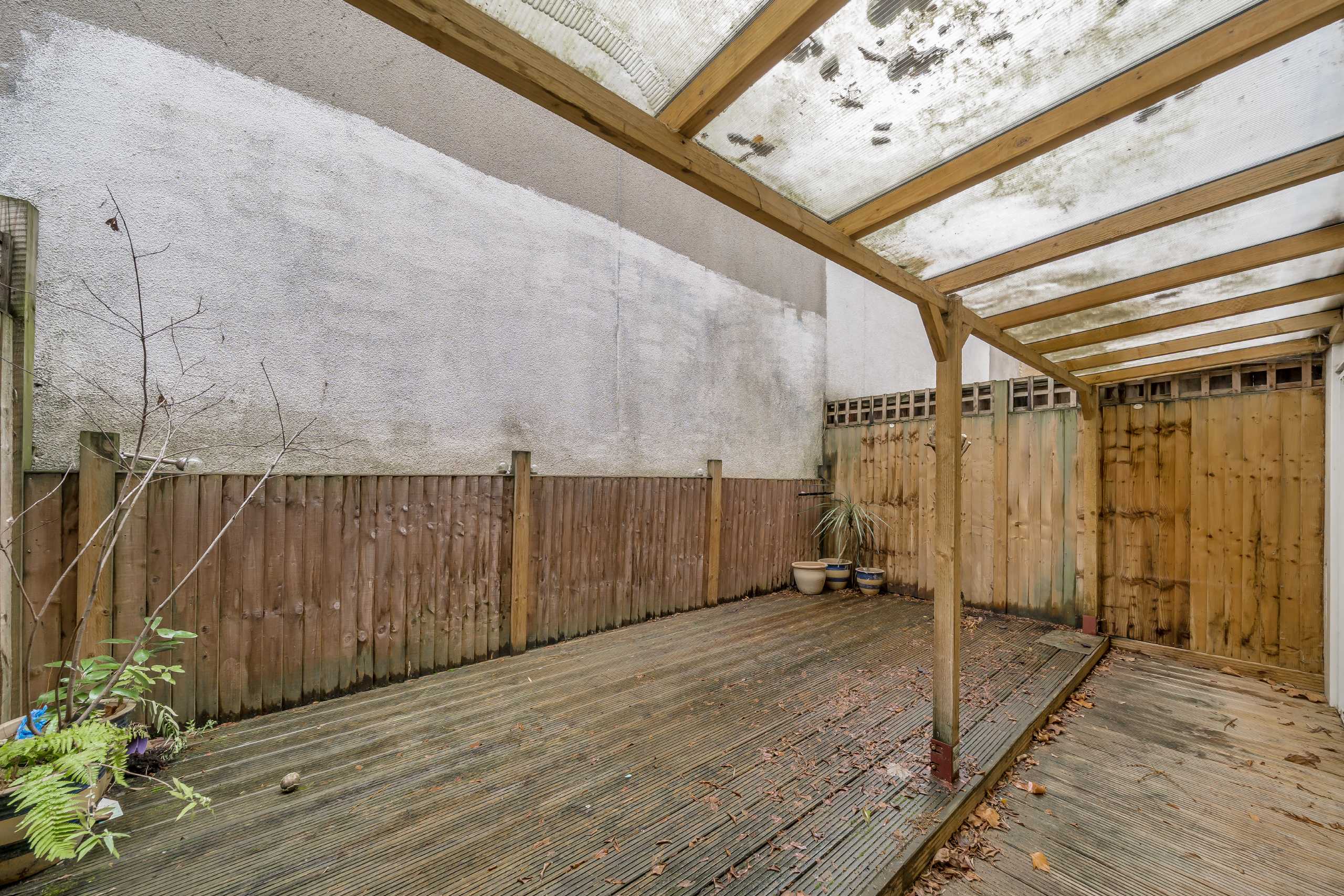 A ground floor two bedroom maisonette with a modern open plan kitchen and living area, one double and one single bedroom and a private decked garden.