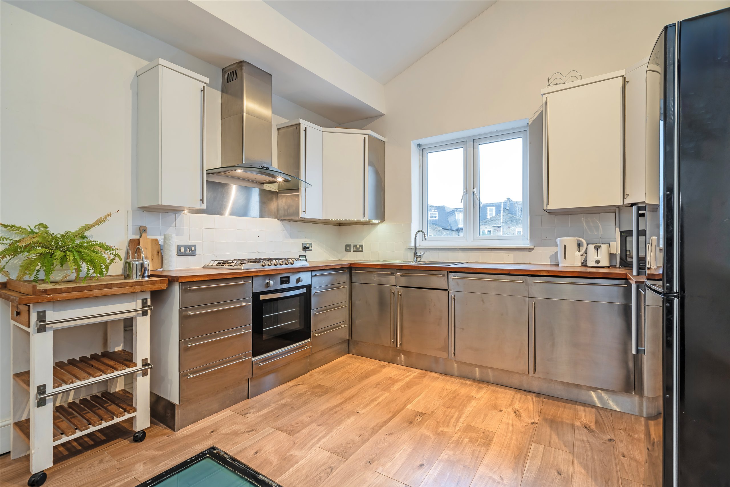 The property offers bright and well-balanced accommodation, comprising a spacious reception room with ample space for dining, a separate fitted kitchen, a generously sized double bedroom, and a modern bathroom suite. Large windows throughout allow for excellent natural light, creating a welcoming and airy feel.